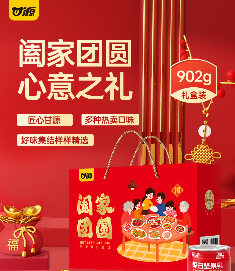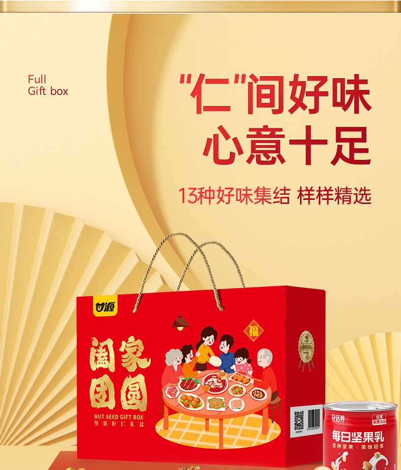 【年货好礼❗甘源阖家团圆礼盒】送礼大气更有面,混合坚果组合炒货干果,开心果夏威夷果,坚果礼盒装年货送礼佳品L
