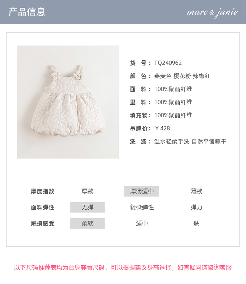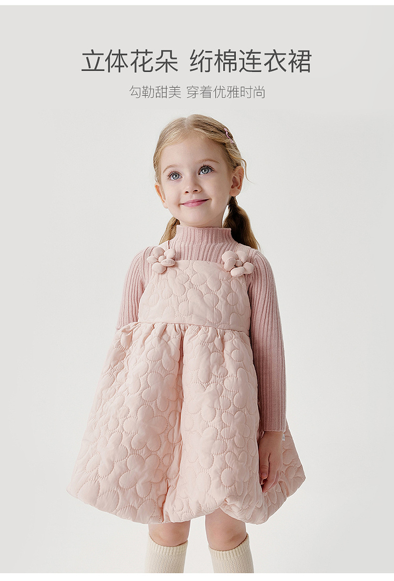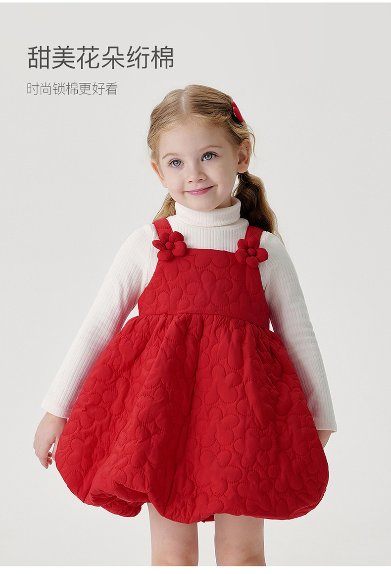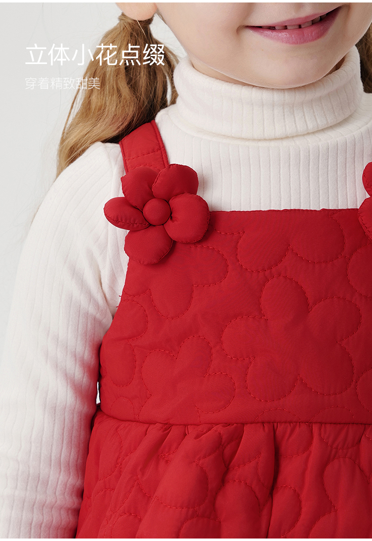 马克珍妮女童立体花朵绗棉花苞吊带裙秋冬新款551595