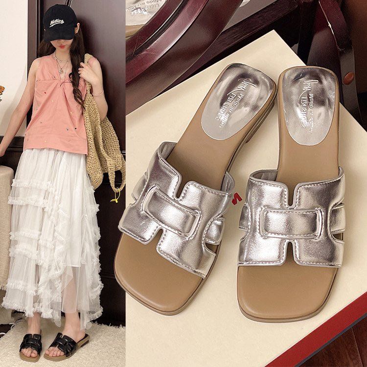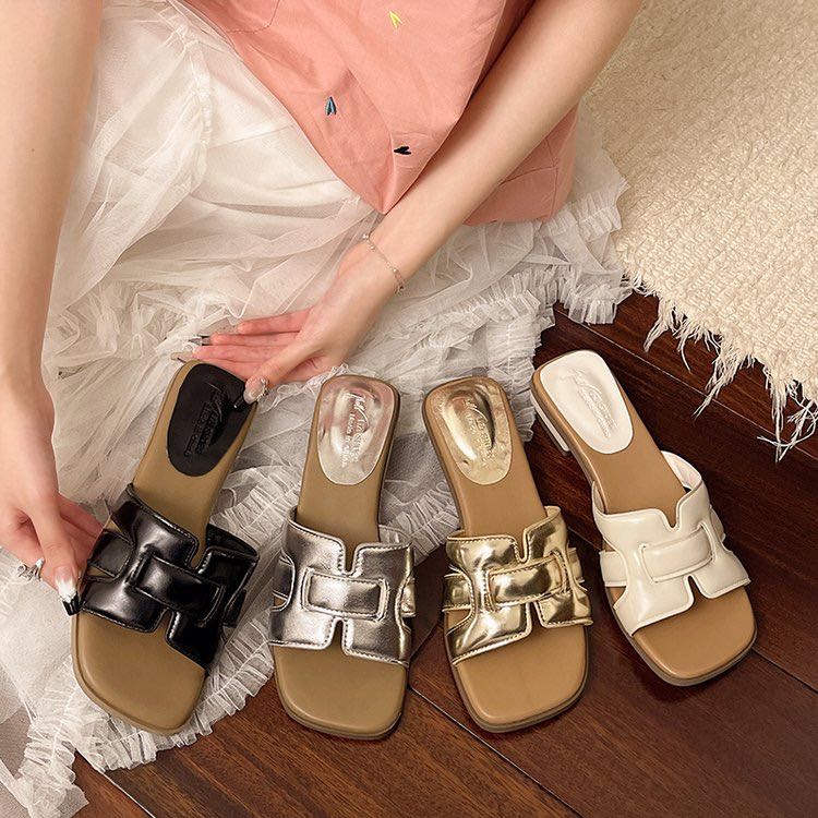 【YW】无忧购法式粗跟凉拖鞋女外穿复古小众编织配裙子沙滩一字拖828(截单后3-5天发货)