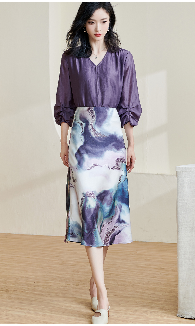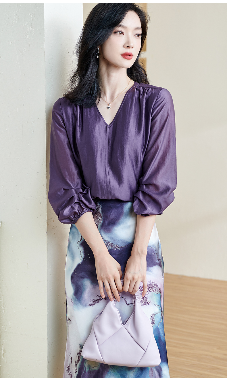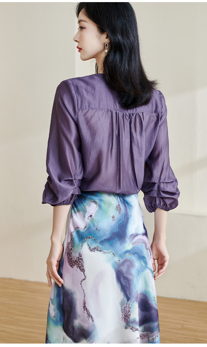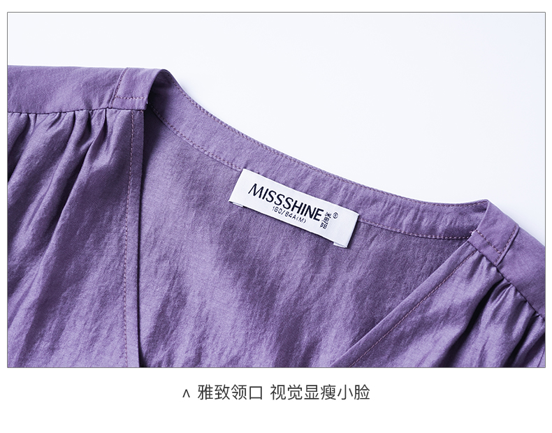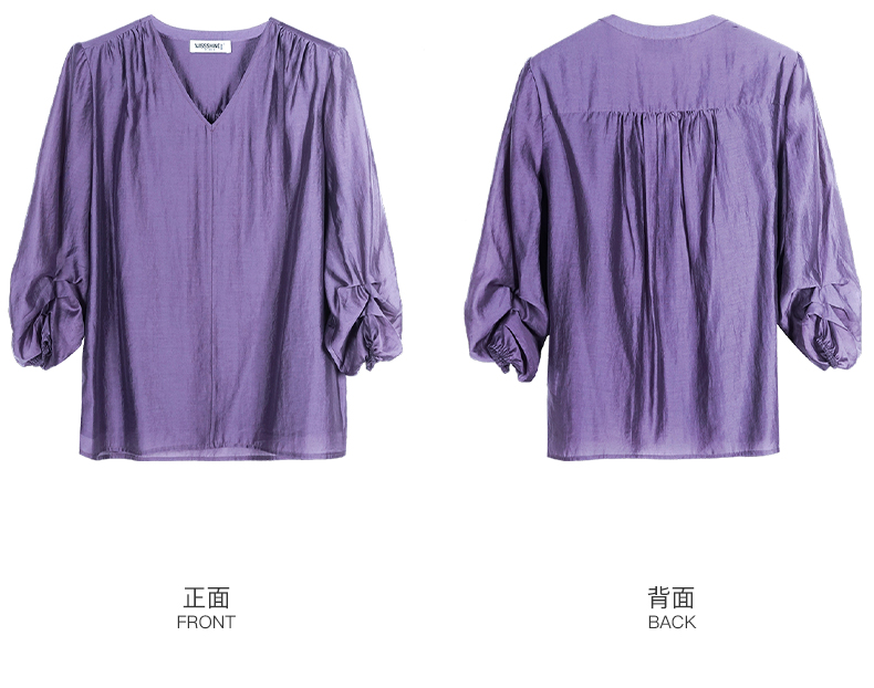 「雾紫流光」天丝 V 领衬衫 轻奢质感 自带细腻的珍珠光泽 比真丝更抗皱、比雪纺更有骨感,春夏穿着透气不闷汗 米思阳2026春季新款轻奢高级感莱赛尔天丝衬衫七分袖纯色上衣女2535