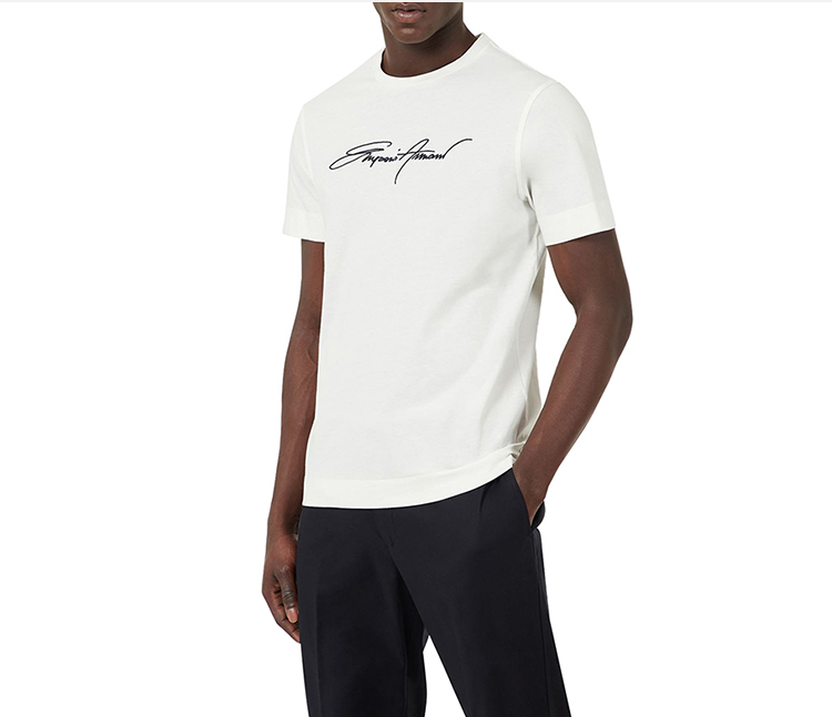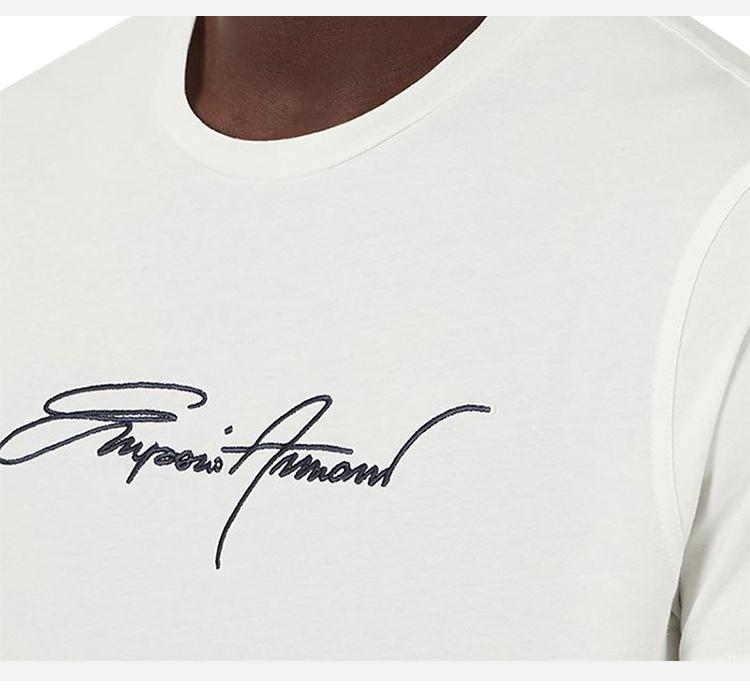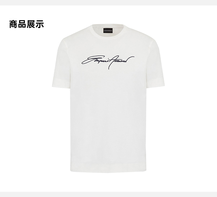 ARMANI 阿玛尼 男士签名刺绣圆领短袖T恤 白色 3K1TL6 1JULZ 0101