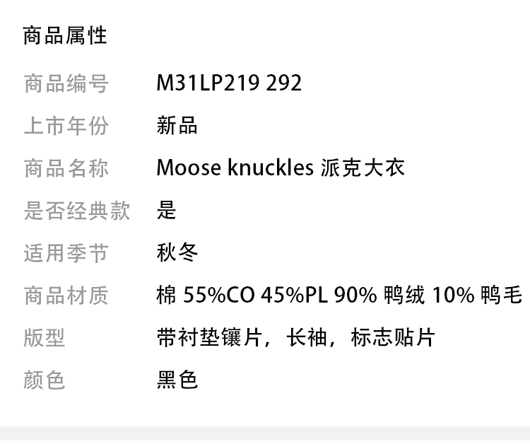 MOOSE KNUCKLES 长款带帽无毛领 女士羽绒服 黑色 M31LP219 292