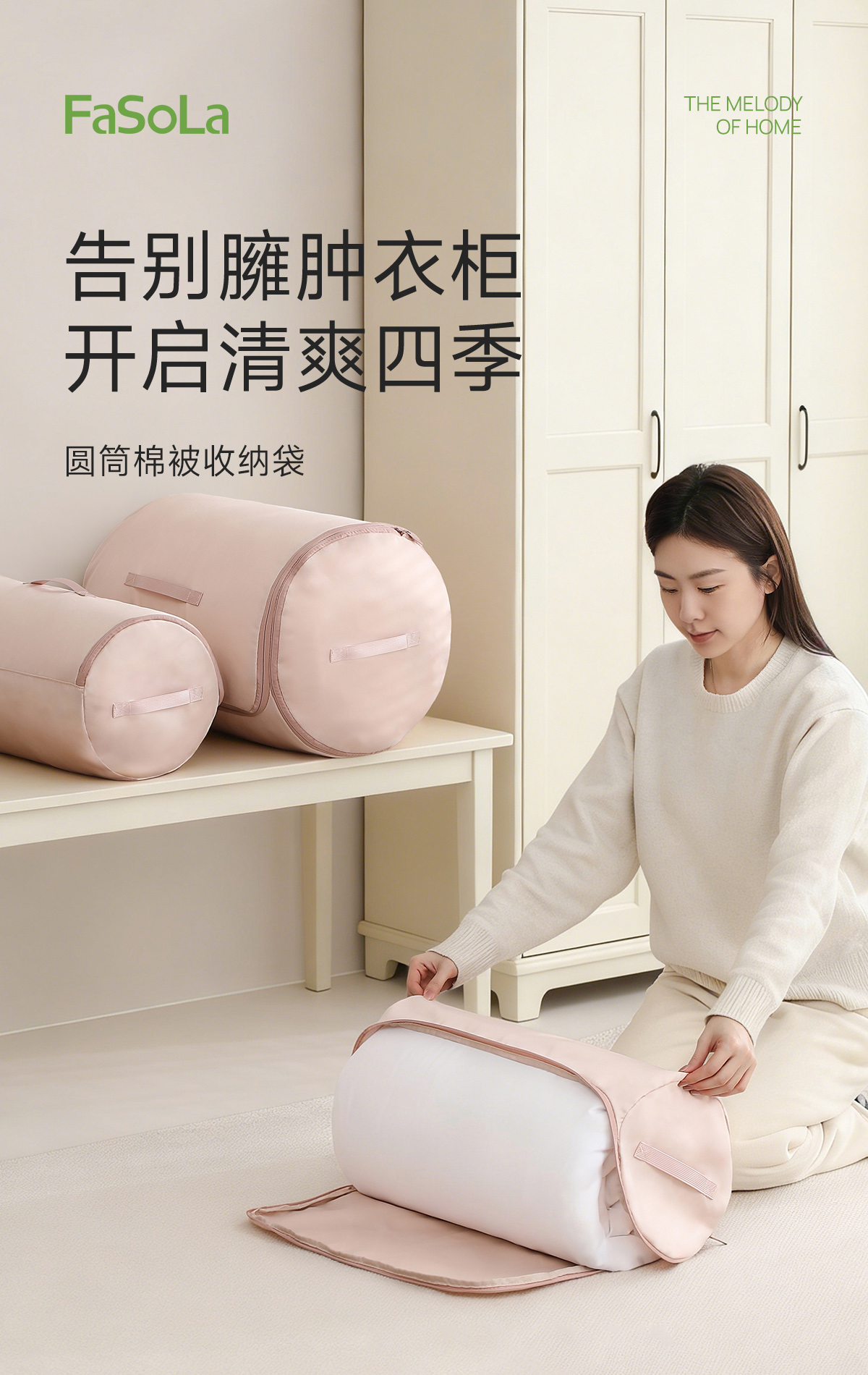 FaSoLa圆筒被子收纳袋衣物棉被整理袋枕头装被子搬家换季便携家用