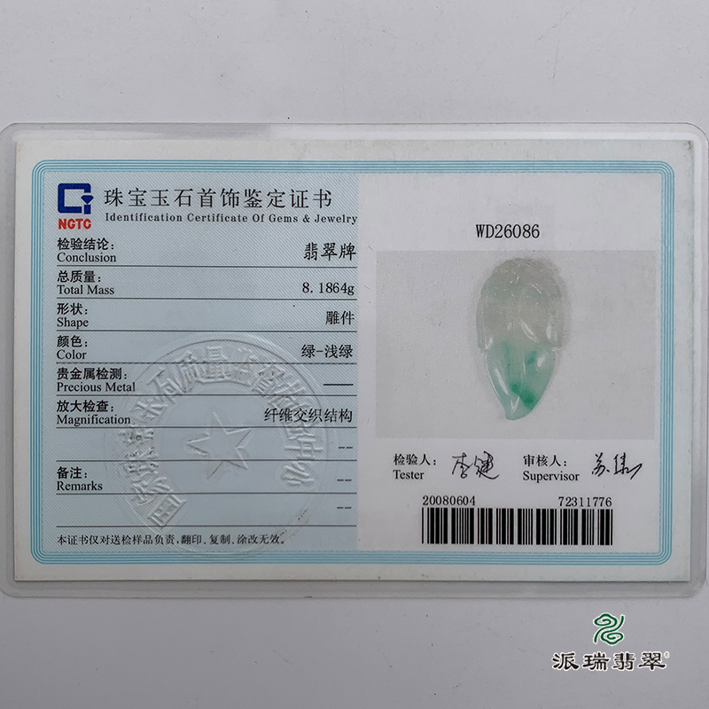 派瑞翡翠 翡翠挂件 糯冰种 绿色