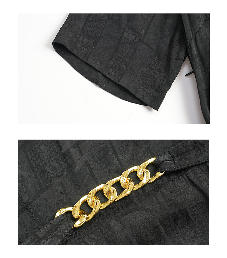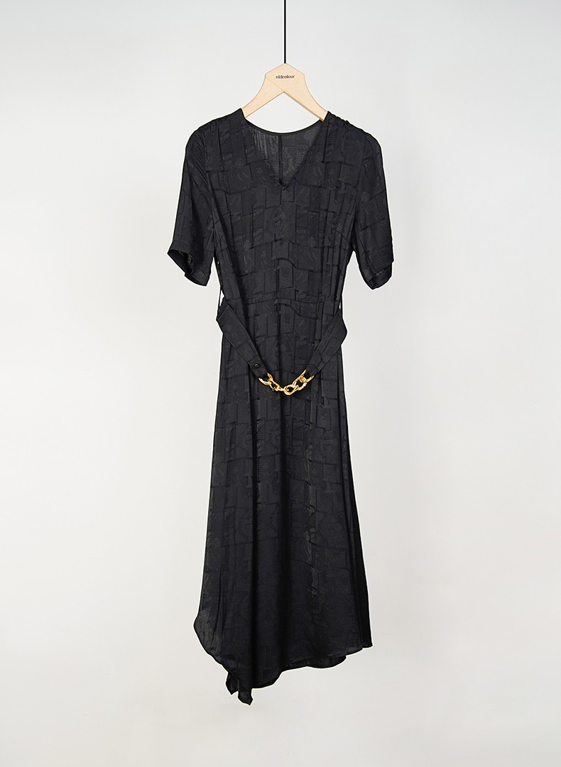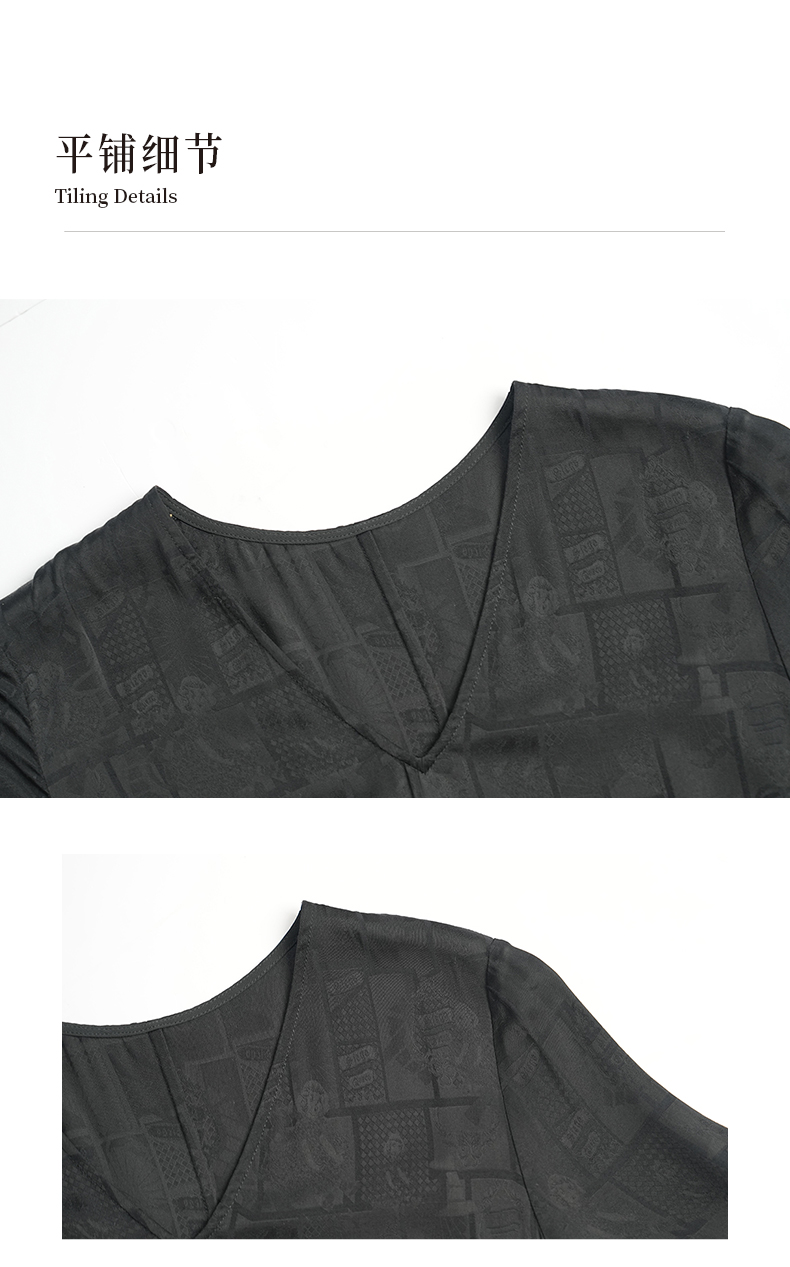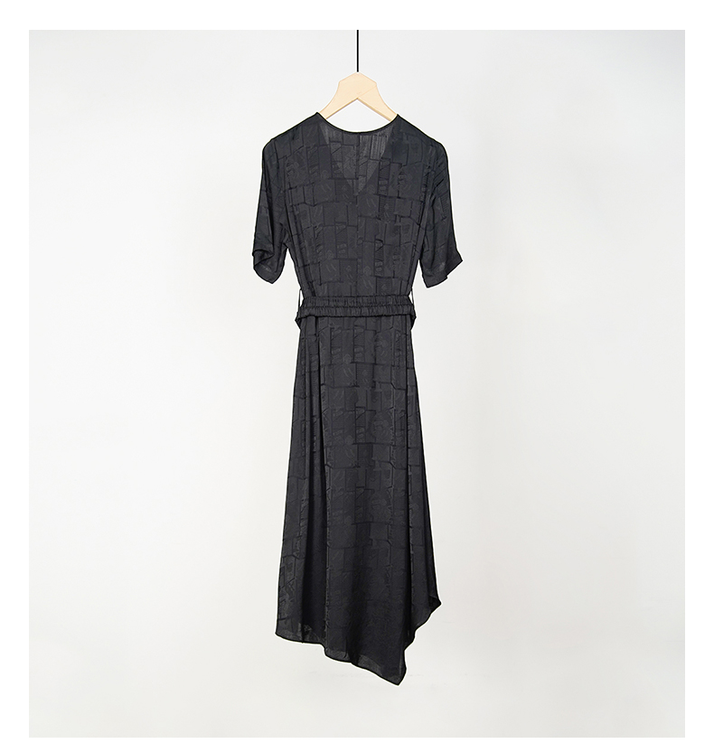 oldcolour夏款黑色气质时尚通勤收腰V领长款短袖连衣裙O23101325