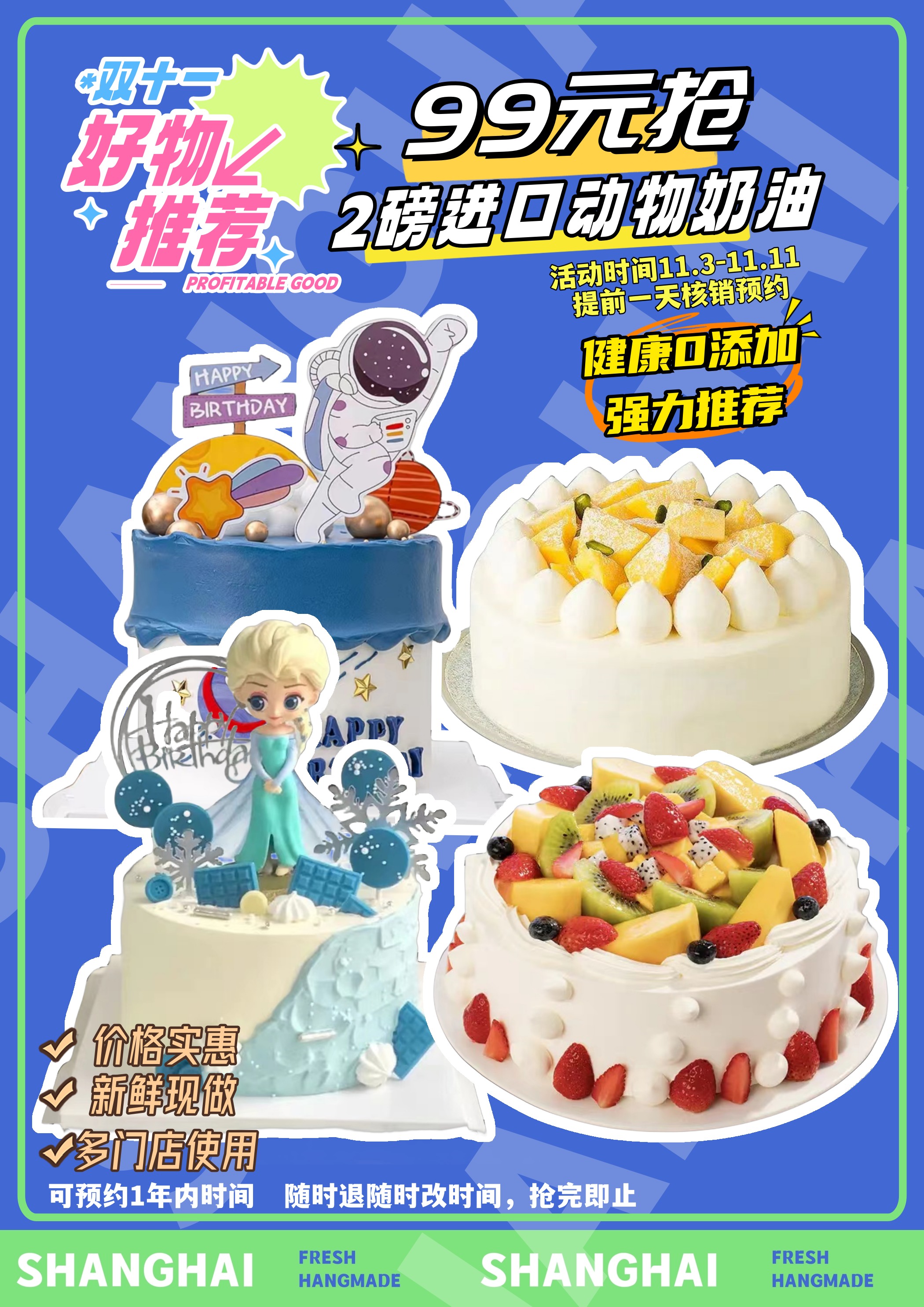 (卡劵)【福利】99元抢2磅进口动物奶油生日蛋糕-多款式可选/1年有效/随时退
