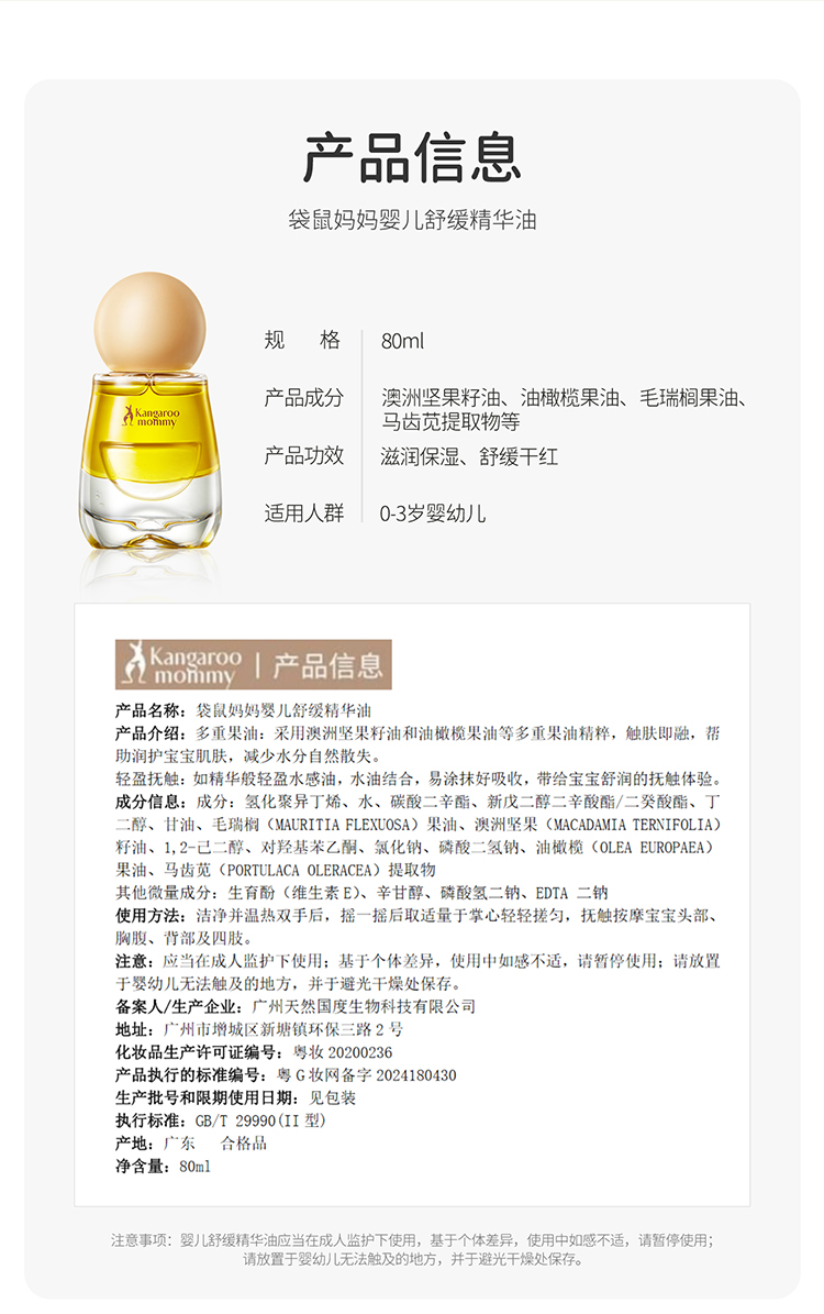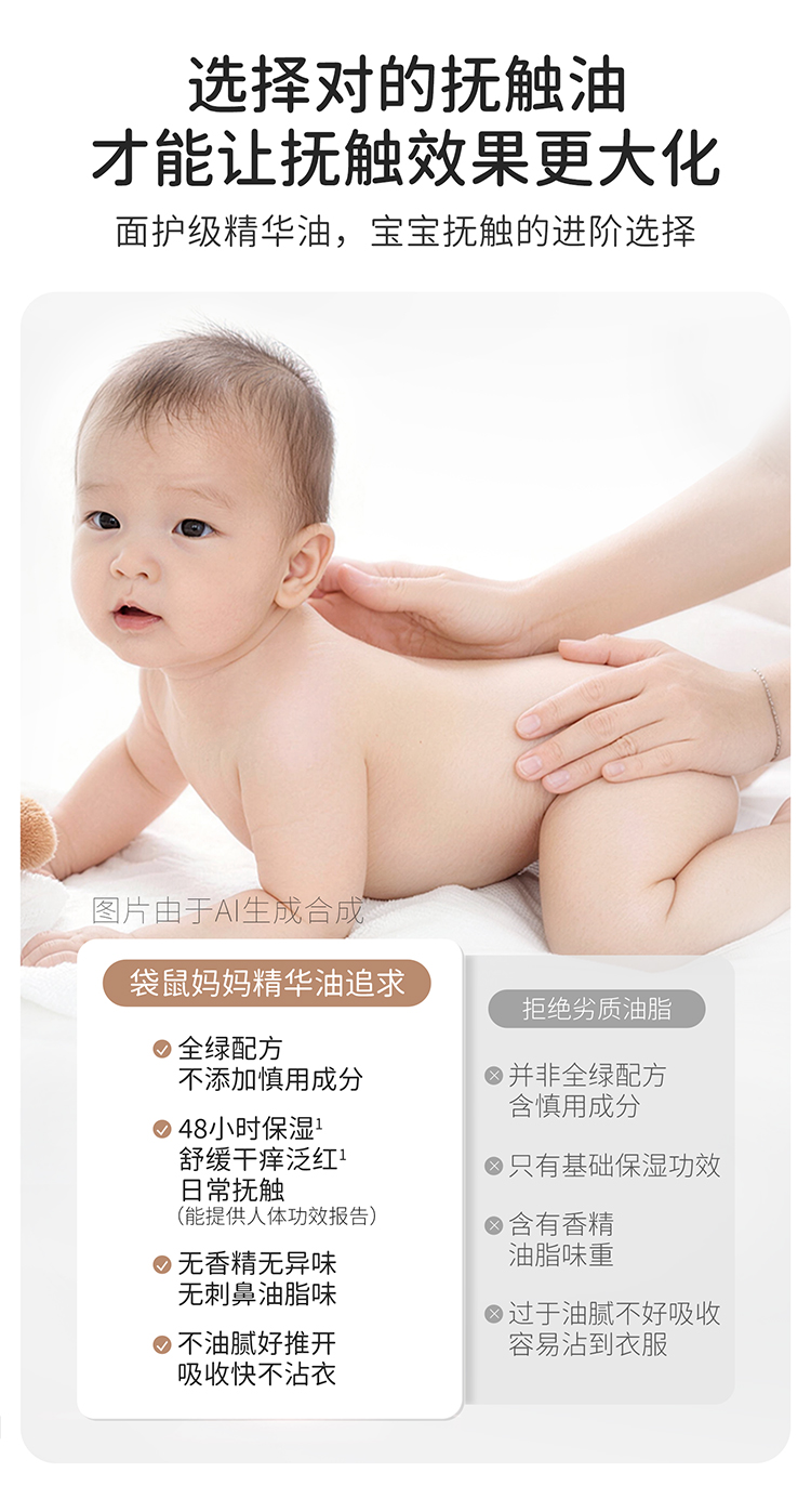 【抚触油】新生儿可用 宝宝按摩油 水油同补 保湿舒缓泛红 快吸收不沾衣 婴儿舒缓精华油80ml