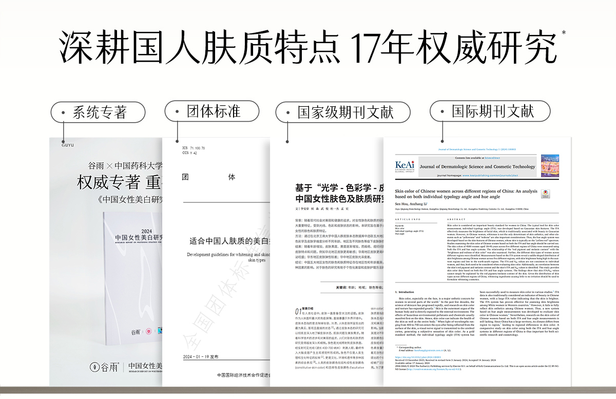- 谷雨,更适合中国人肤质的植萃美白。专研中华珍稀美白植萃光甘草定,深入研究中国人肤质特点,打造中国女性独有的仙气白。