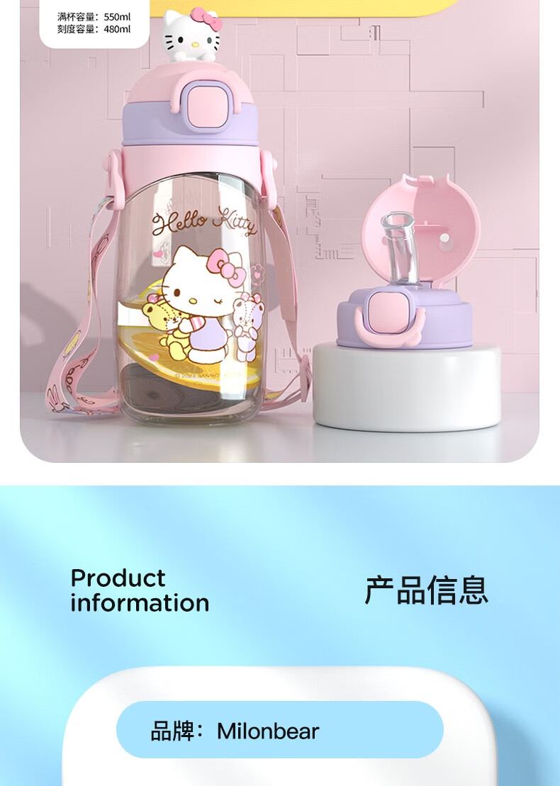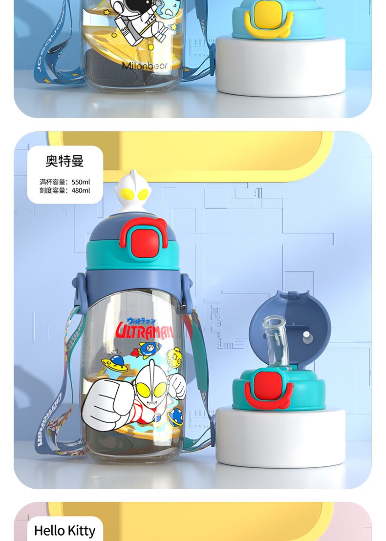 米仑熊(Milonbear)奥特曼hellokitty儿童吸嘴水杯500ml MLX