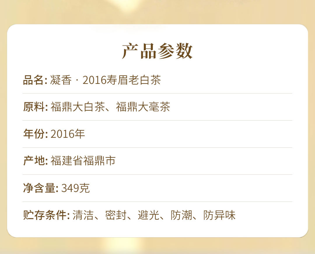 凝香·2016寿眉老白茶礼盒装349g