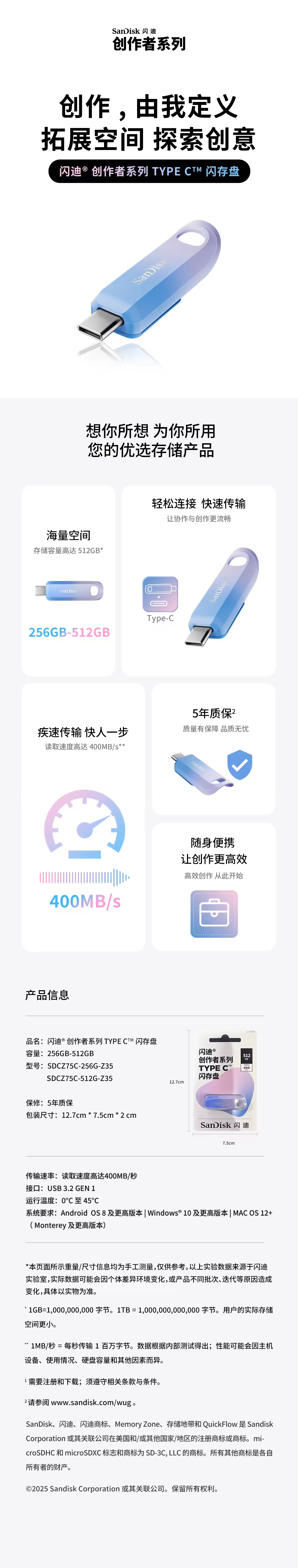 SANDISK闪迪 创作者系列 USB-C 闪存 U 盘
