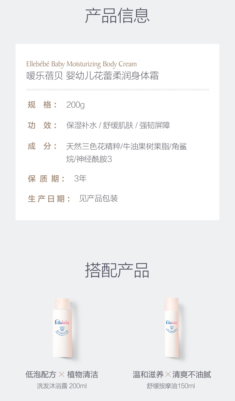 Ellabebe嗳乐蓓贝 婴幼儿小云朵花蕾柔润身体霜补水保湿 200g 1m+