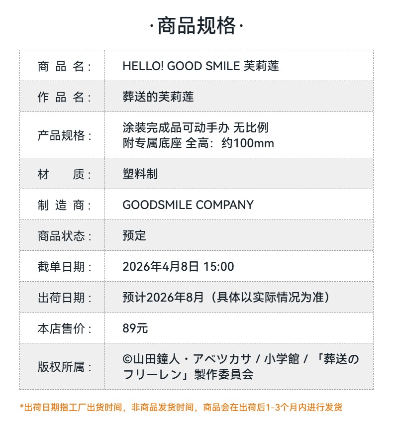 【GSC预售定金】HELLO! GOOD SMILE 芙莉莲 葬送的芙莉莲