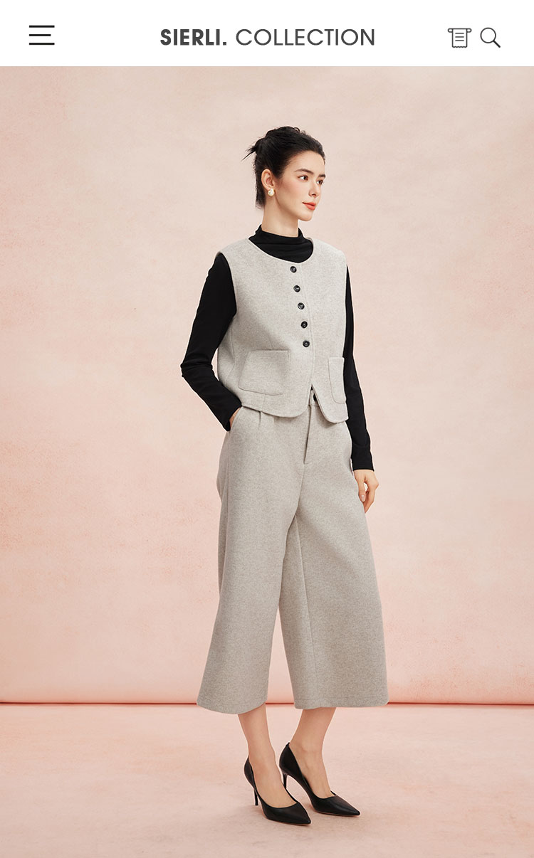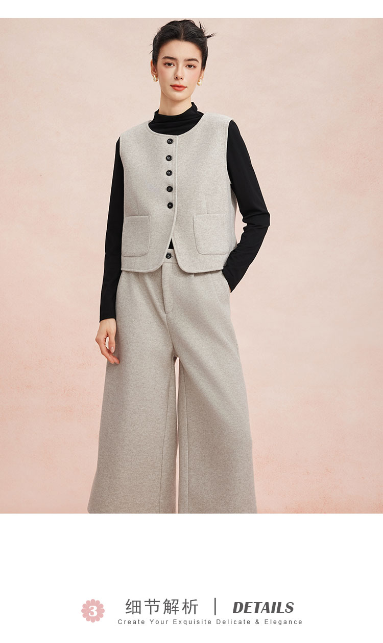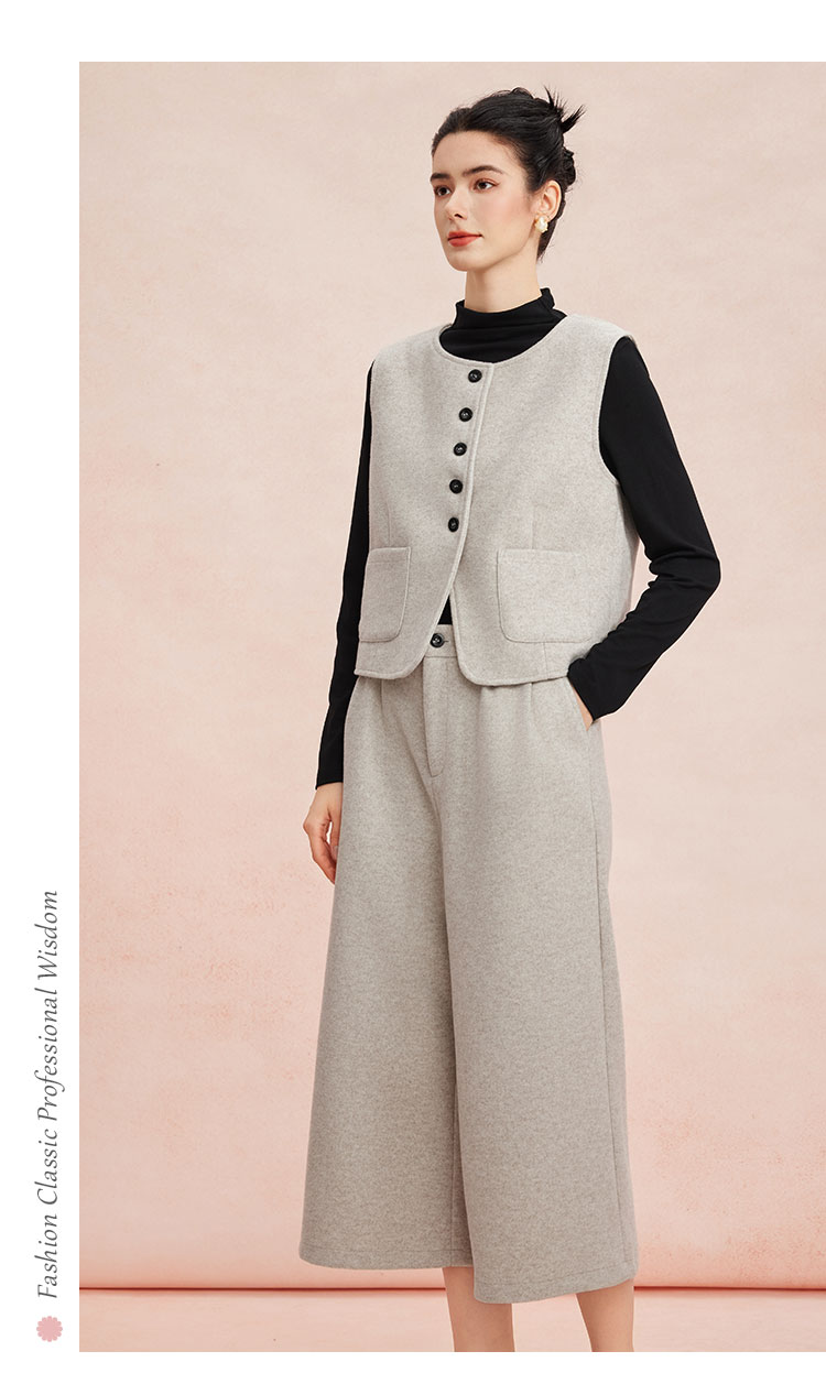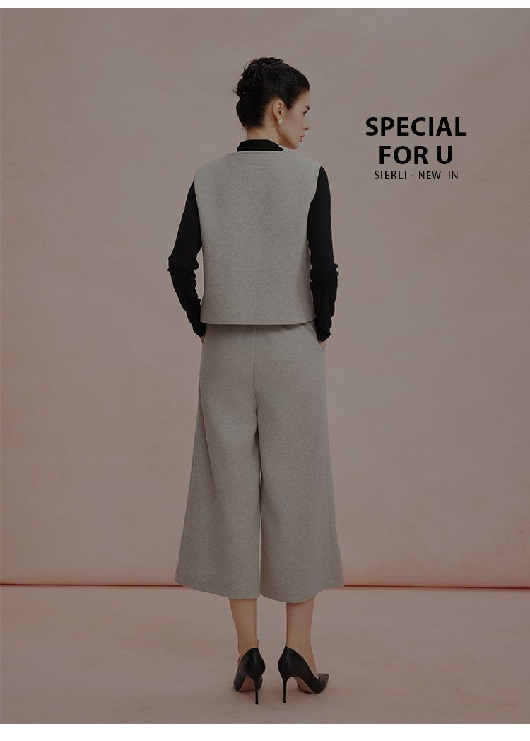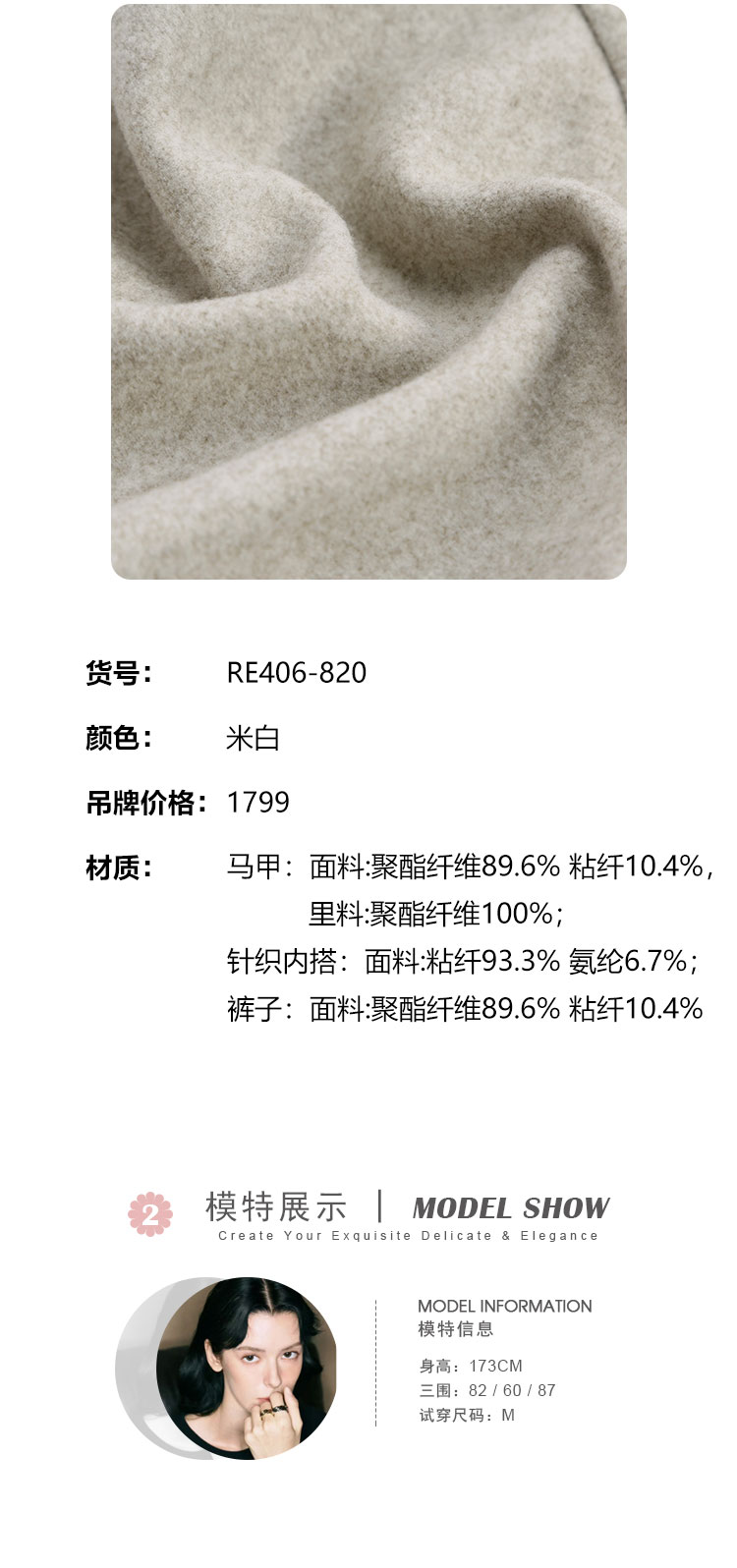 RE406斯尔丽26新款小香风宽松马甲+阔腿中裤+柔软贴身内搭免搭配套装
