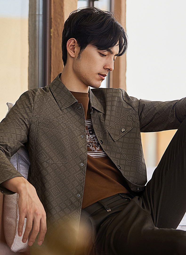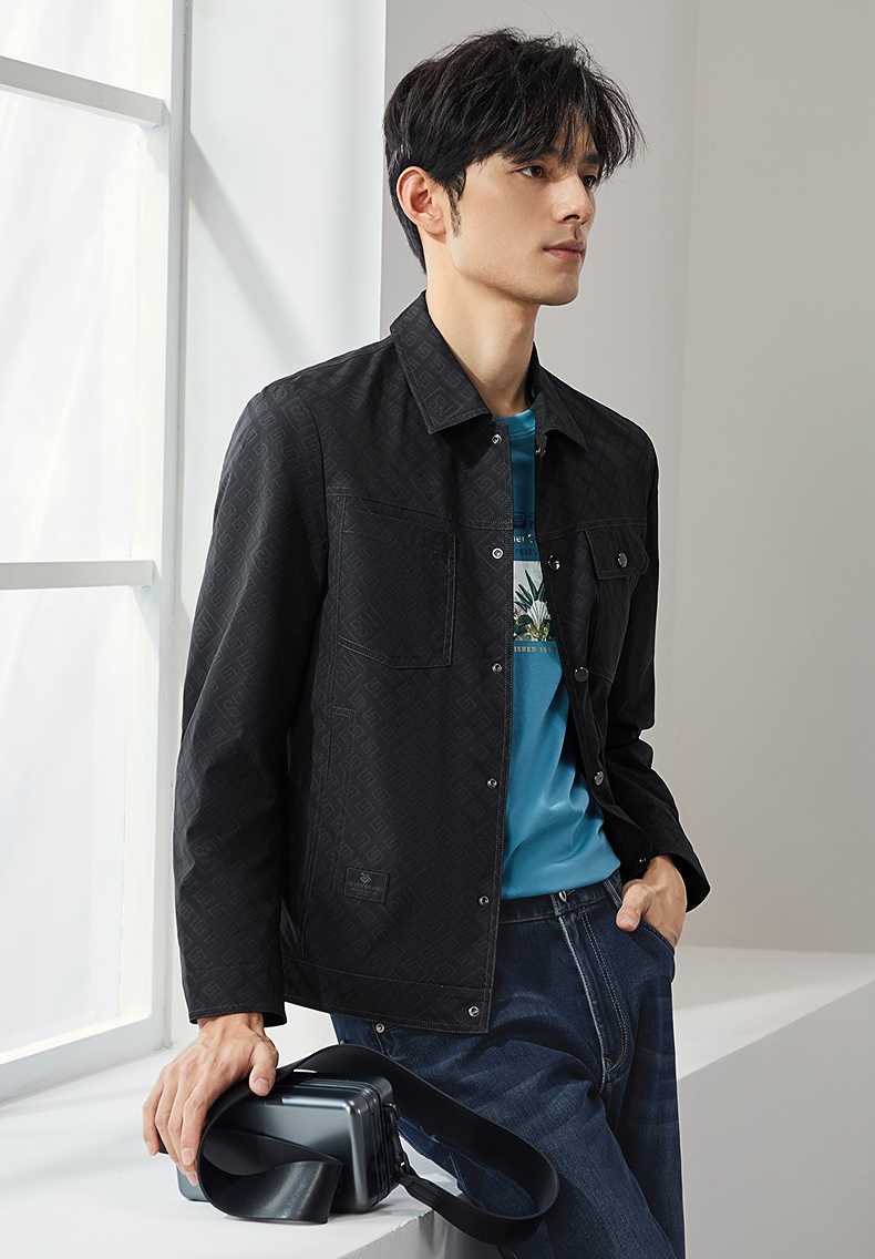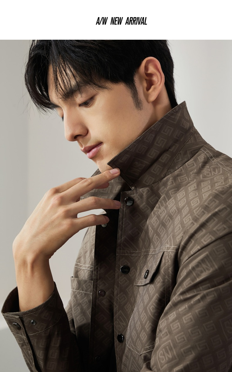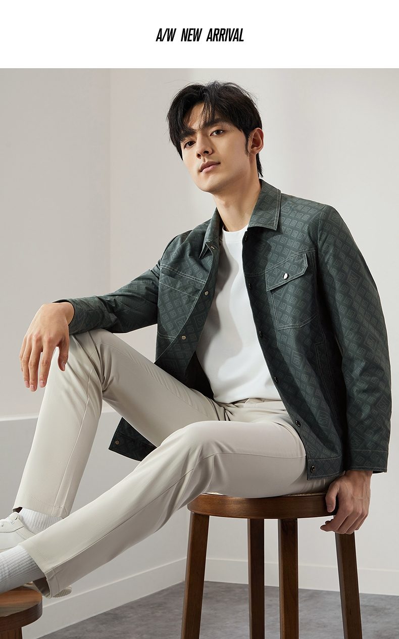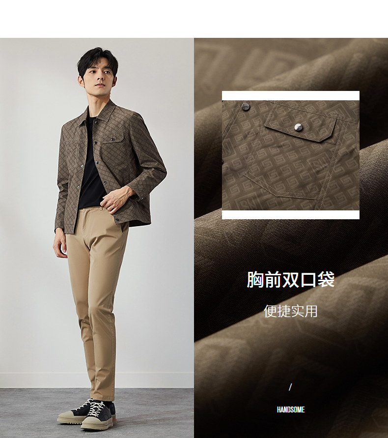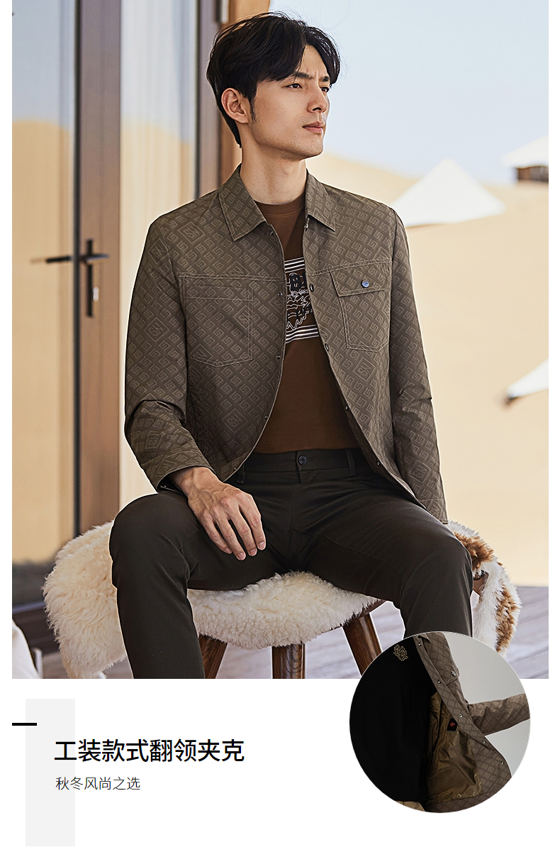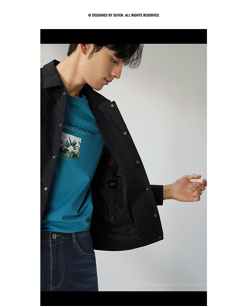 柒牌工装夹克男2024秋季新款时尚潮流中青年满身印花男士翻领外套 127K70210