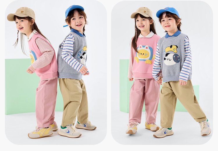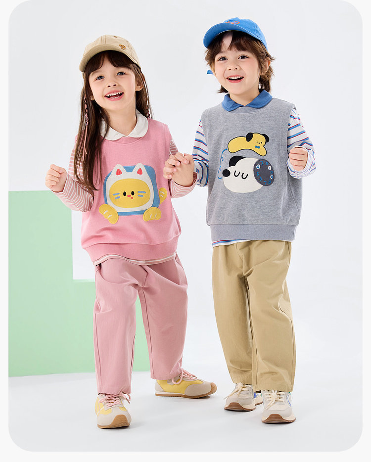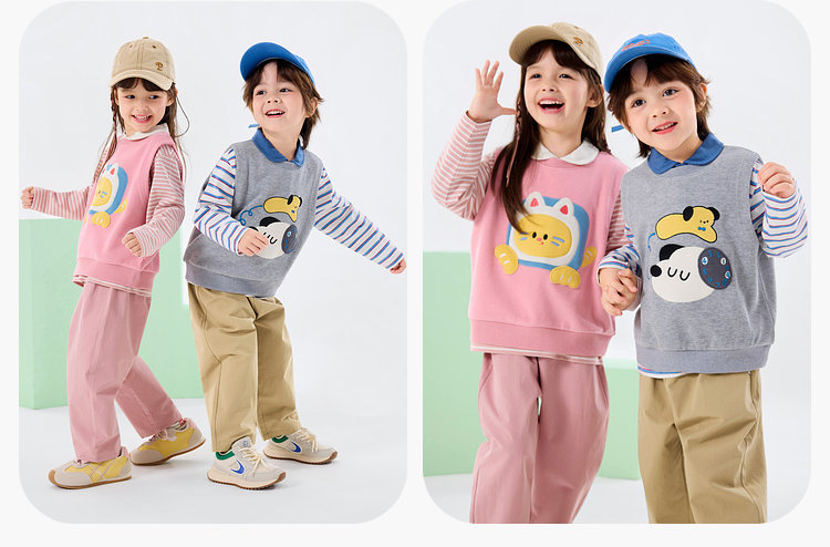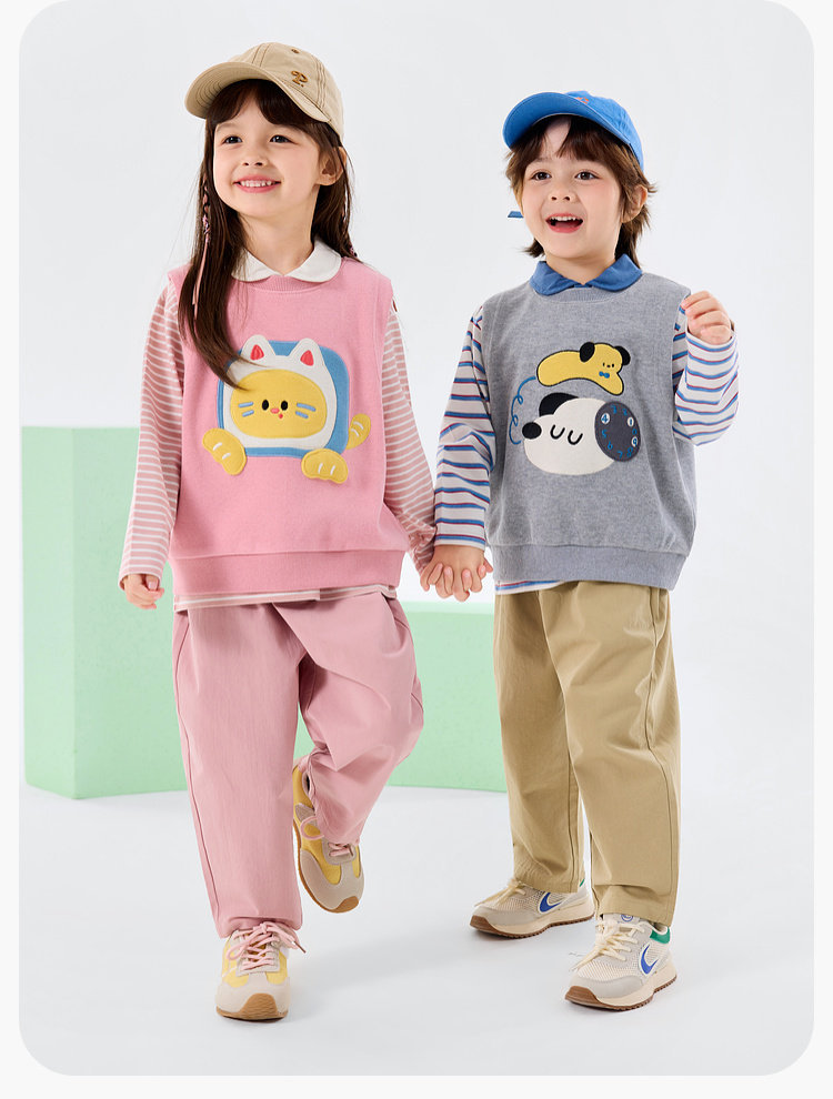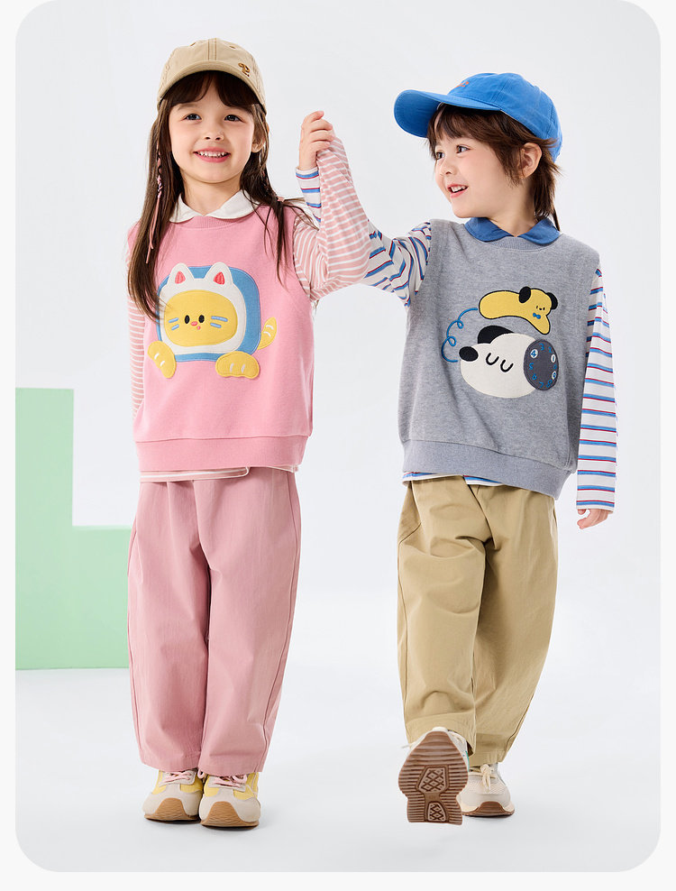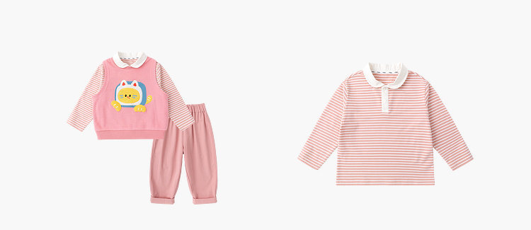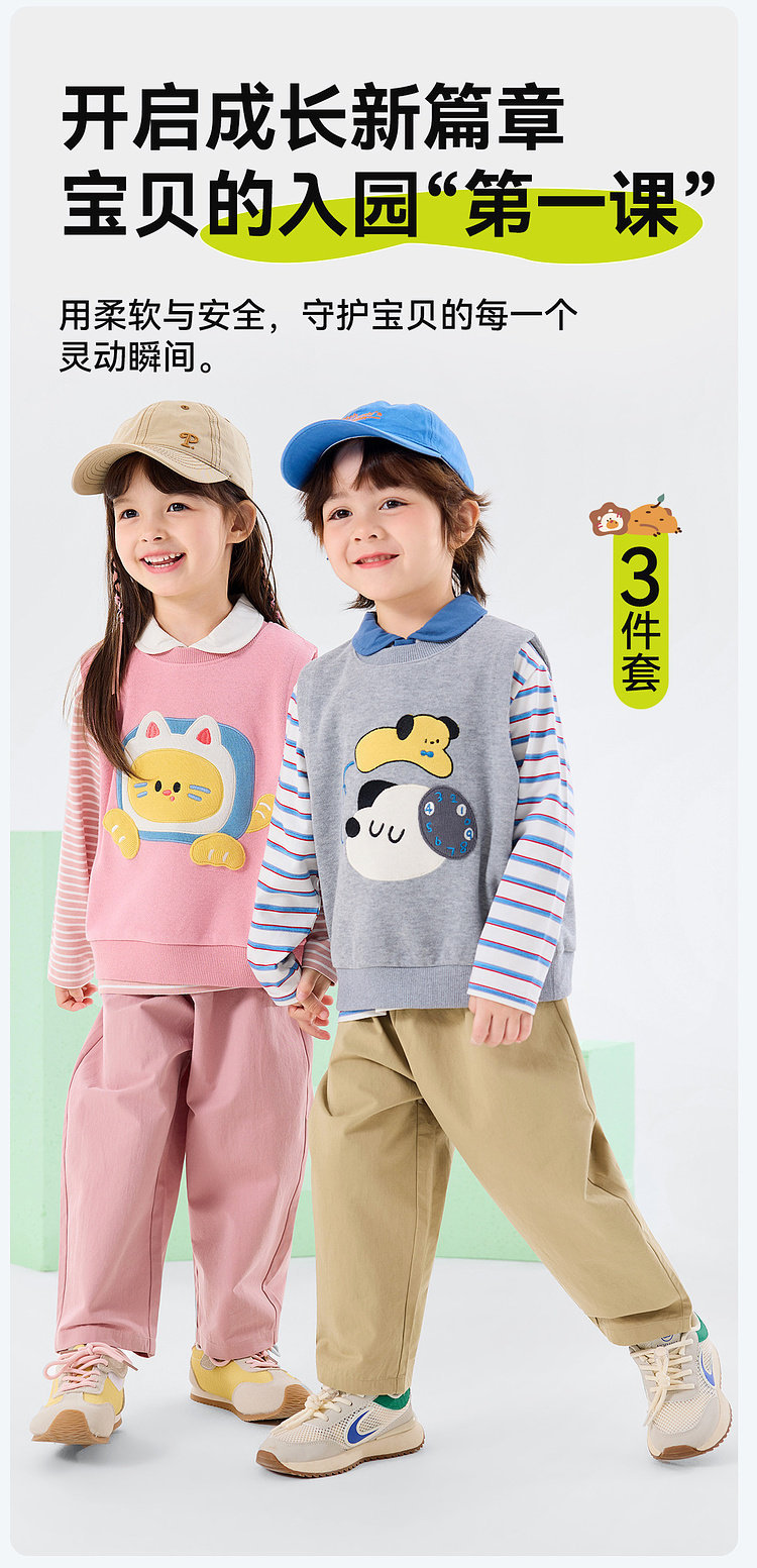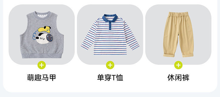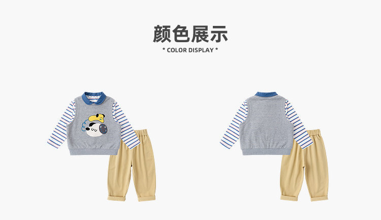 【三件套】嘟嘟家儿童套装男童三件套童装时尚洋气女童条纹T恤马甲裤子春秋D6ATZ177