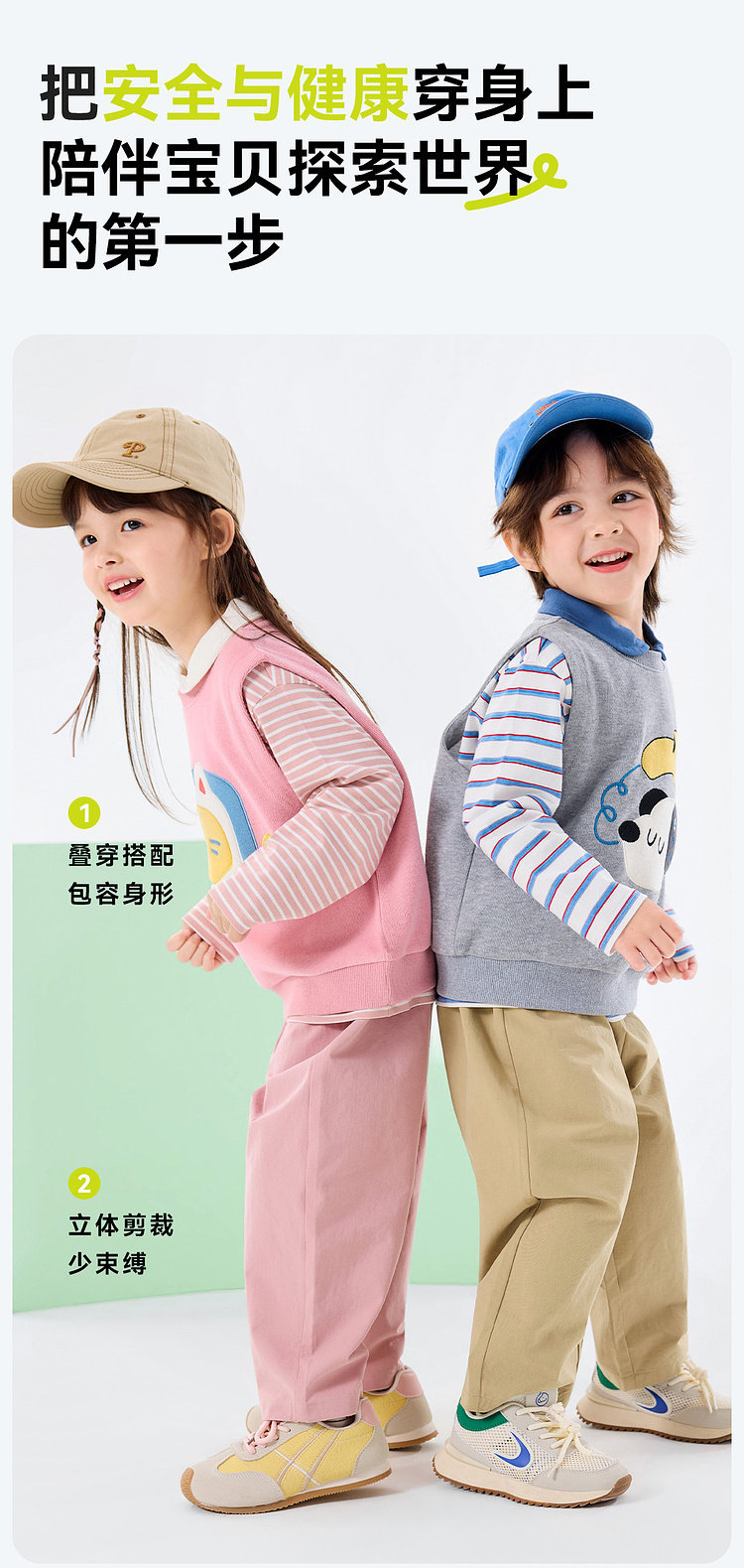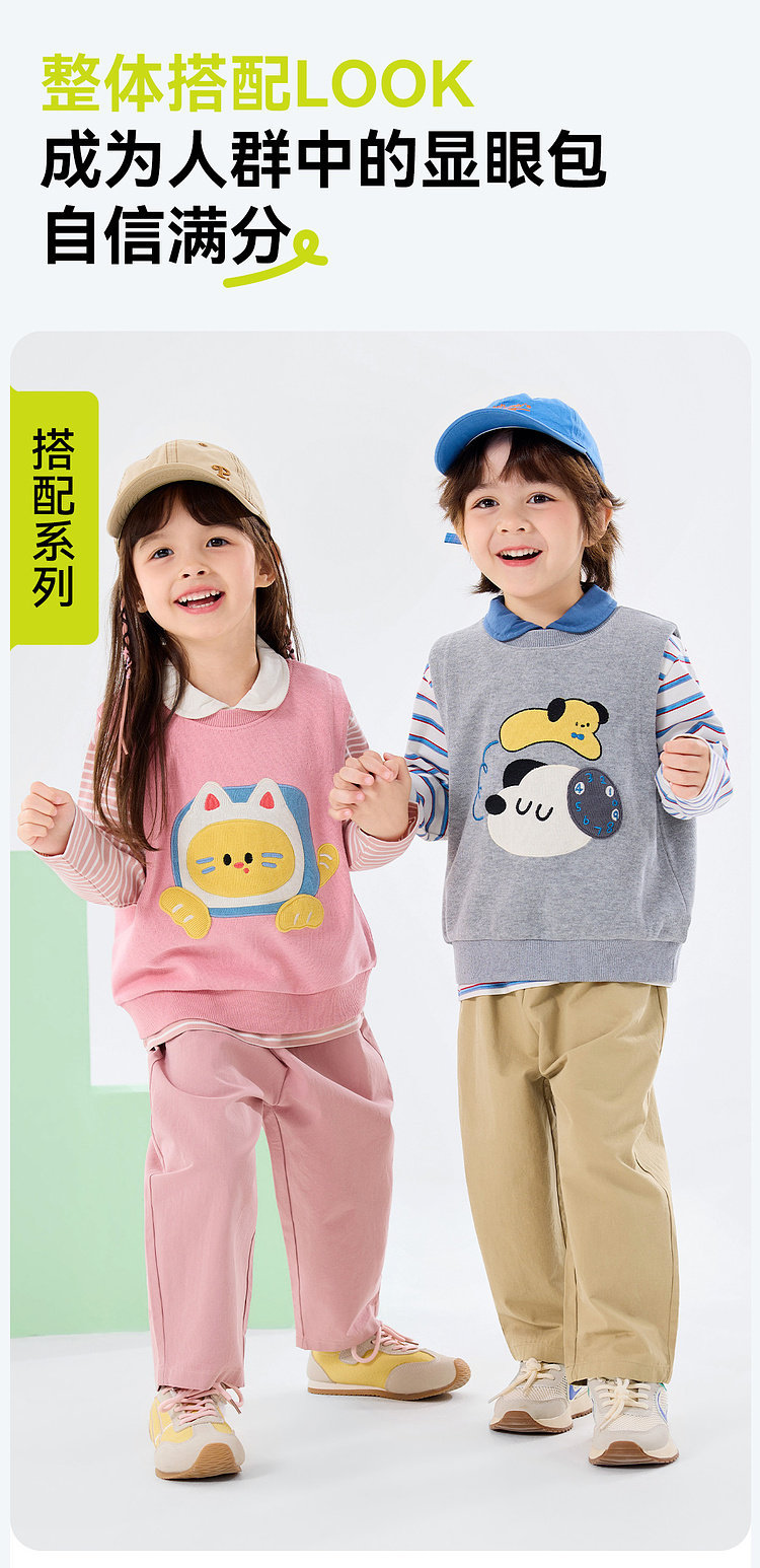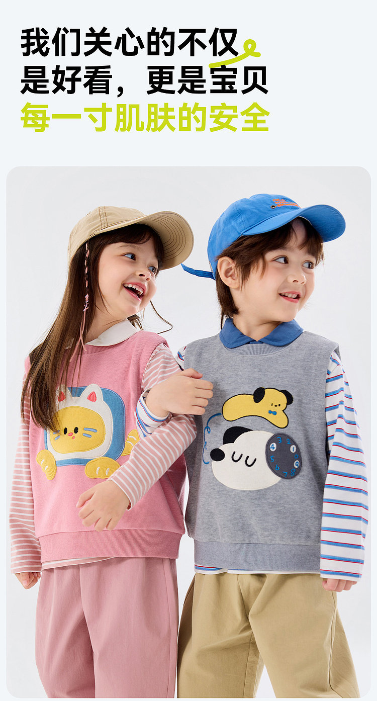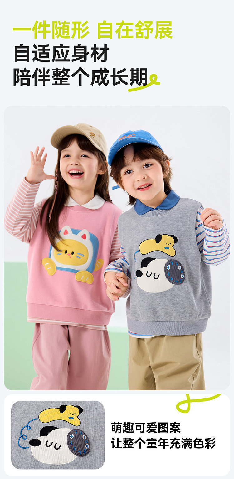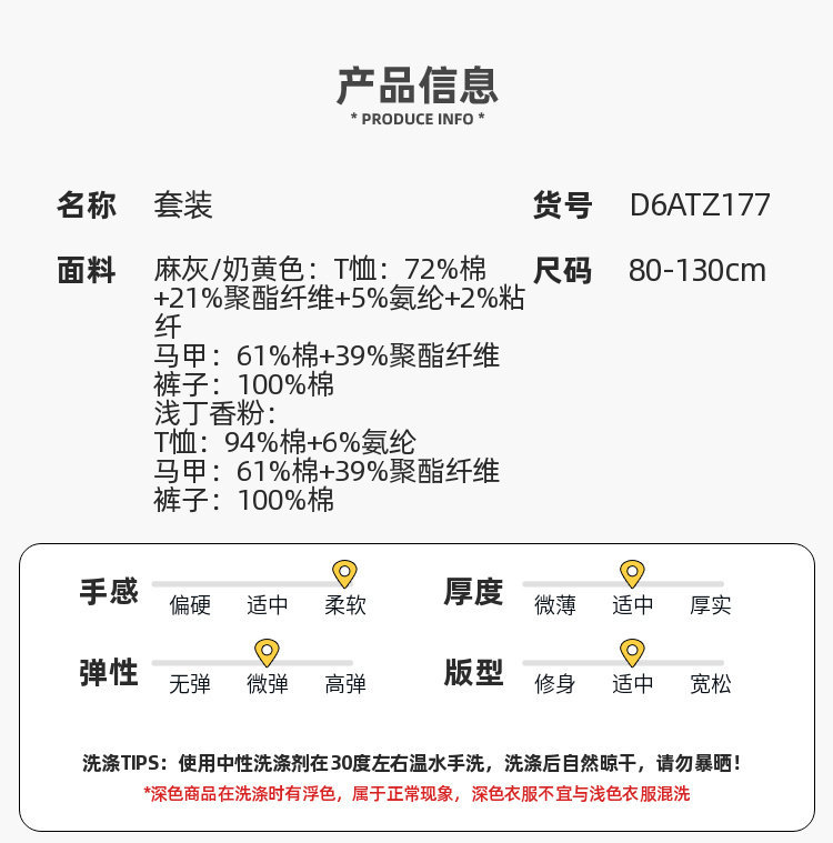 【三件套】嘟嘟家儿童套装男童三件套童装时尚洋气女童条纹T恤马甲裤子春秋D6ATZ177
