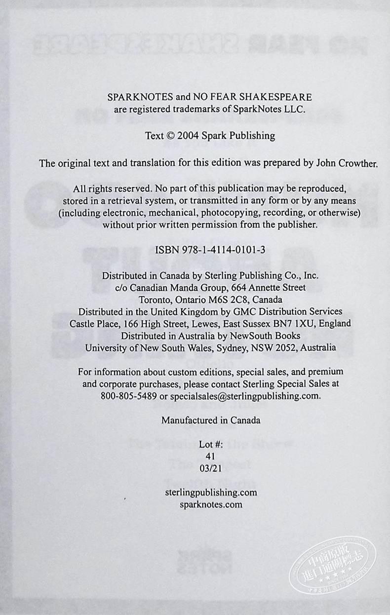 【中商原版】无事生非 无惧莎士比亚 英文原版 Much Ado About Nothing No Fear Shakespeare Sparknotes Shakespeare