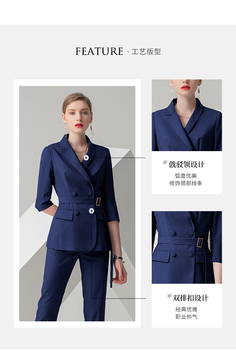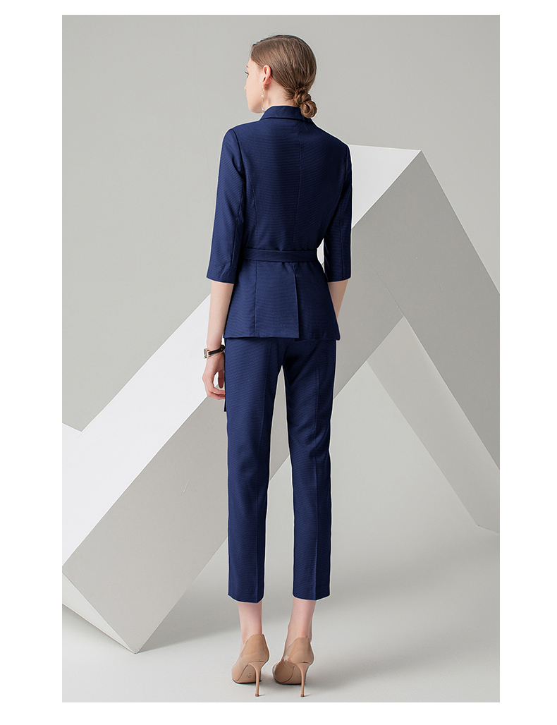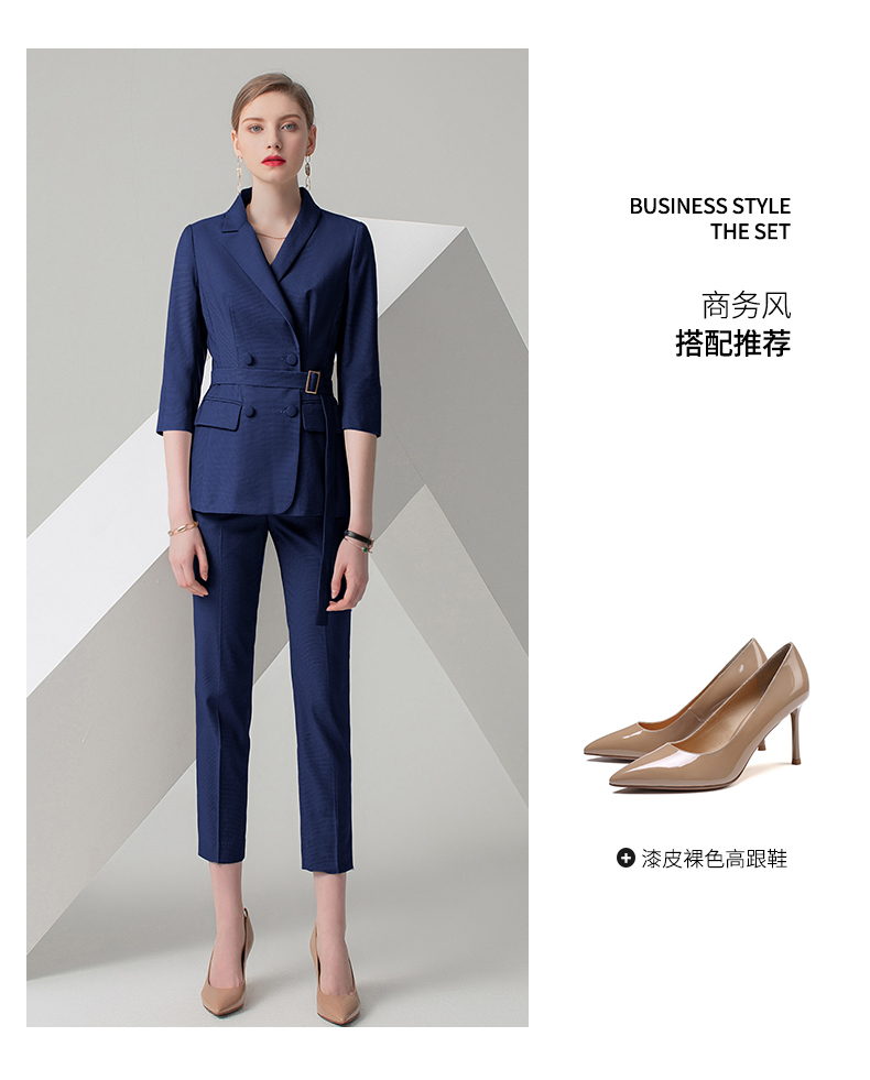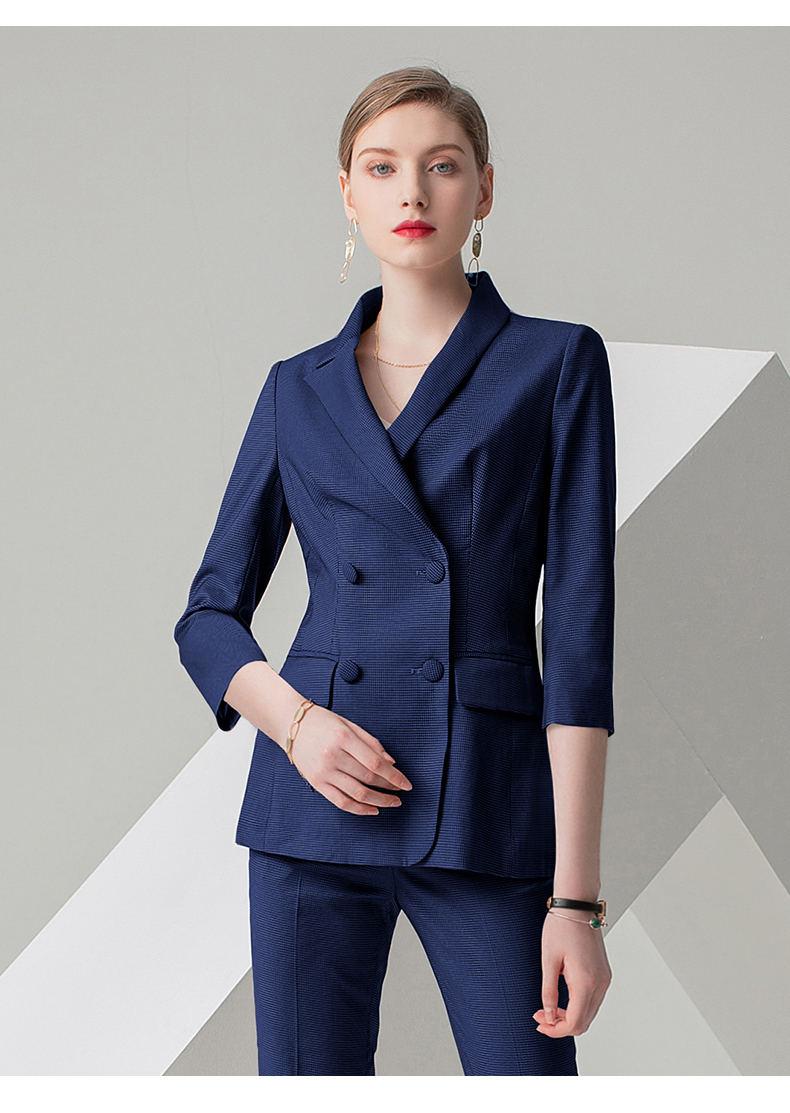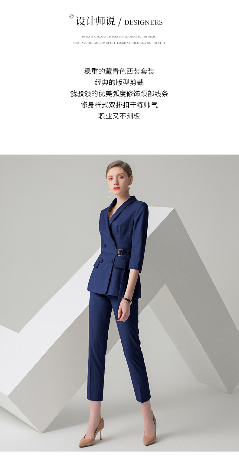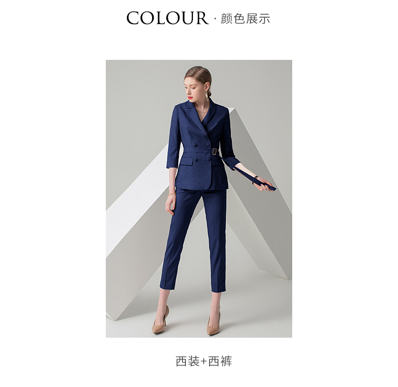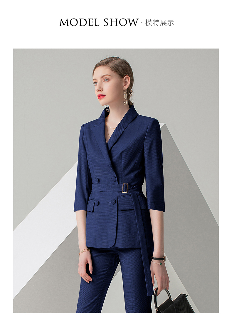 IWY/藏青色七分袖千鸟格时尚气质女神职场商务OL工作服高端职业西服套装女C10387+PS10310