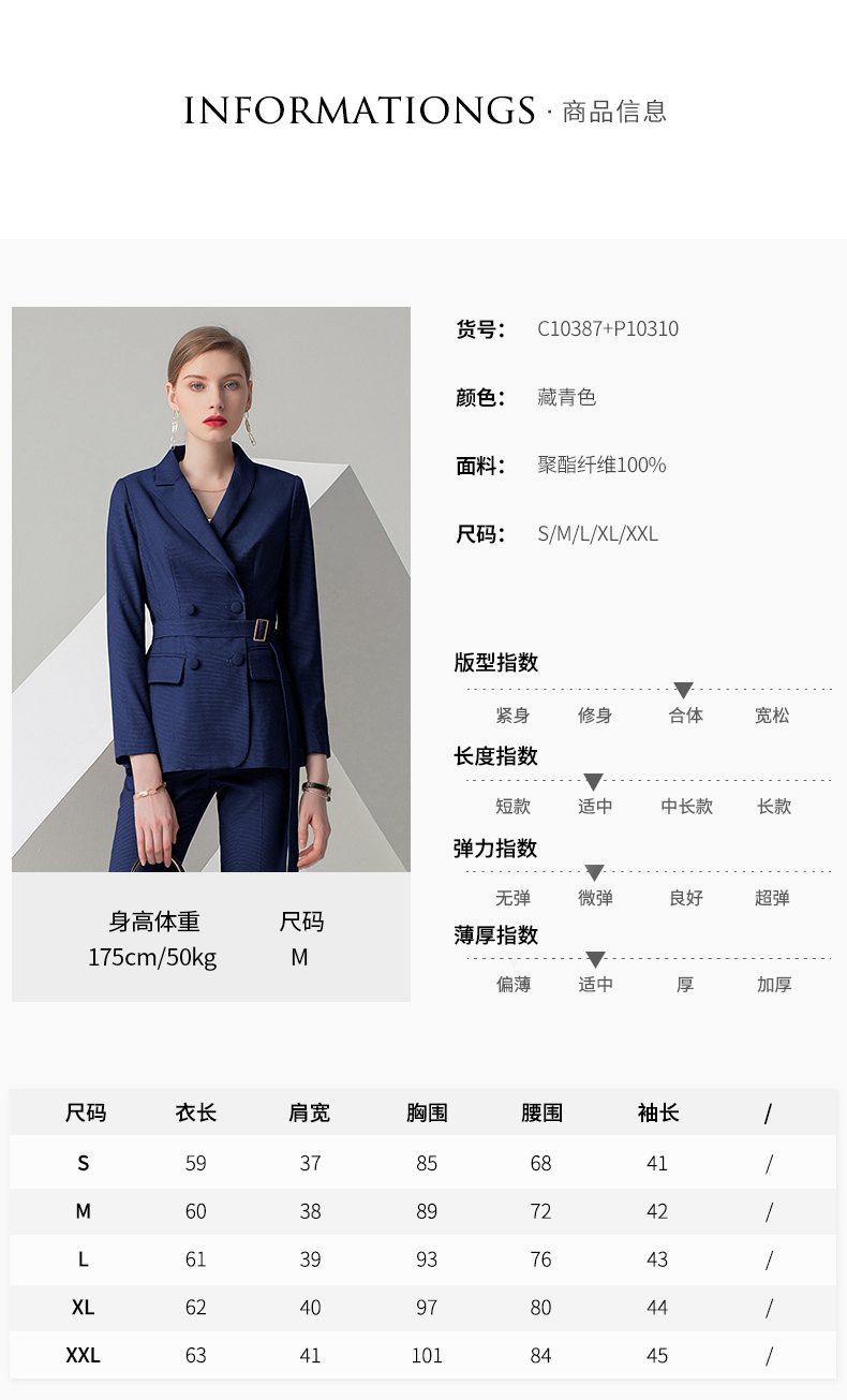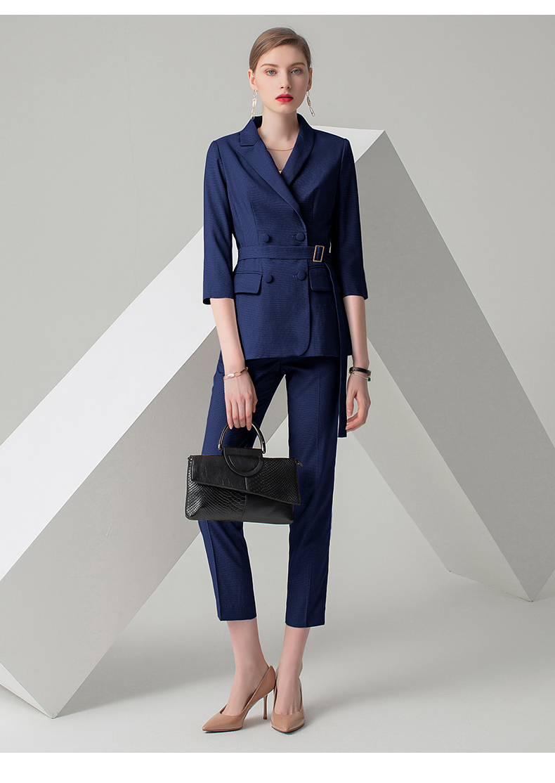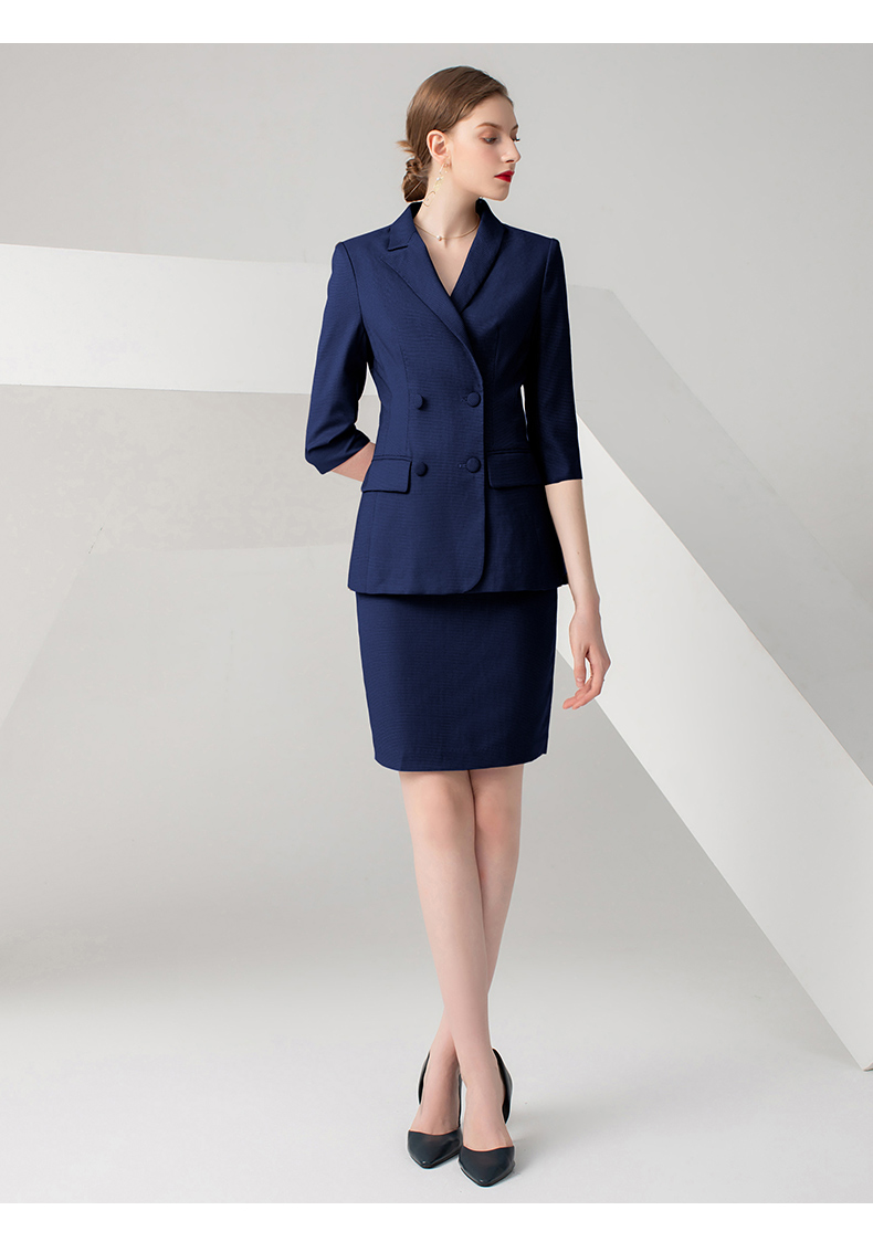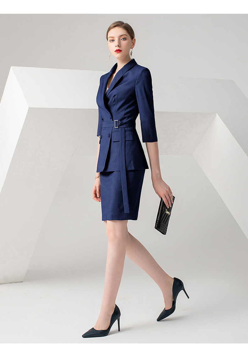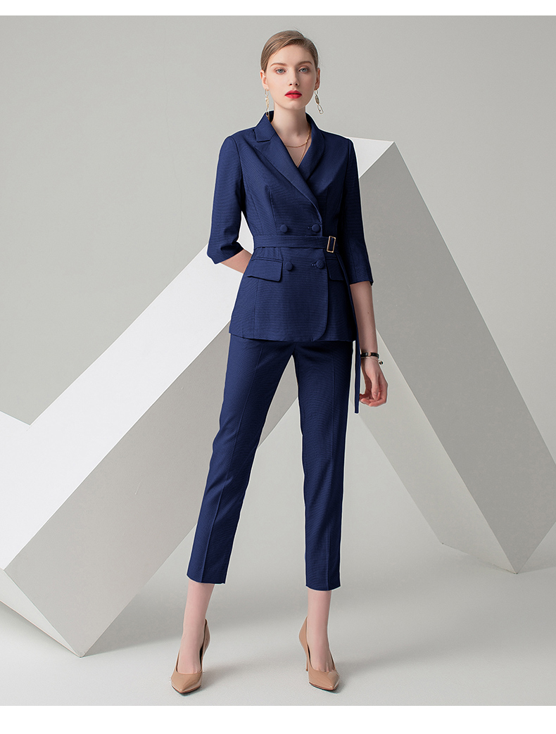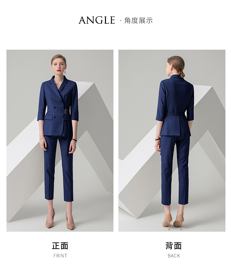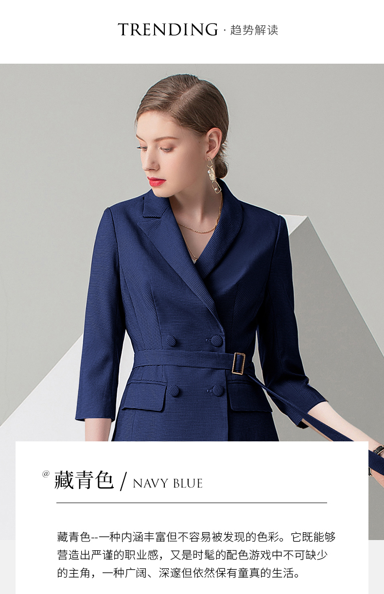 IWY/藏青色七分袖千鸟格时尚气质女神职场商务OL工作服高端职业西服套装女C10387+PS10310