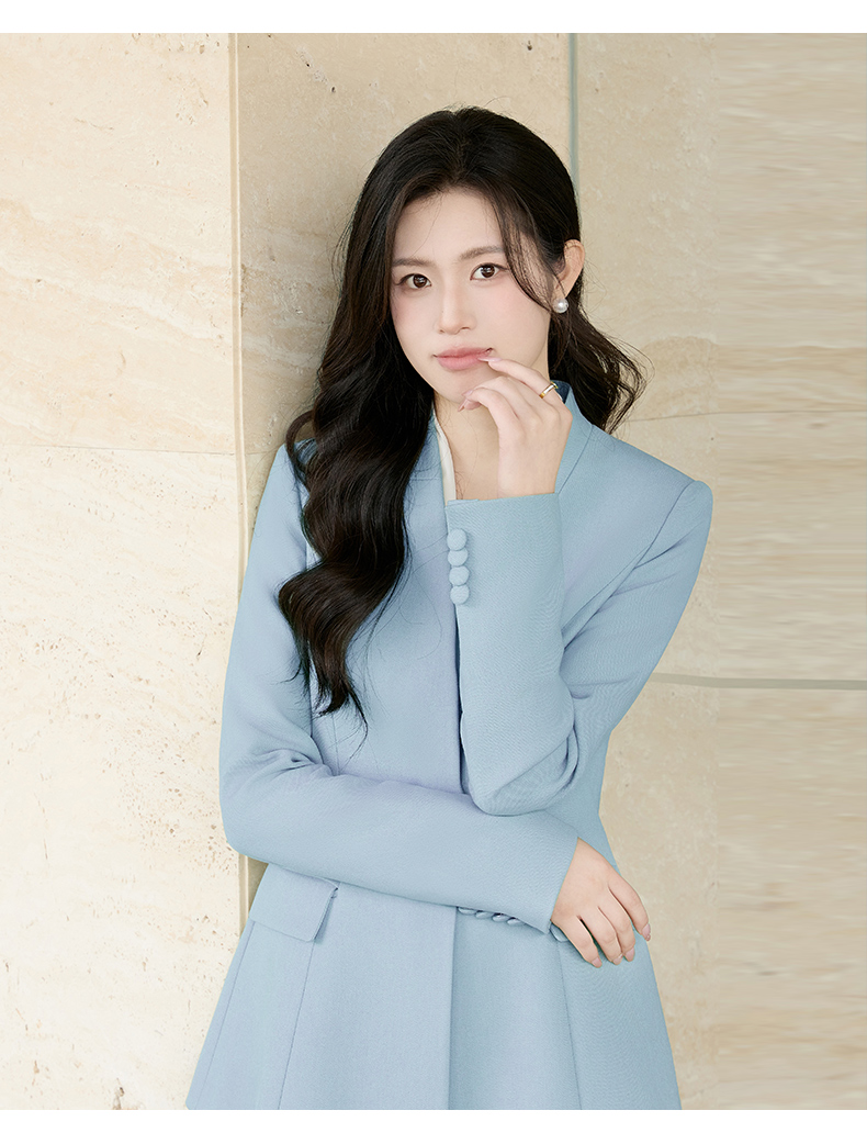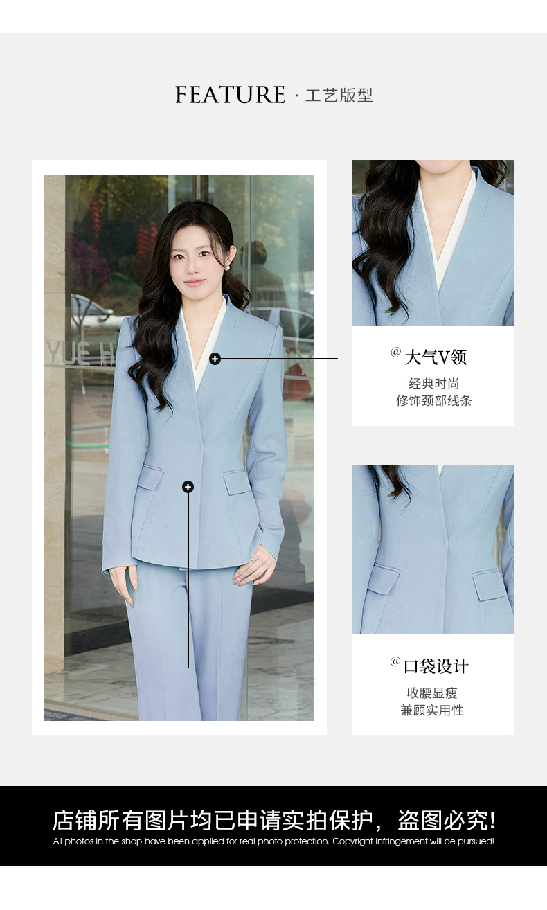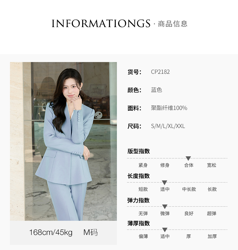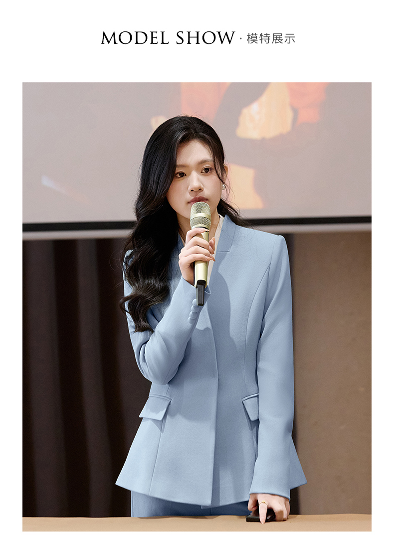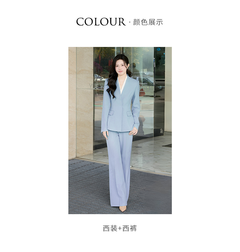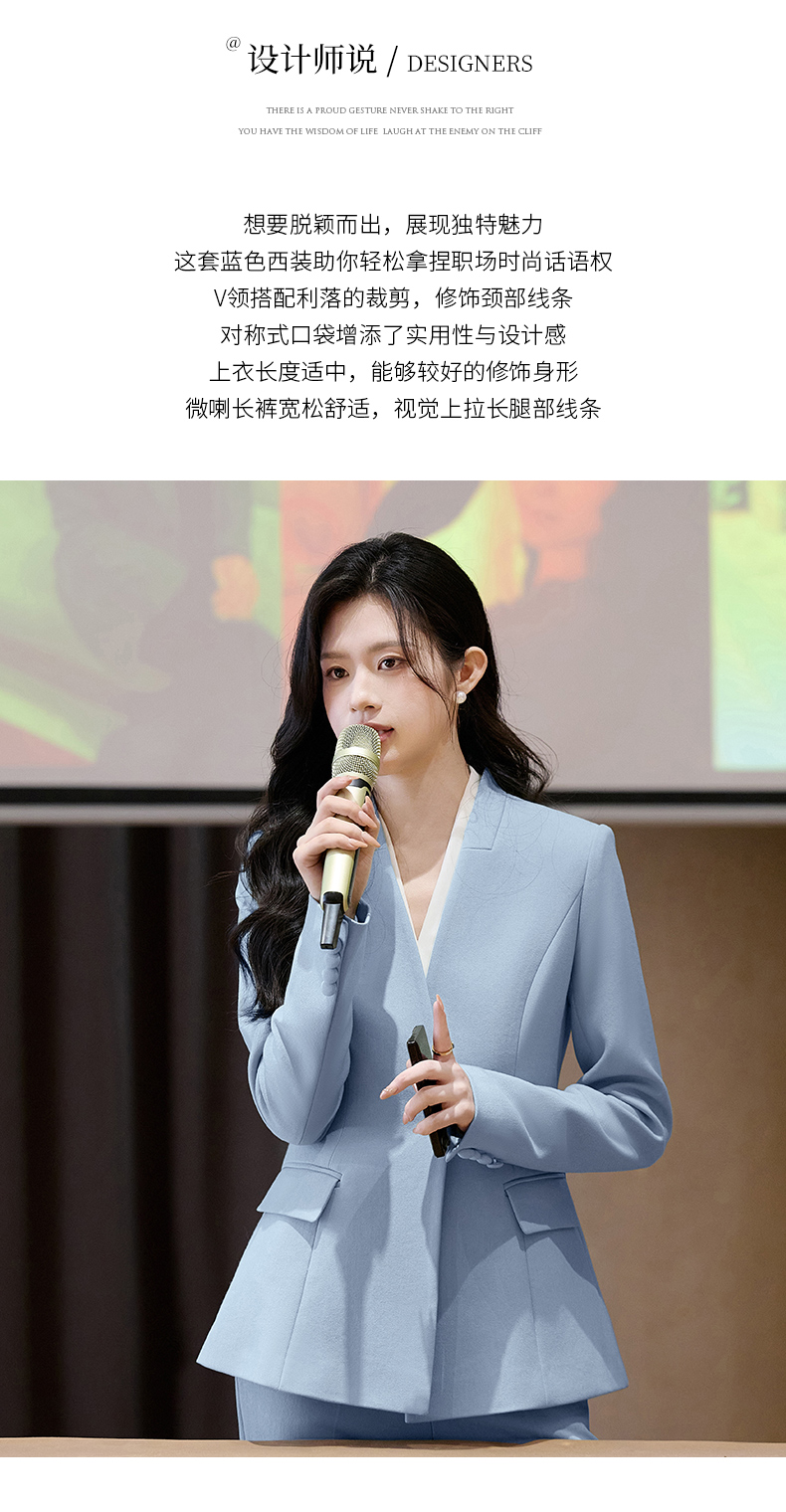 法小曼*子珍专款/蓝色职场套装女西装外套中长款显瘦阔腿裤正装CP2063