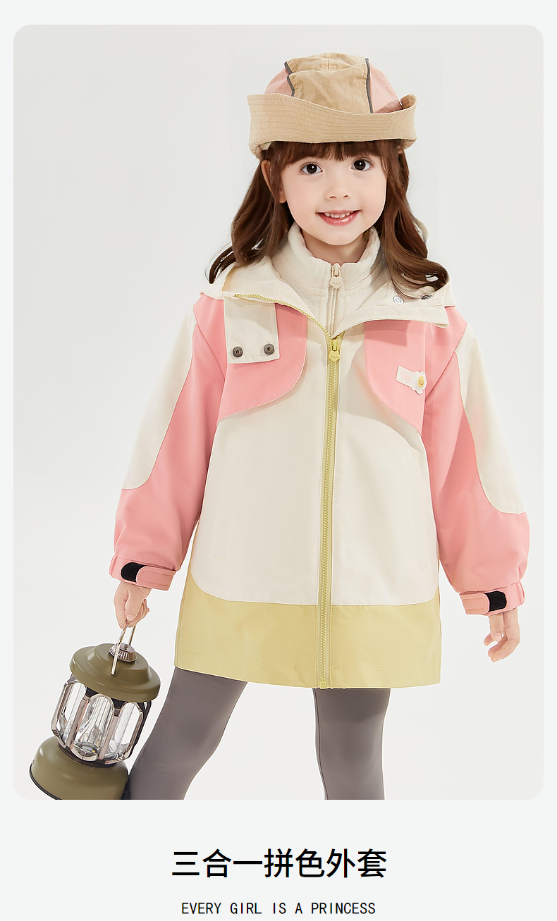 笛莎Deesha 童装女童外套2024冬季新款三合一拼色冲锋衣外套