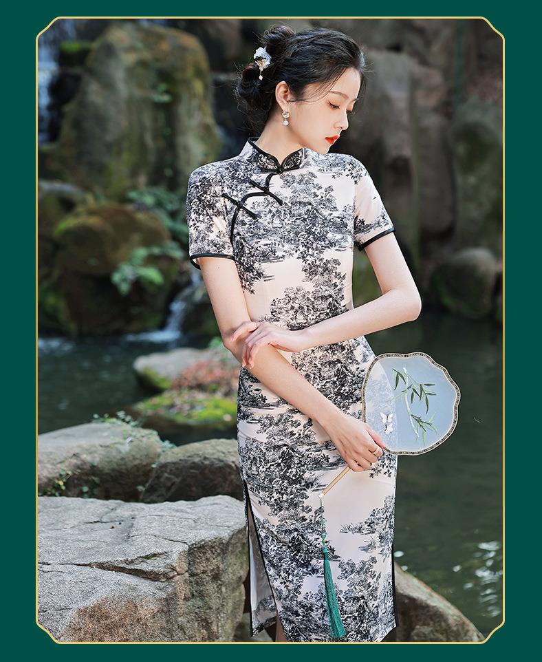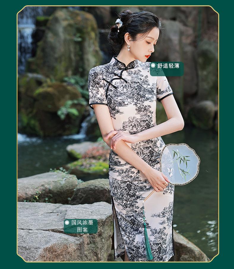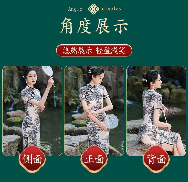 2023春夏新款双层侧八扣双层中长款旗袍连衣裙复古改良老上海旗袍