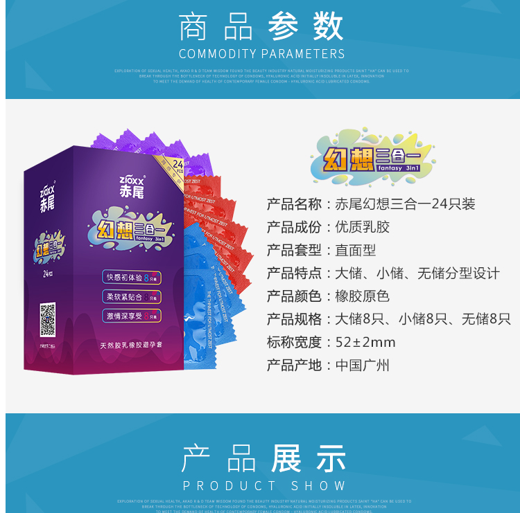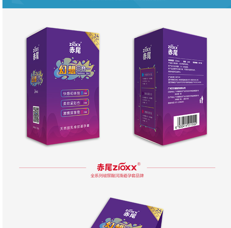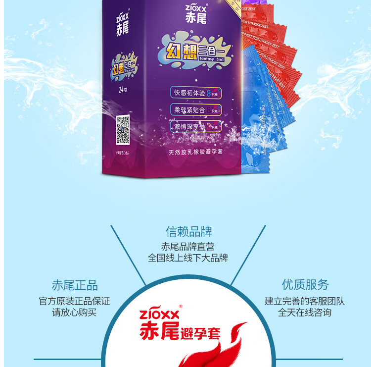 赤尾 超薄避孕套 男女用安全套 三合一24只装 计生成人用品