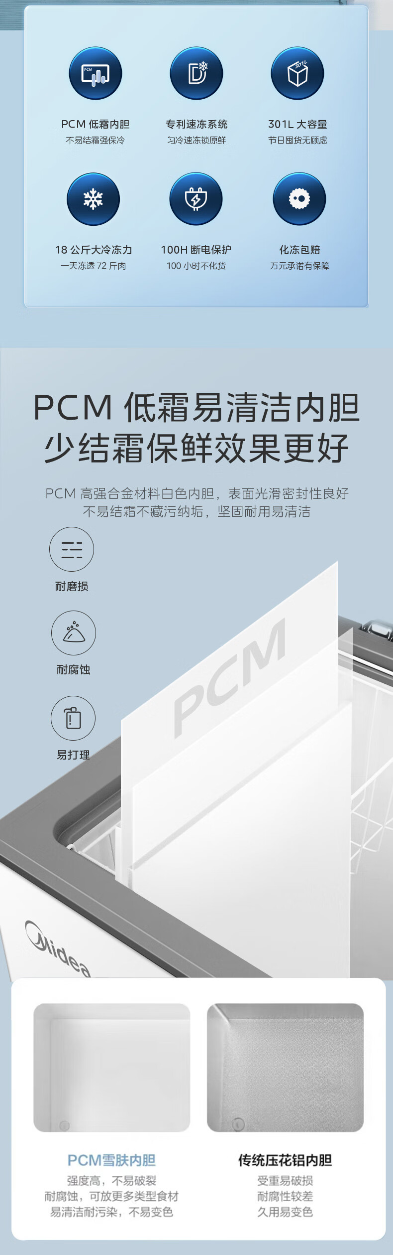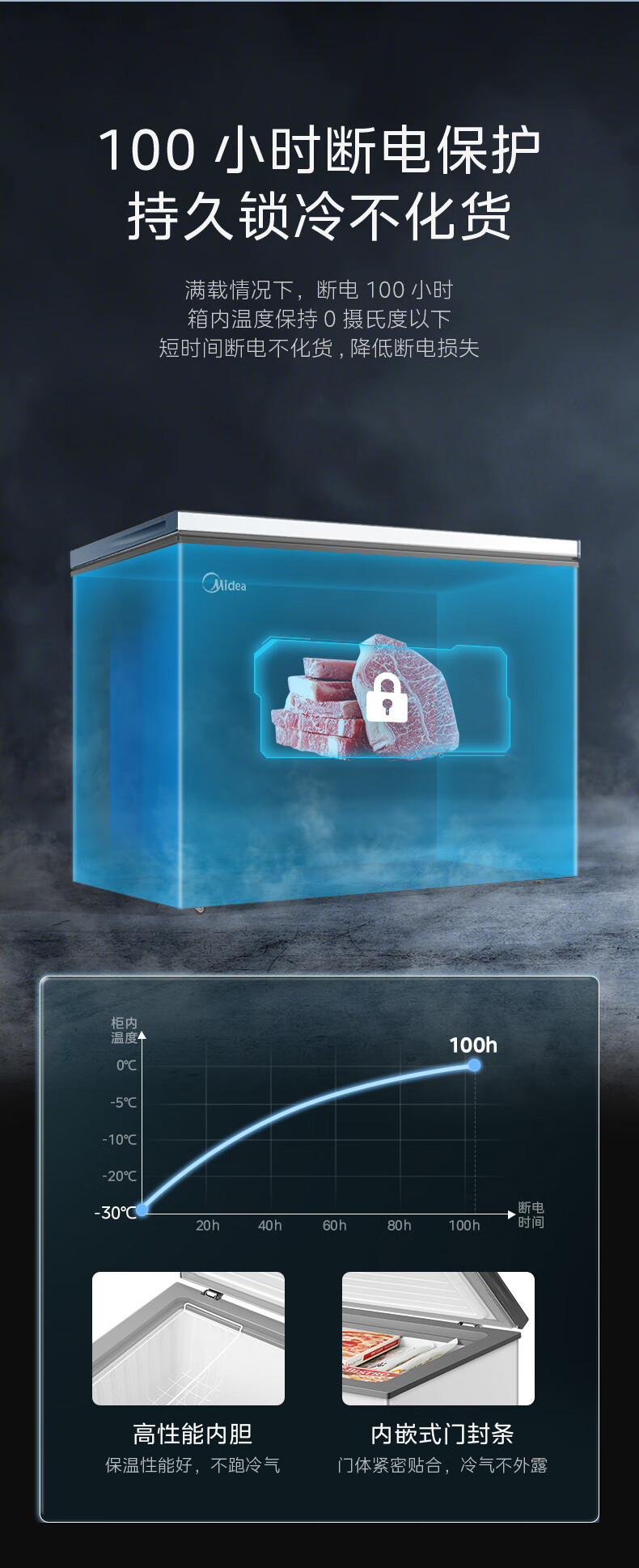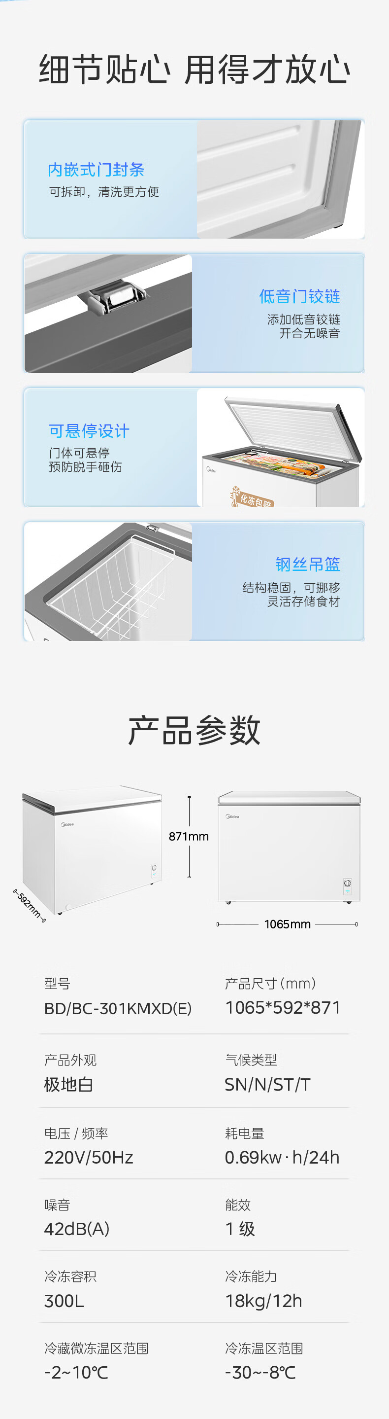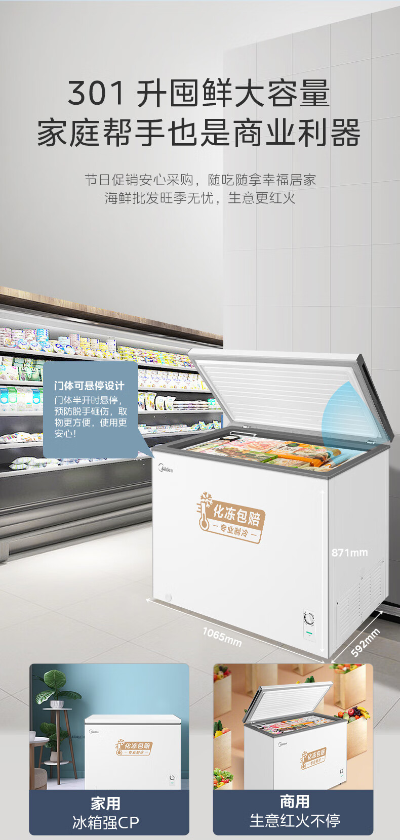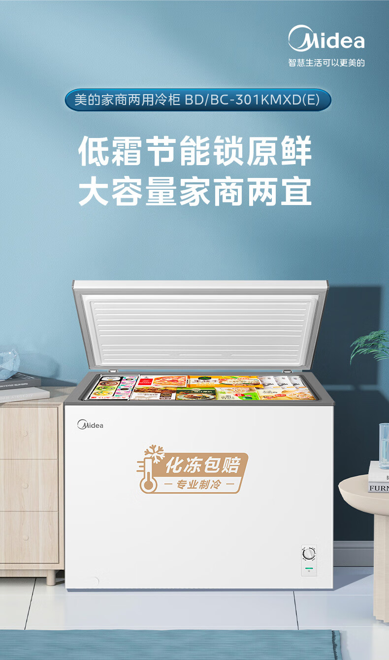 美的 301升 商用 家用 卧式大冷冻 囤货冰柜 大容量 冷藏冷冻转换冷柜 卧式冰箱 BD/BC-301KMXD(E)