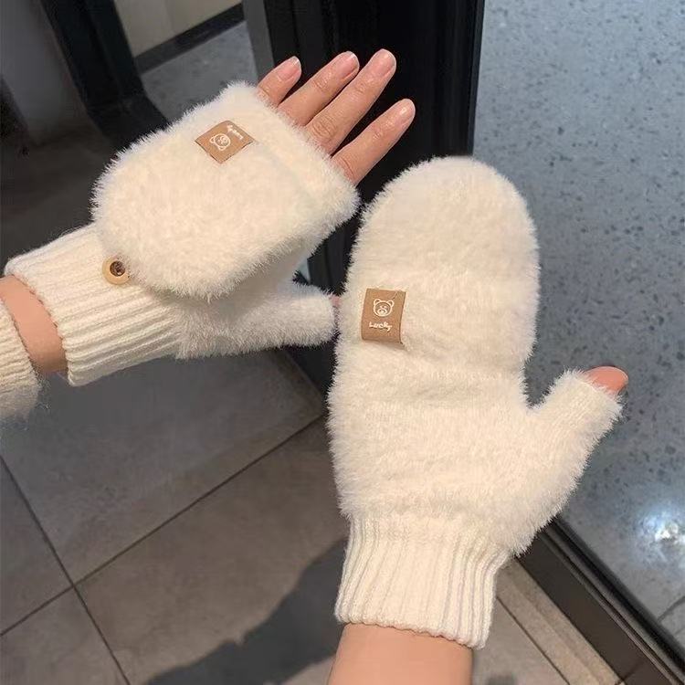 【翻盖两用!舒适又保暖】冬季加厚半指翻盖手套女可爱冬天骑行保暖针织学生可写字打字手套。rc