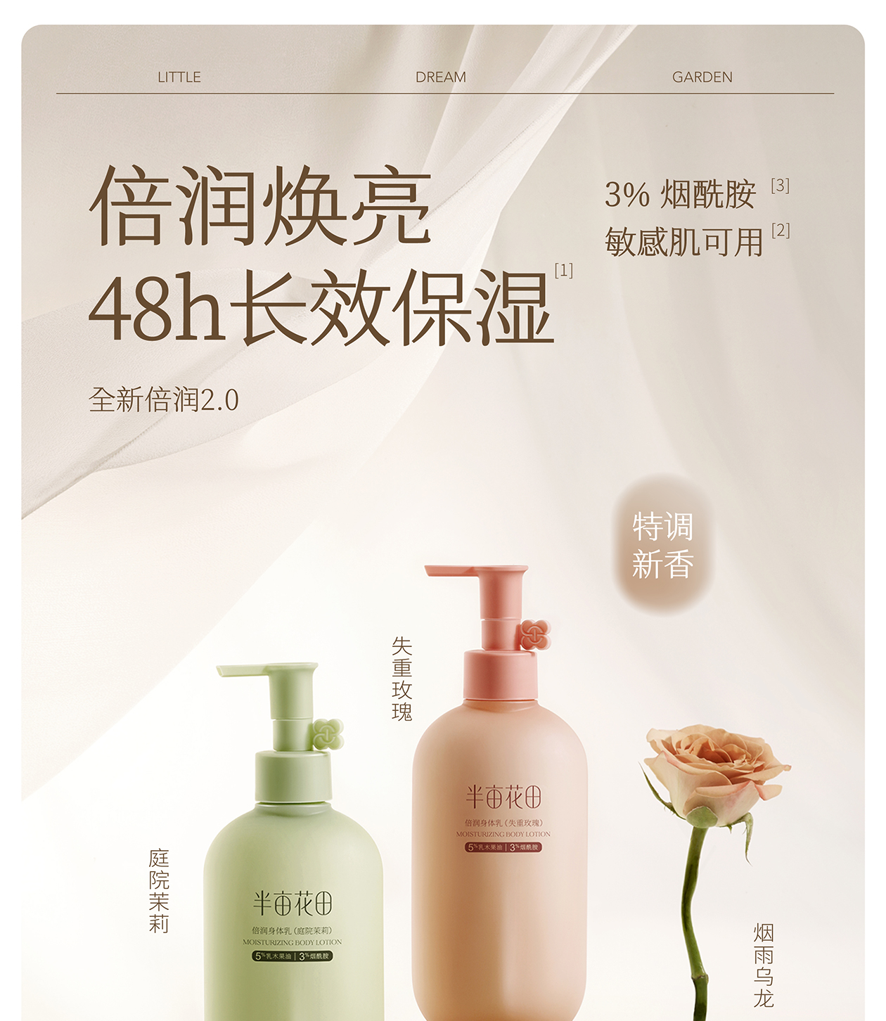 半亩花田倍润身体乳250ml(烟雨乌龙)/(失重玫瑰)250g