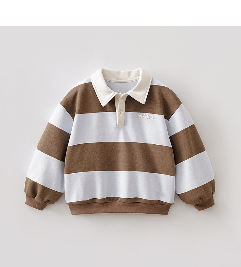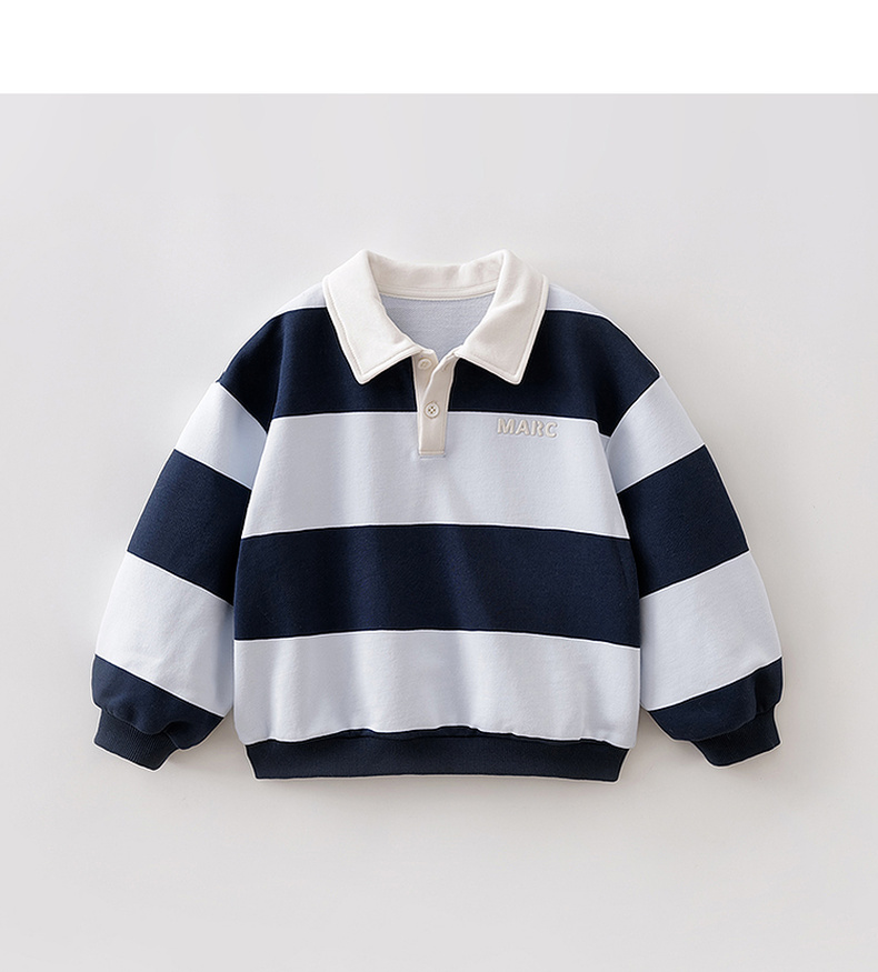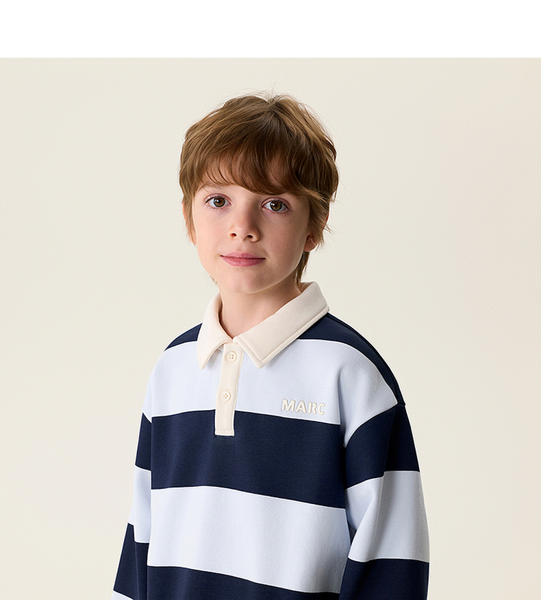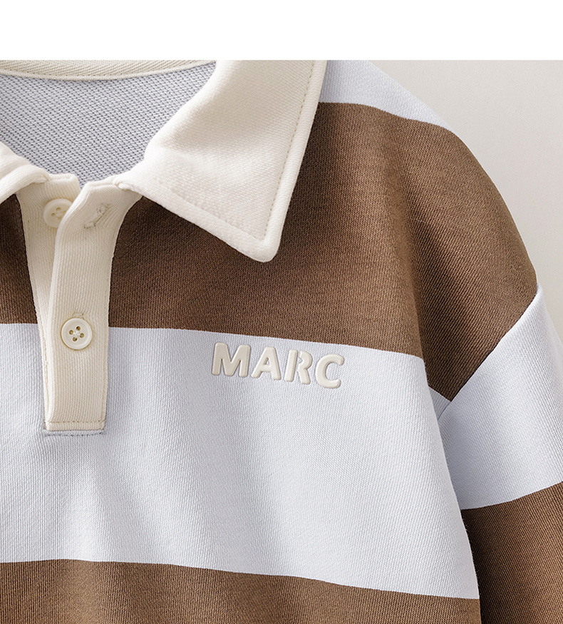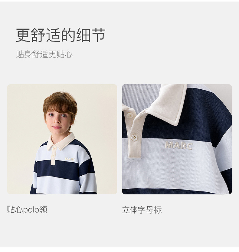 马克珍妮美式学院男童条纹polo卫衣2026年春装新款560133