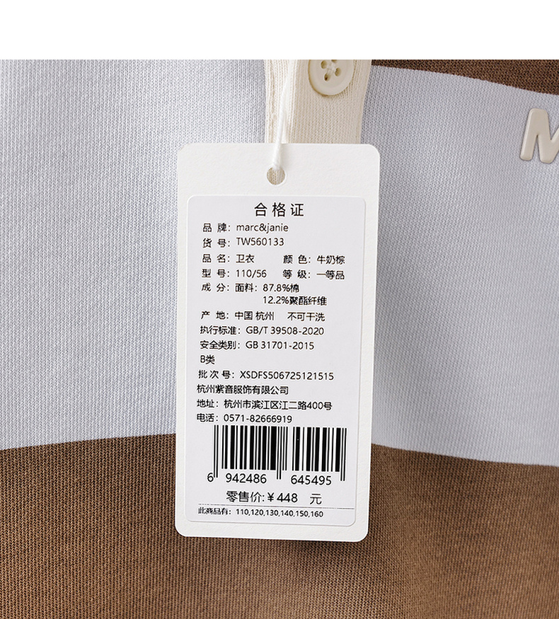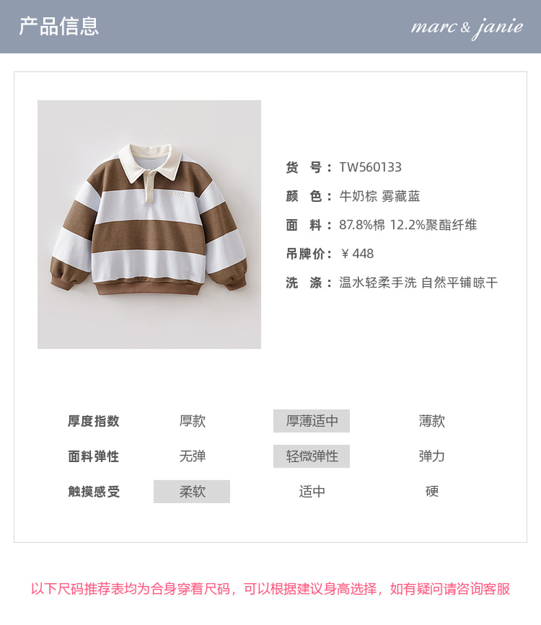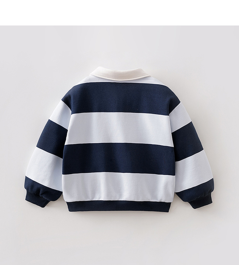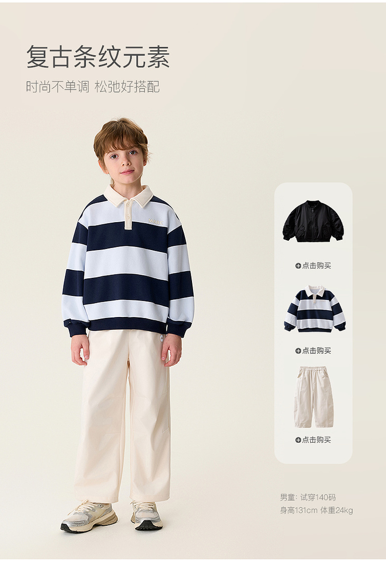 马克珍妮美式学院男童条纹polo卫衣2026年春装新款560133