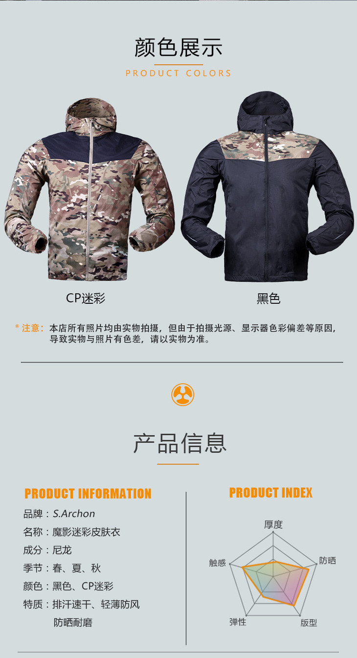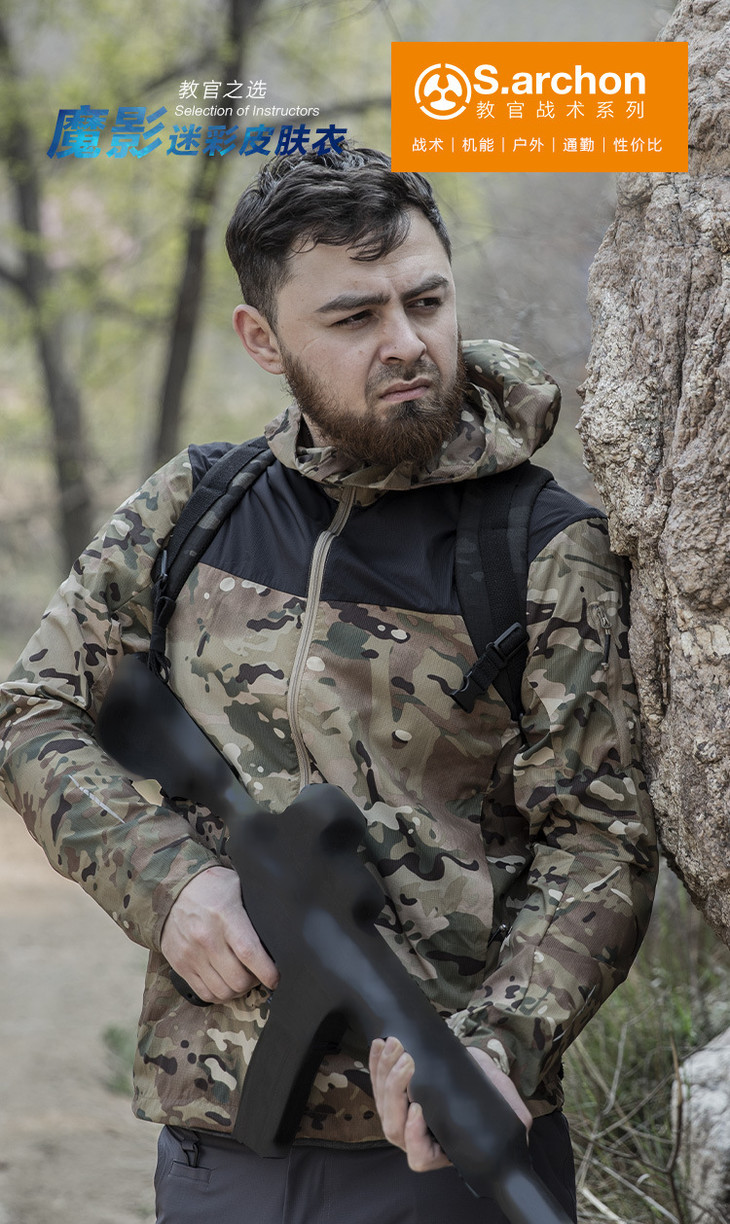 魔影户外防晒衣男迷彩超薄透气防泼水战术皮肤衣运动风衣 教官战术