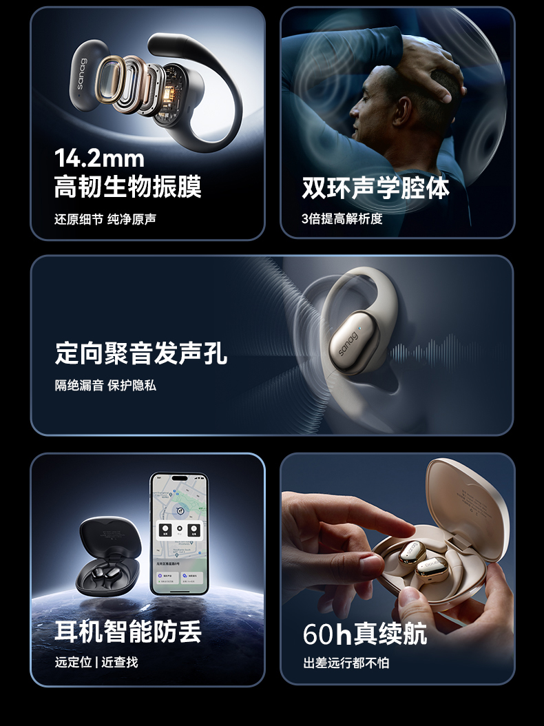 塞那蓝牙C16S顶配版耳机2024新款挂耳式气骨传导无线开放不入耳运动跑步专用