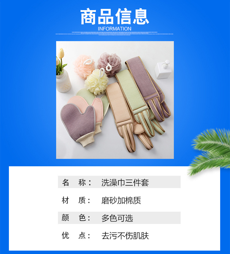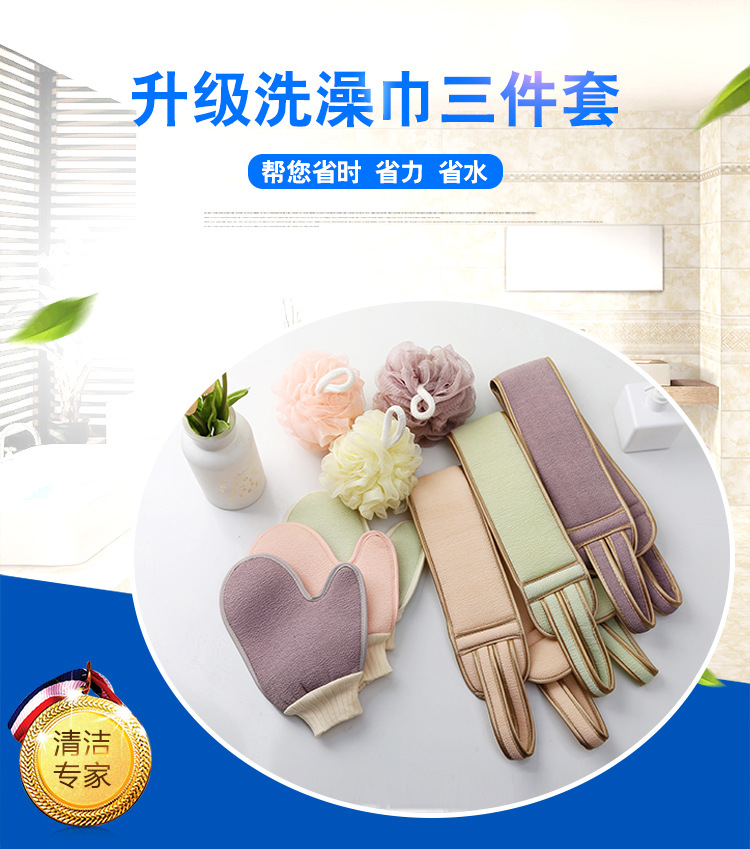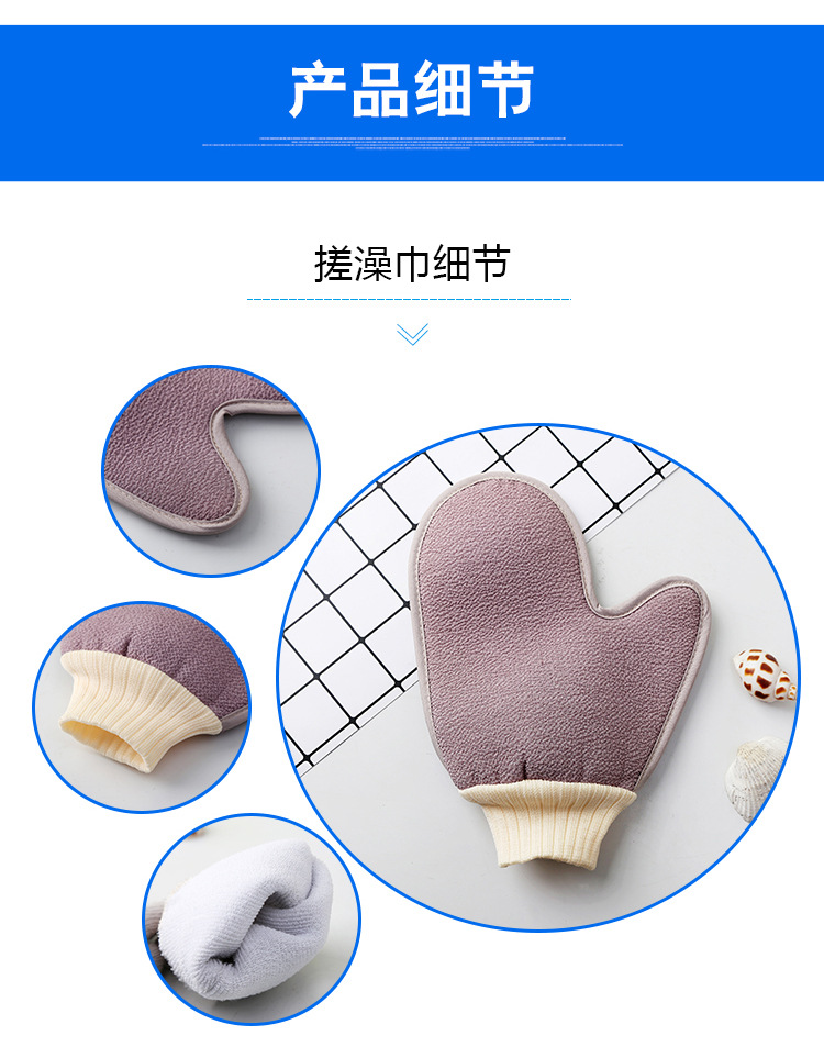 洗澡巾强力搓泥去污家用洗澡巾搓澡神器成人双面搓背手套搓背巾