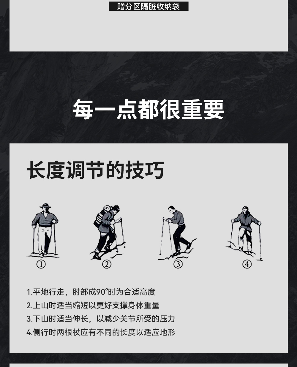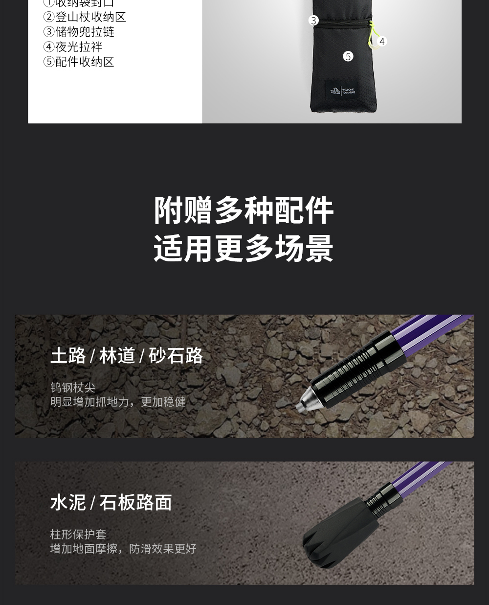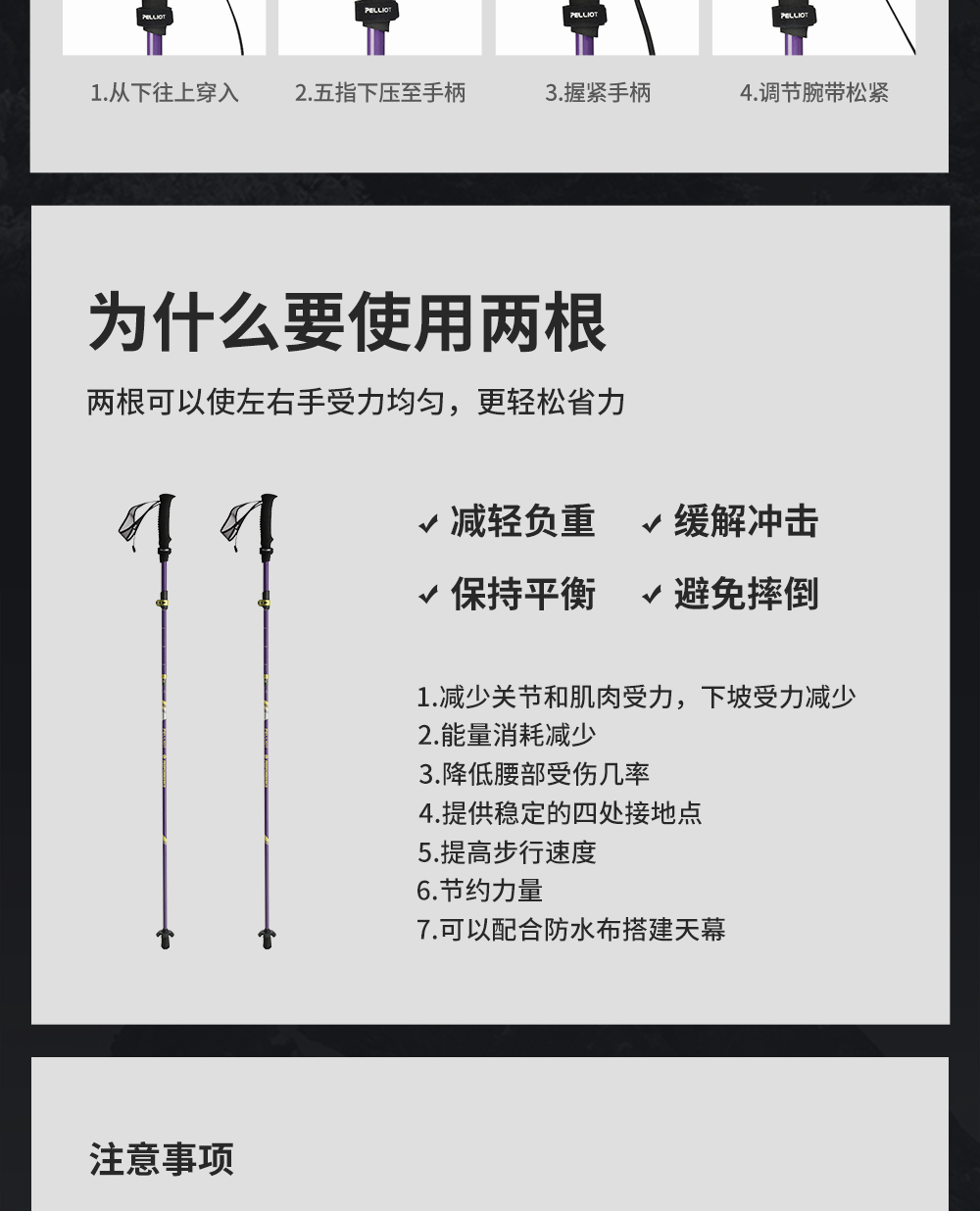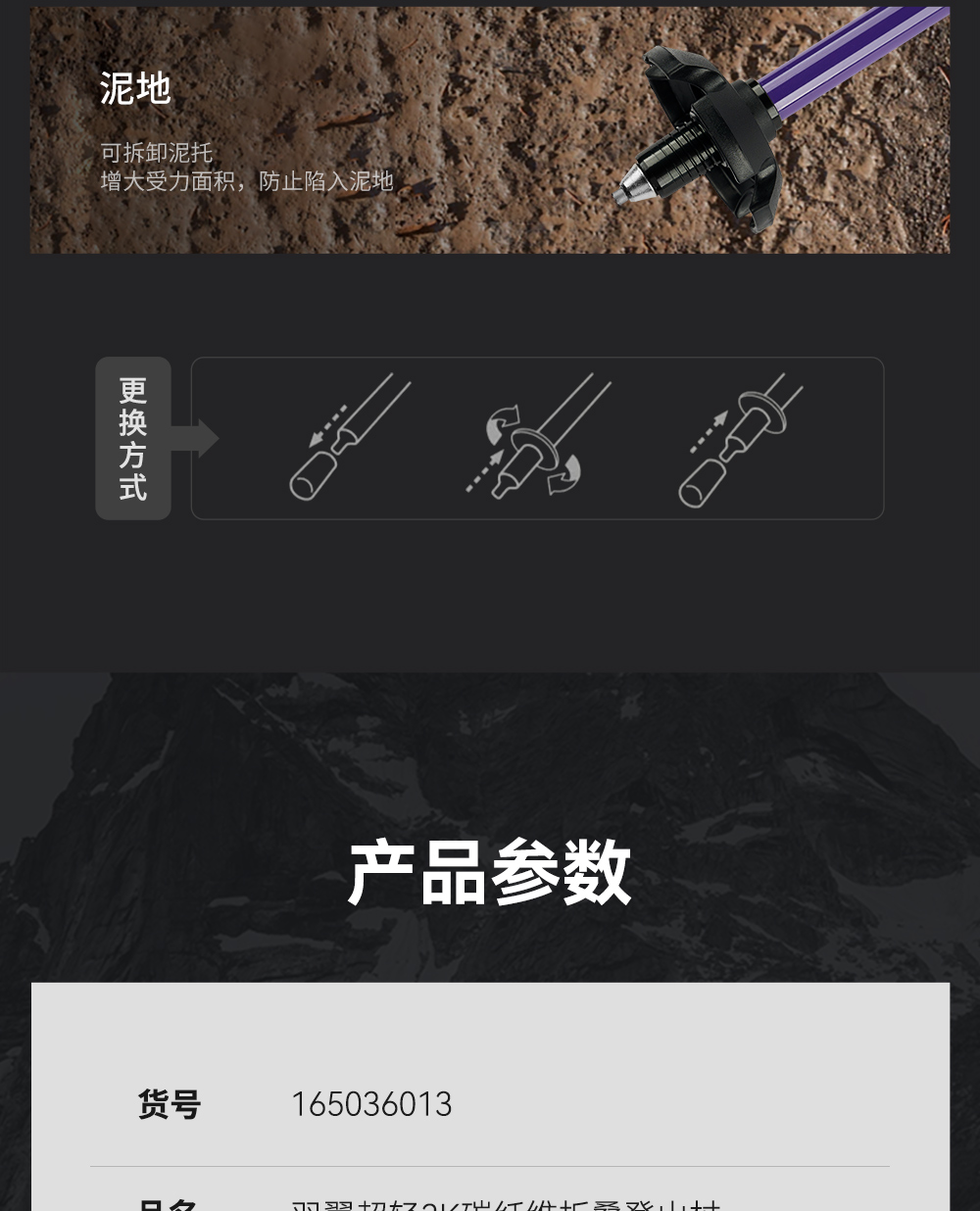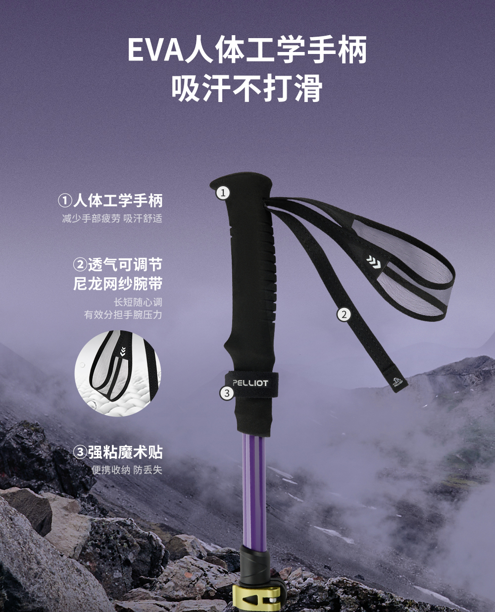 【羽翼】伯希和户外登山杖新款3K碳纤维折叠手杖轻便徒步爬山装备