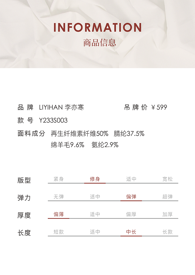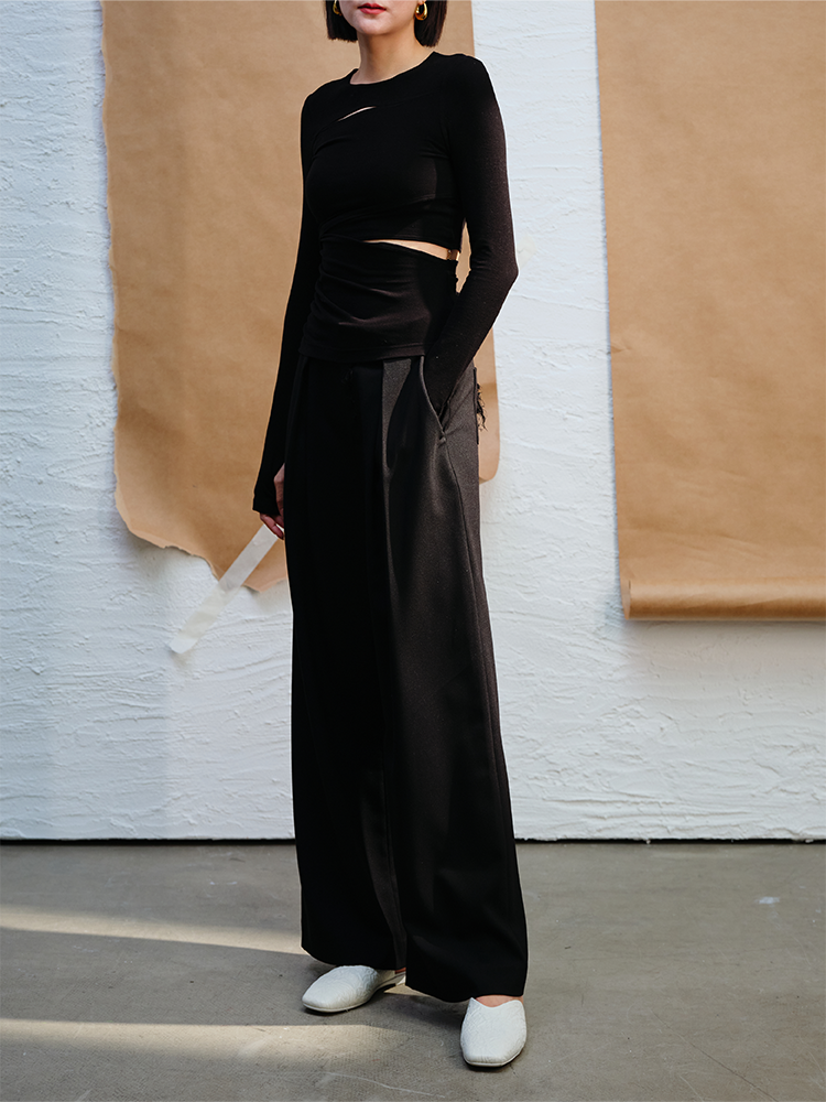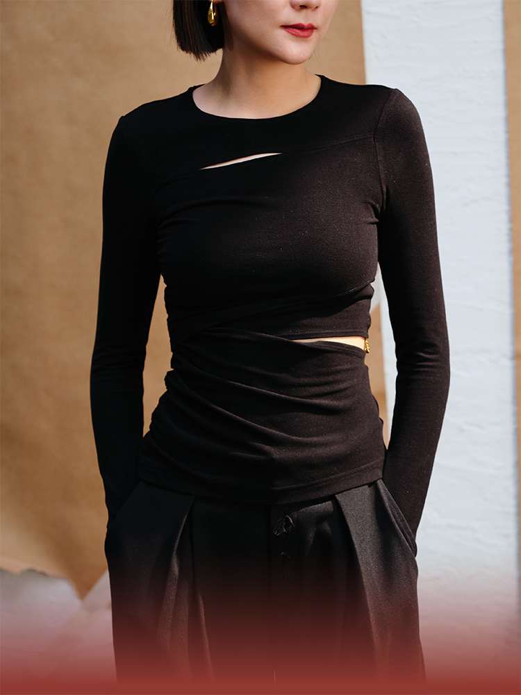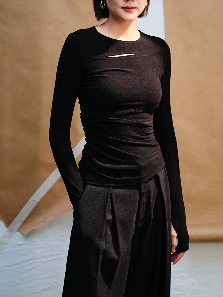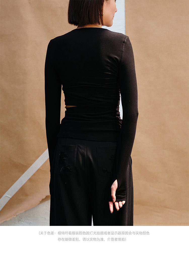 LIYIHAN 不规则褶皱打底衫 Y233S00390