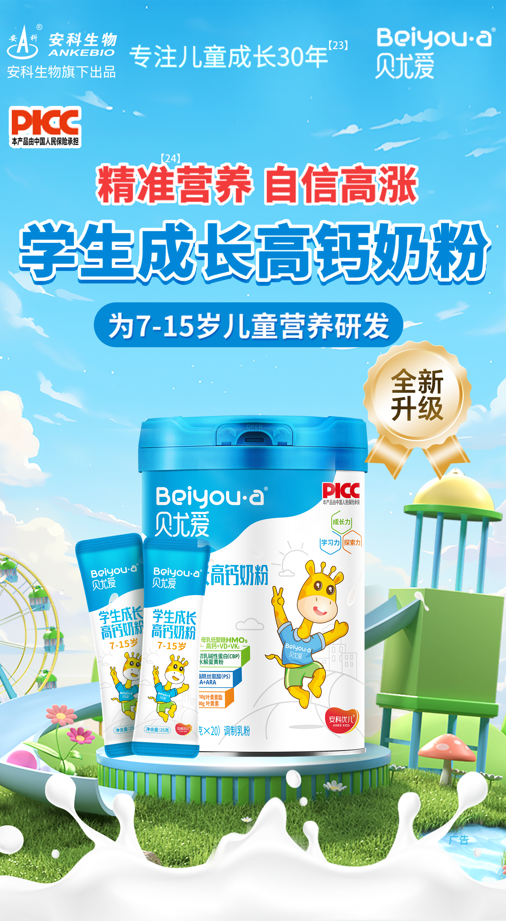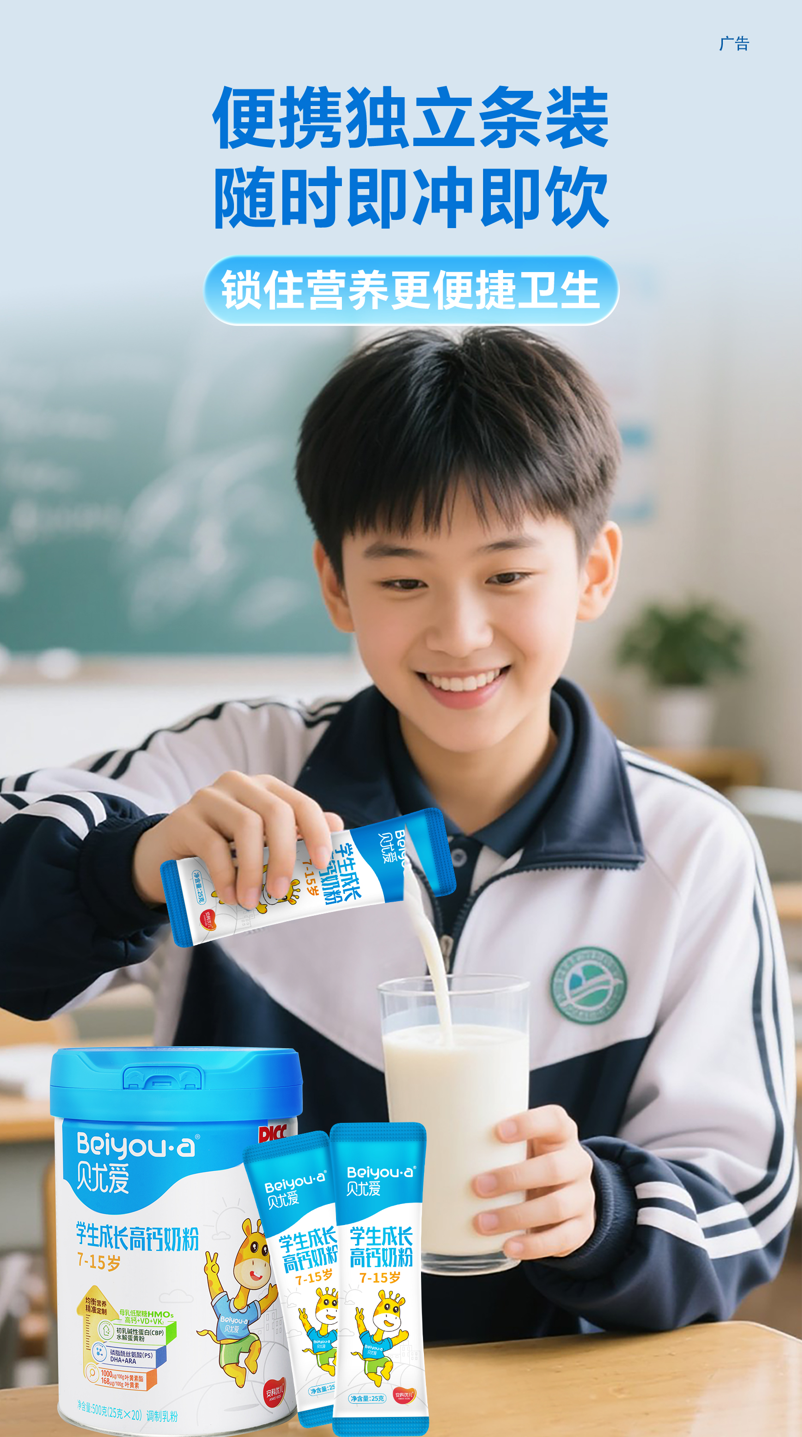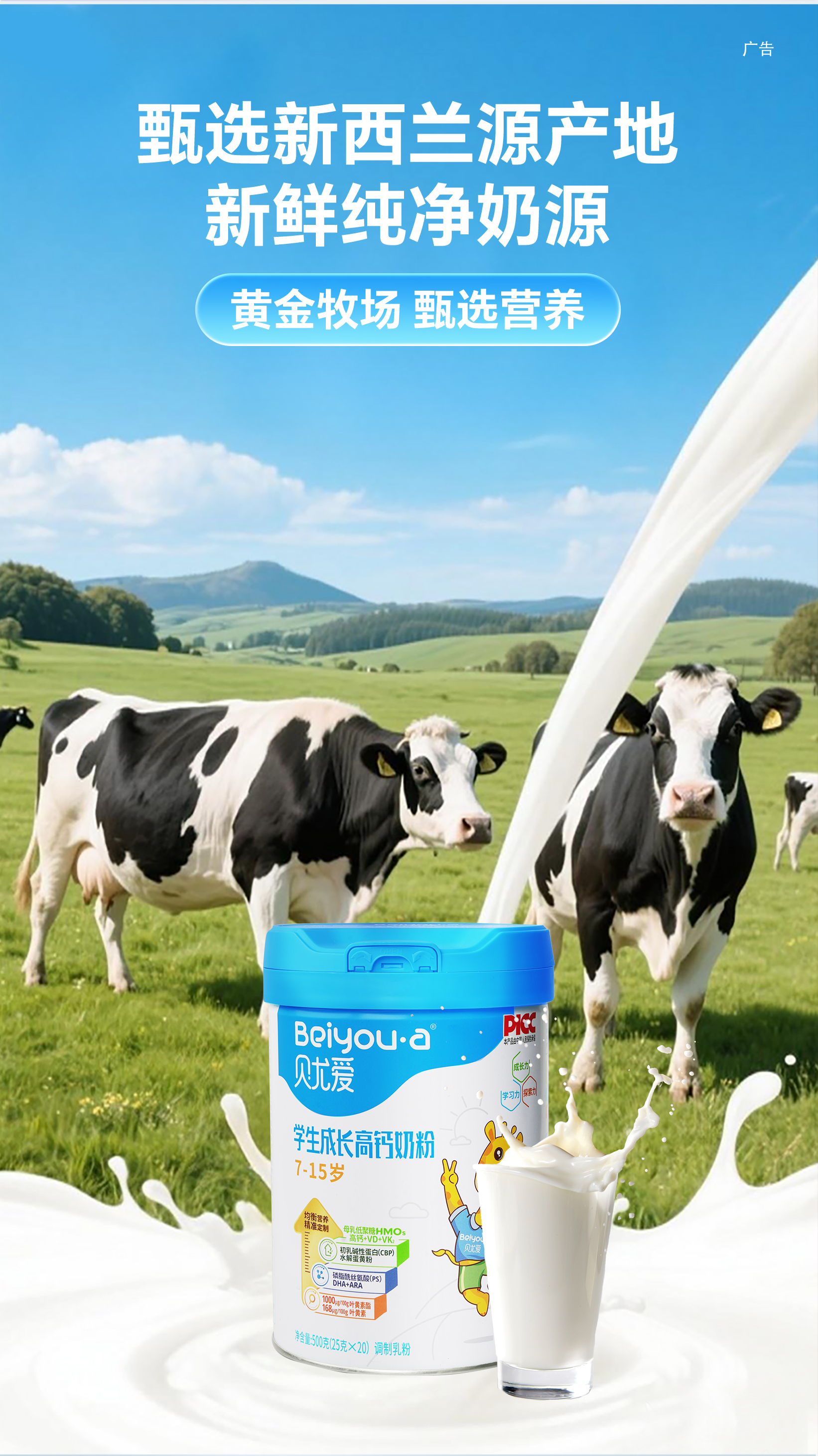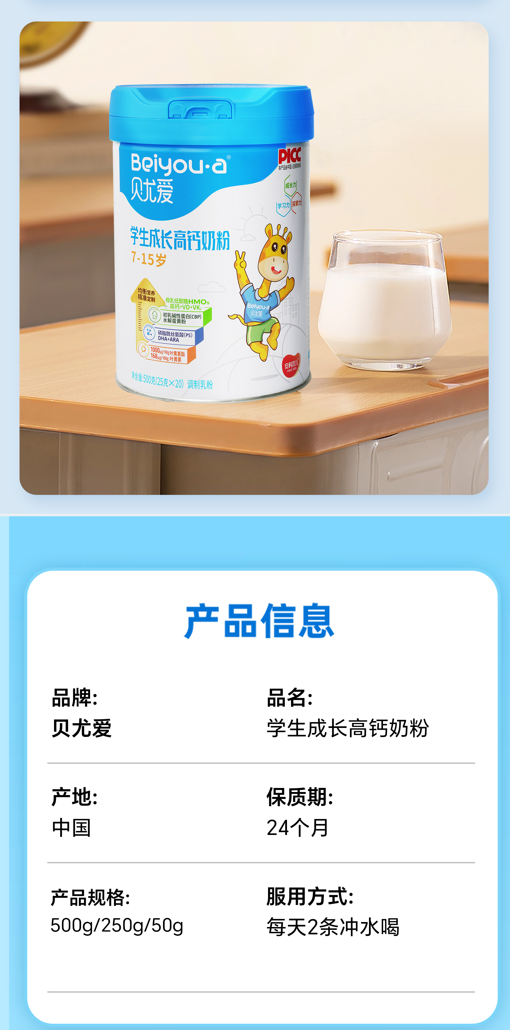 【买2赠1丨到手3罐】贝尤爱儿童成长奶粉7-15岁*2罐