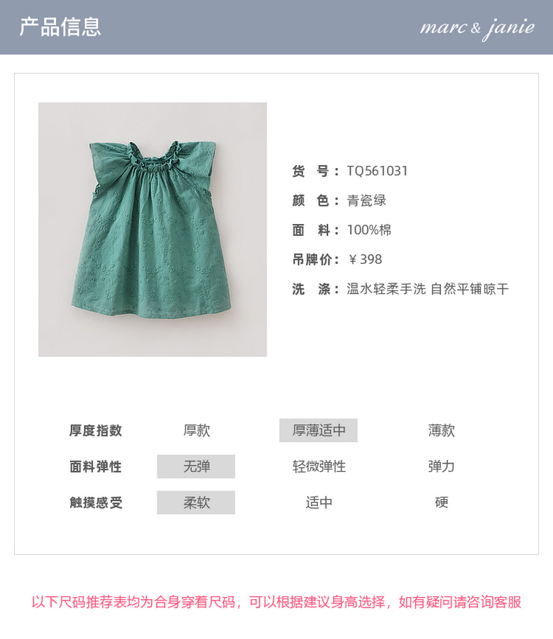 马克珍妮森野日记女童纯棉绣花连衣裙2026年夏装新款561031