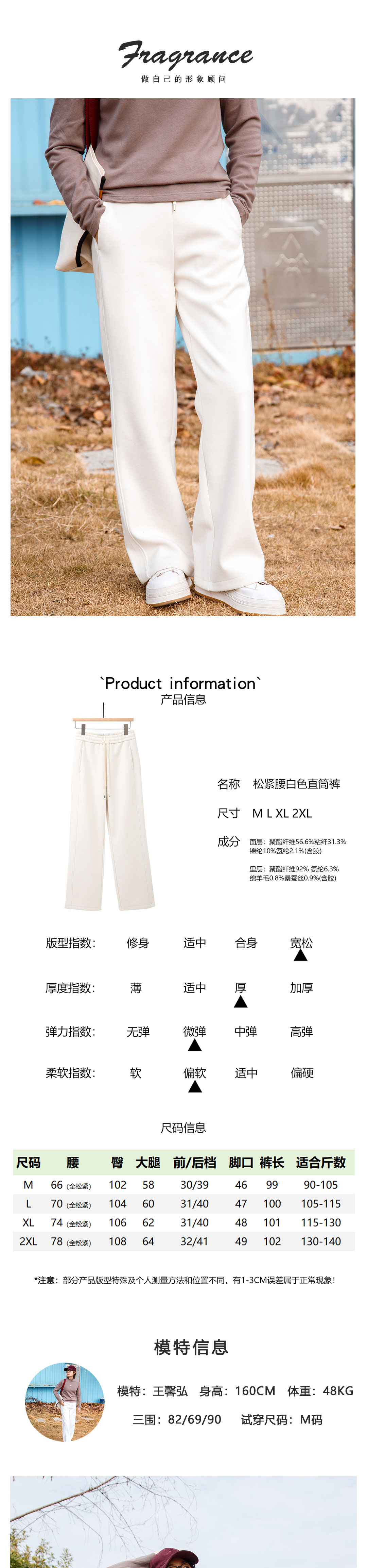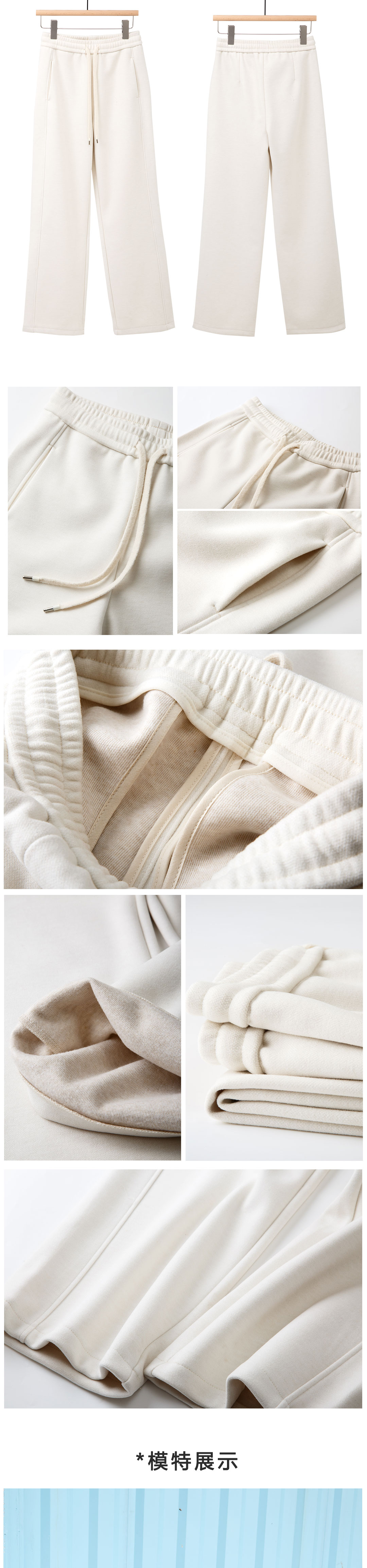 松紧腰白色直筒裤