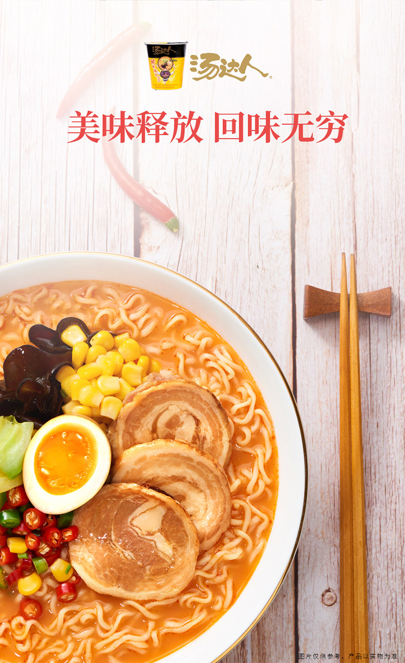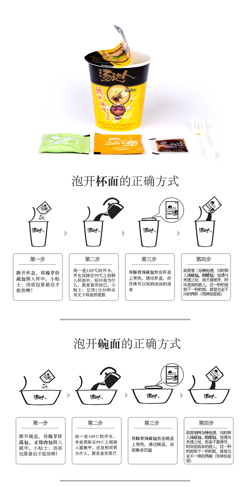 统一汤达人碗面酸辣豚骨味135g*12碗