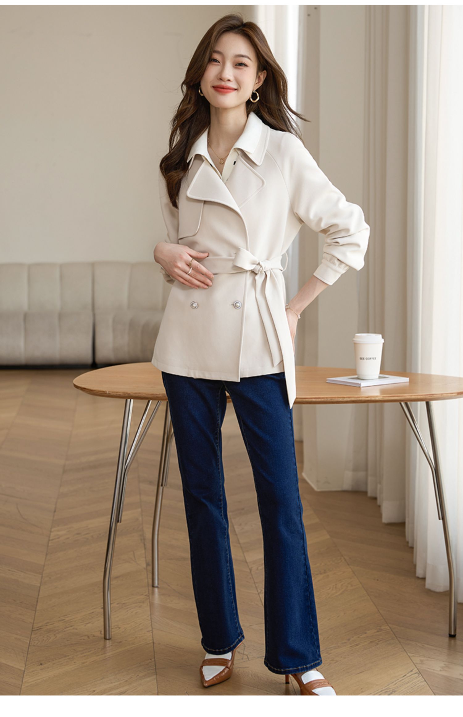 【五折购】熙世界风衣外套女高级感2025年春秋季双排扣小个子大衣