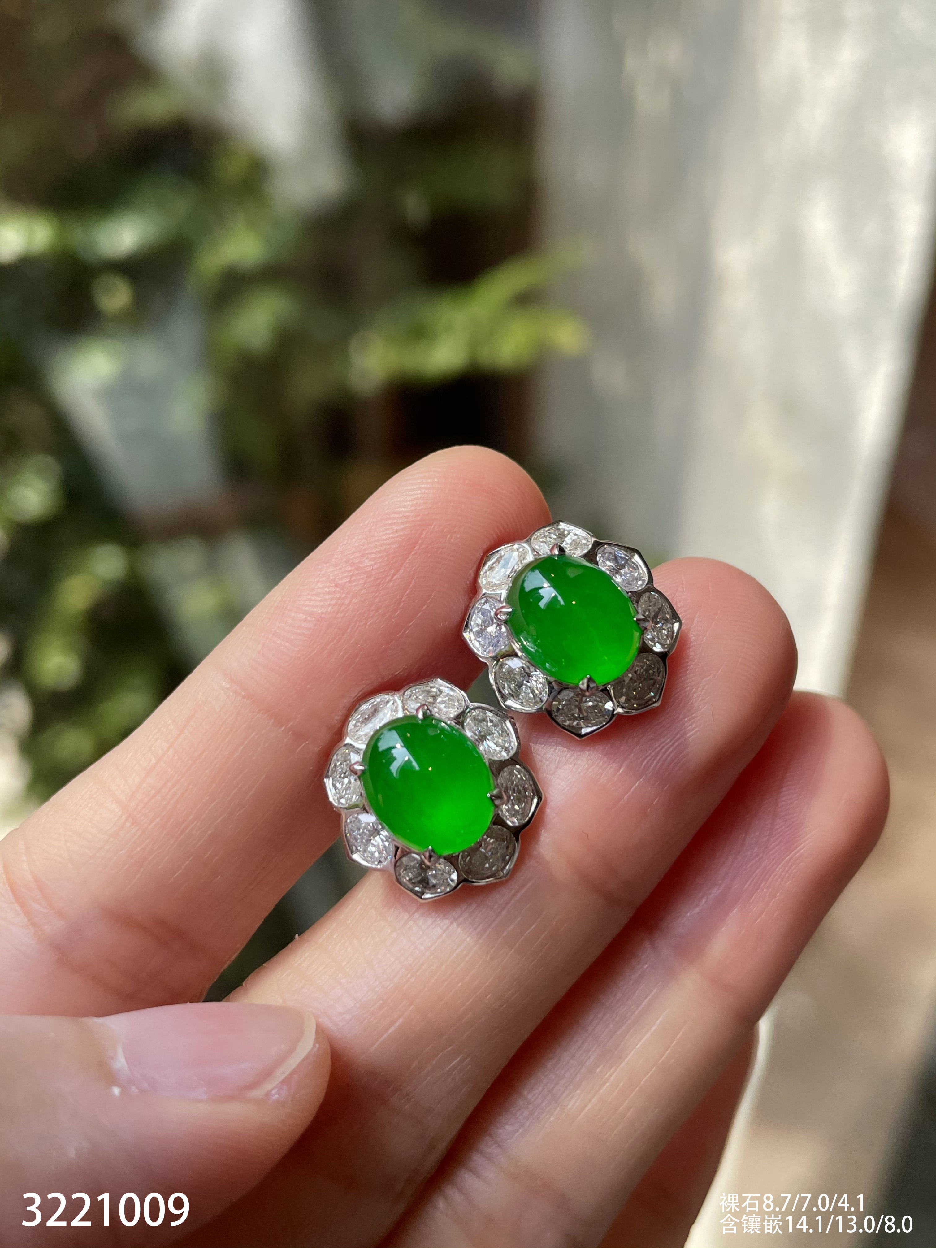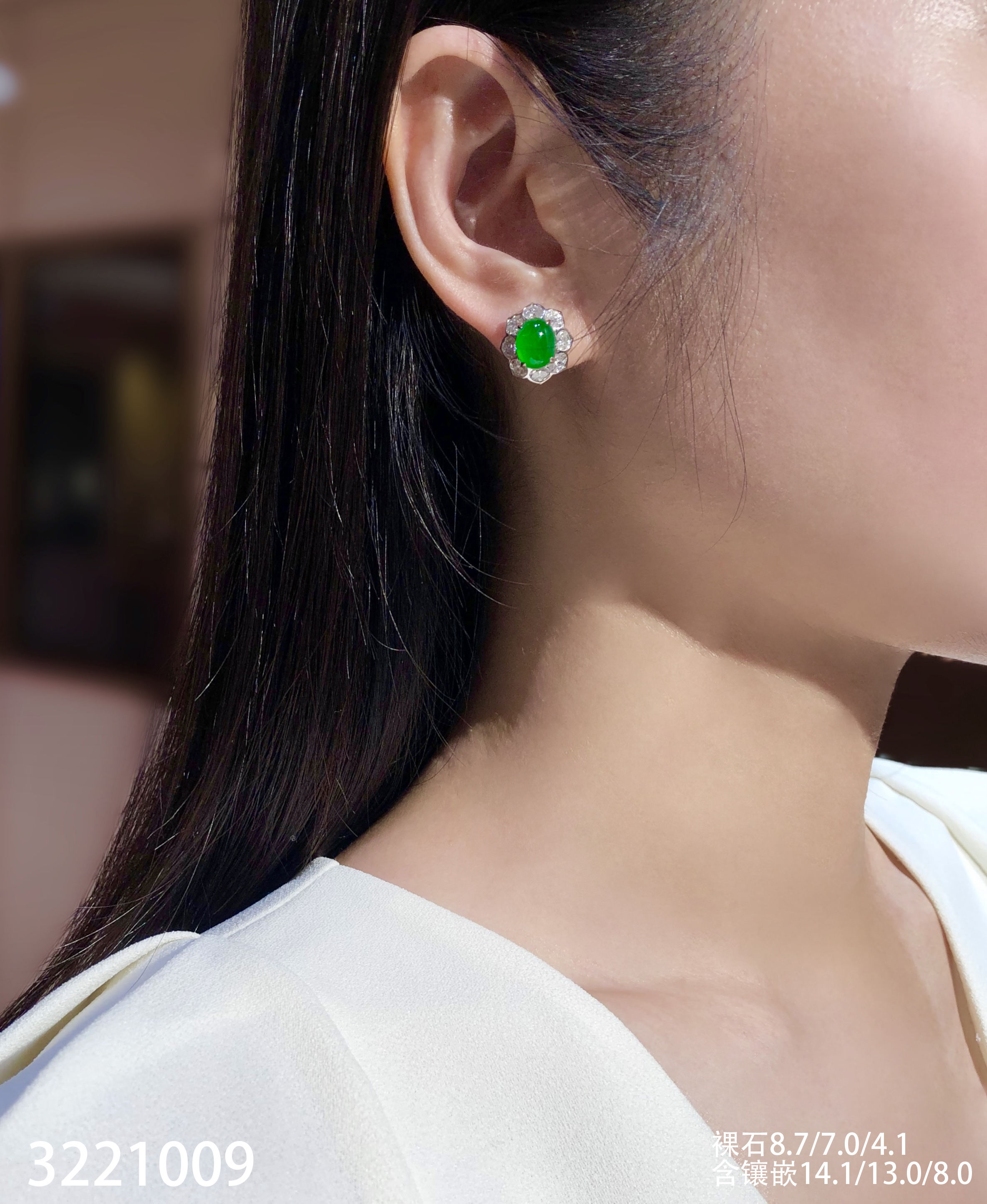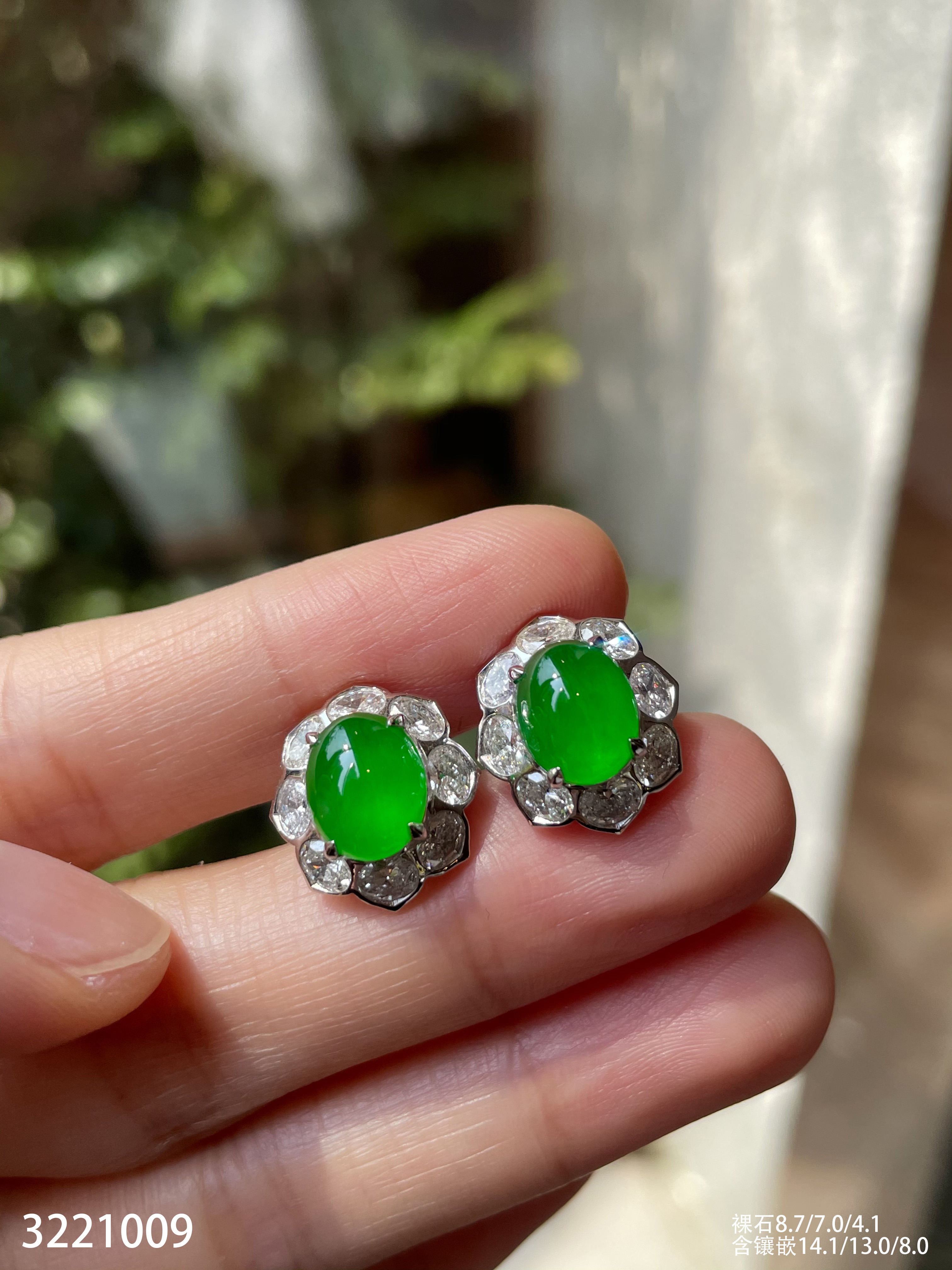高冰艳绿蛋面耳钉【3221009】具体价格微信咨询
