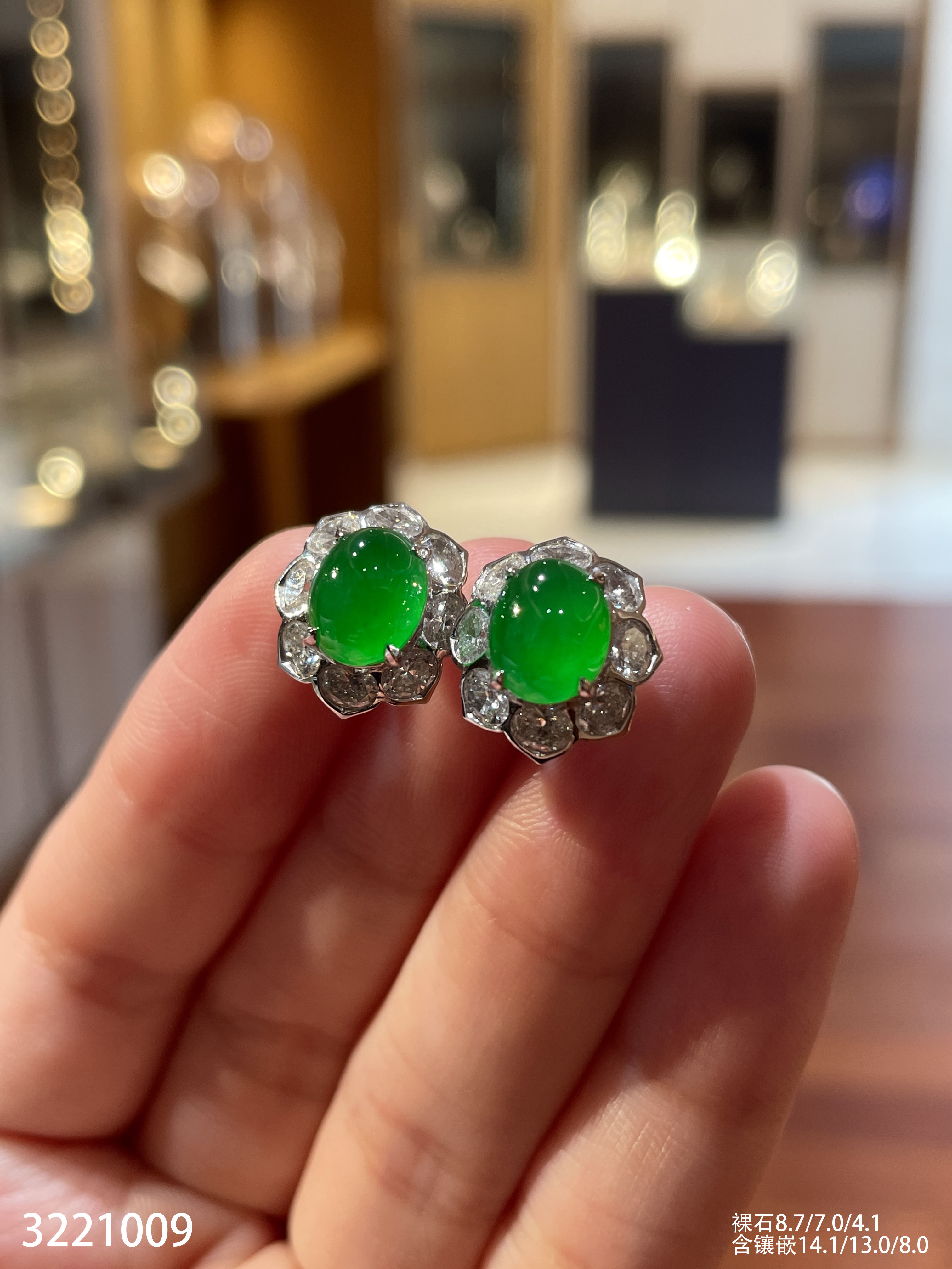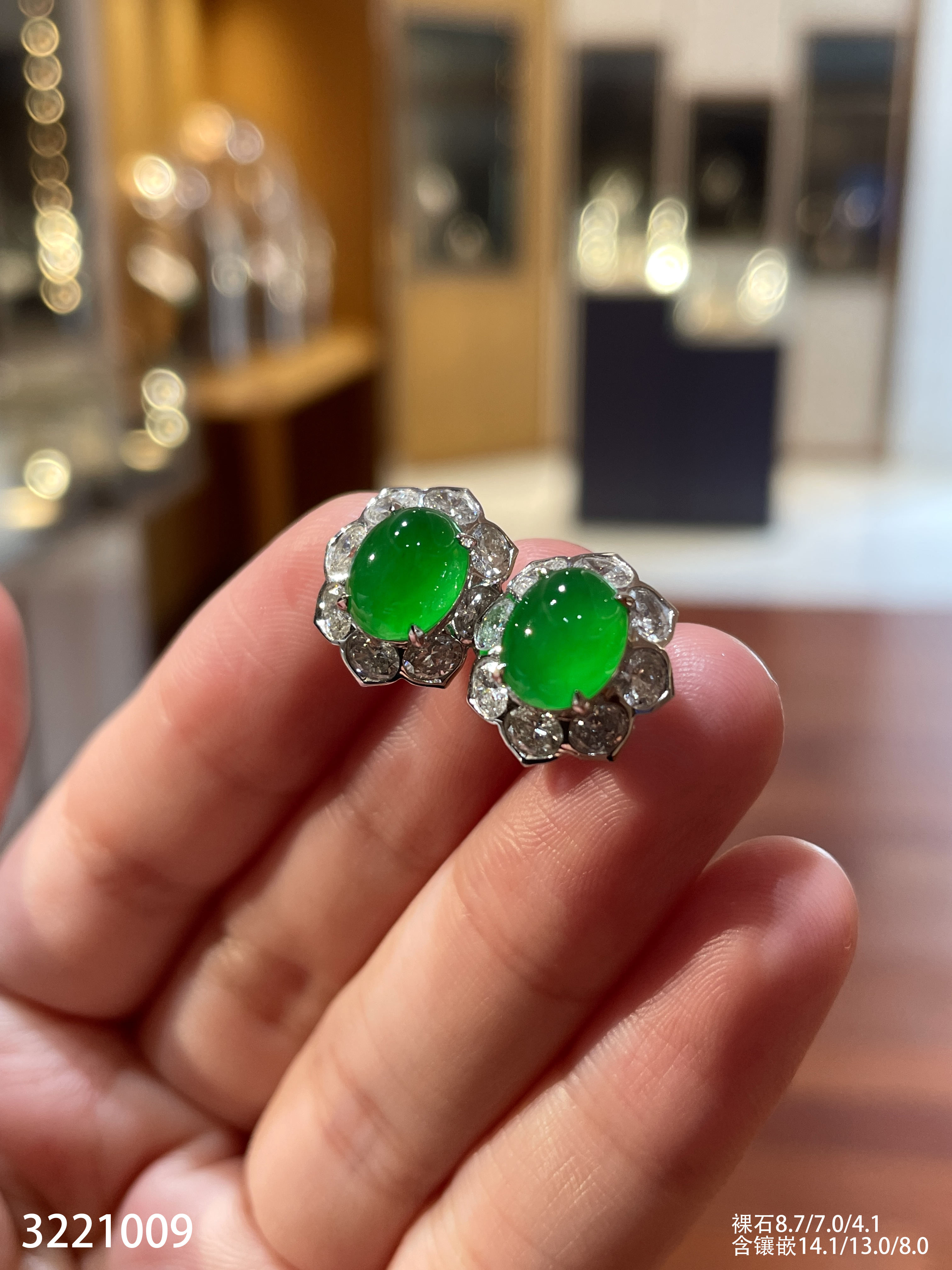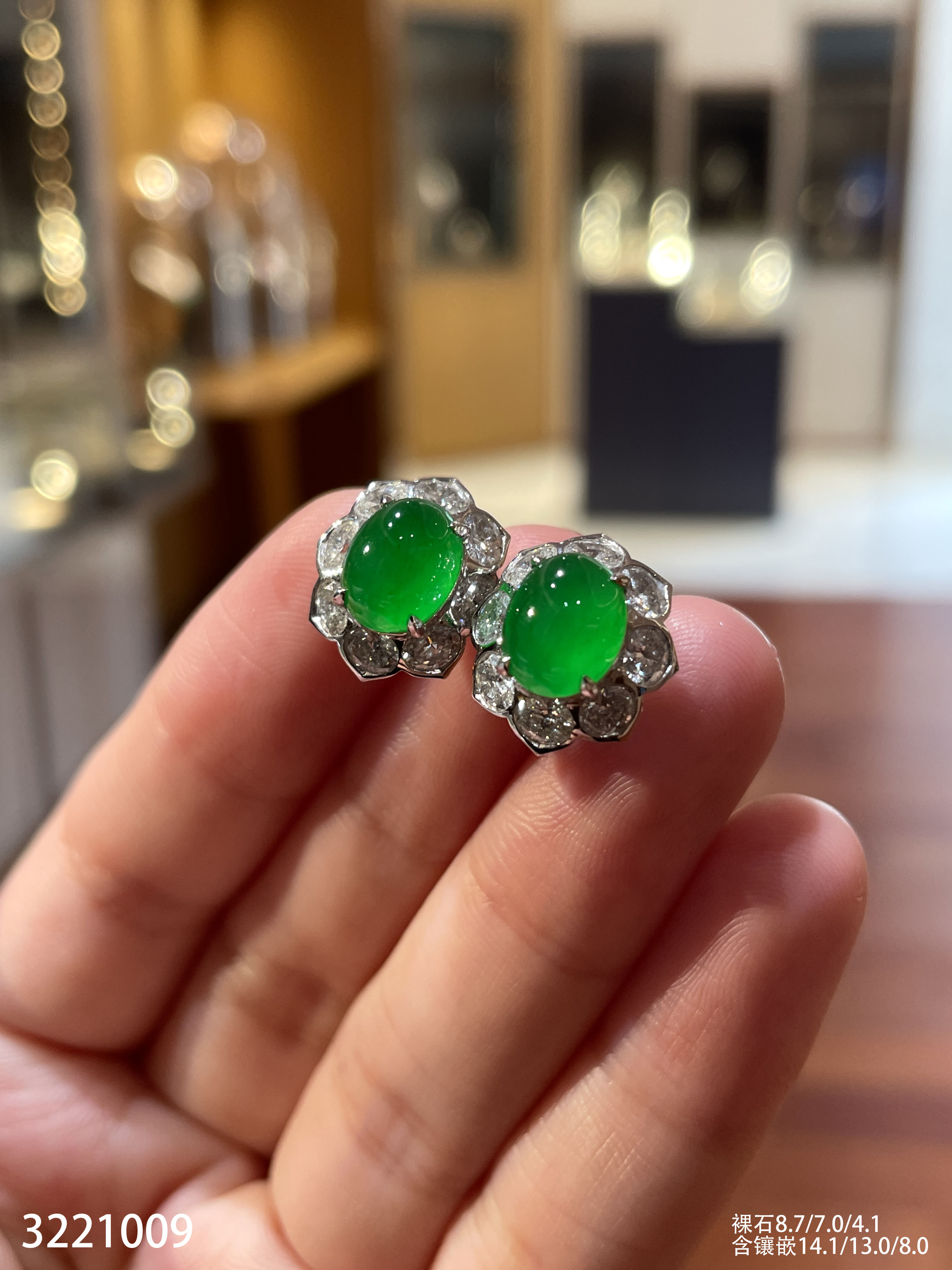 高冰艳绿蛋面耳钉【3221009】具体价格微信咨询