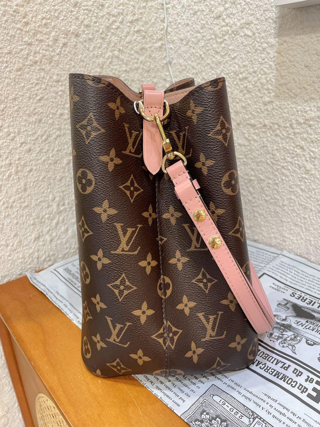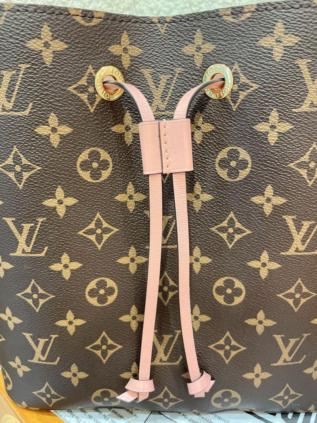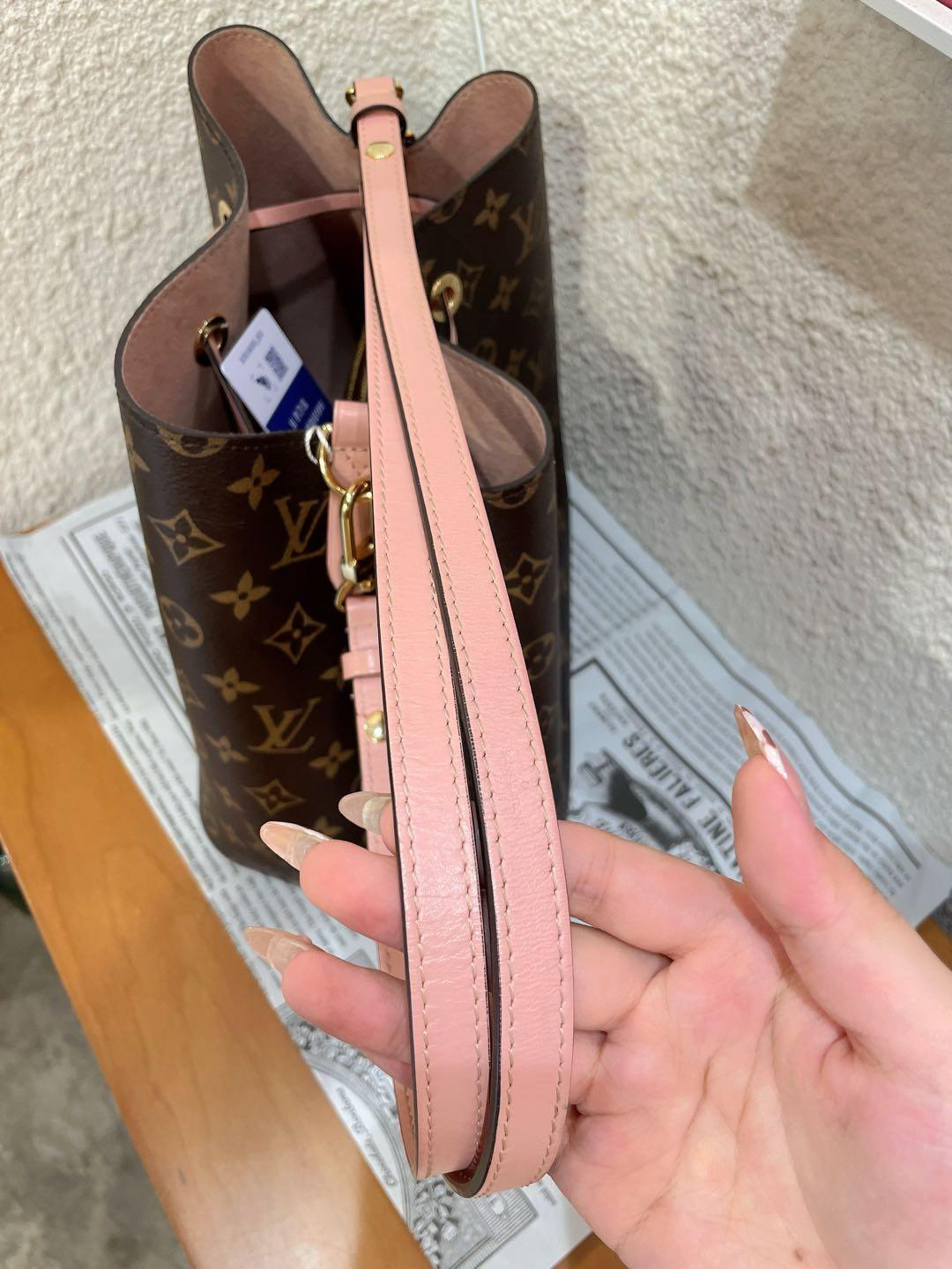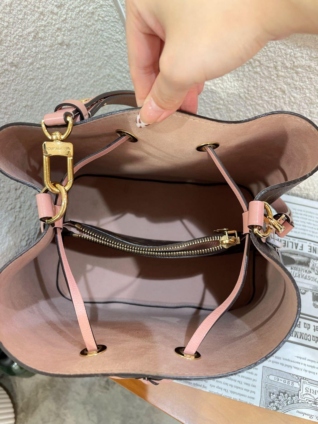 正品二手 Lv neo 粉色 老花 水桶包🎊97新 25×25 芯片款 配件:肩带。非常经典实用