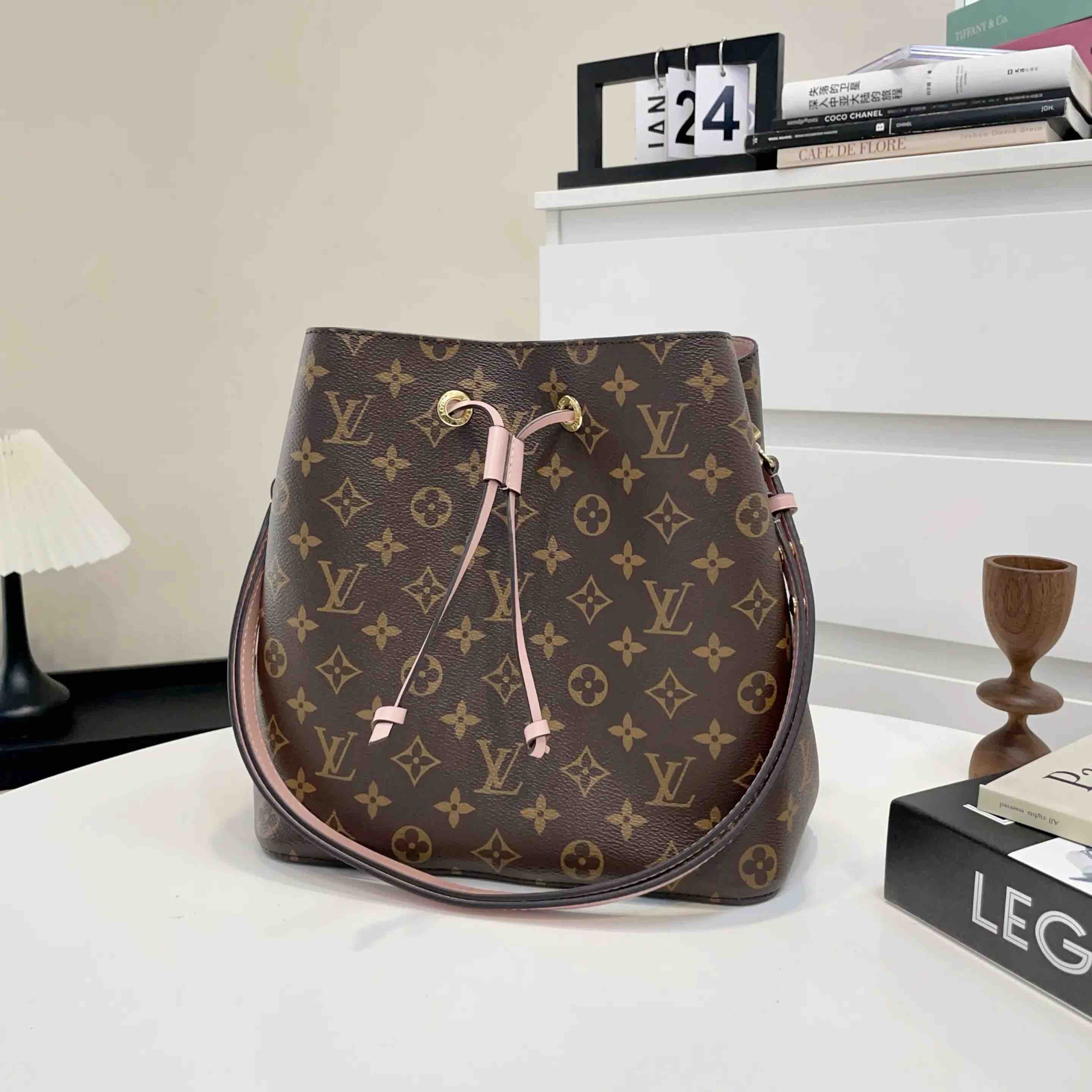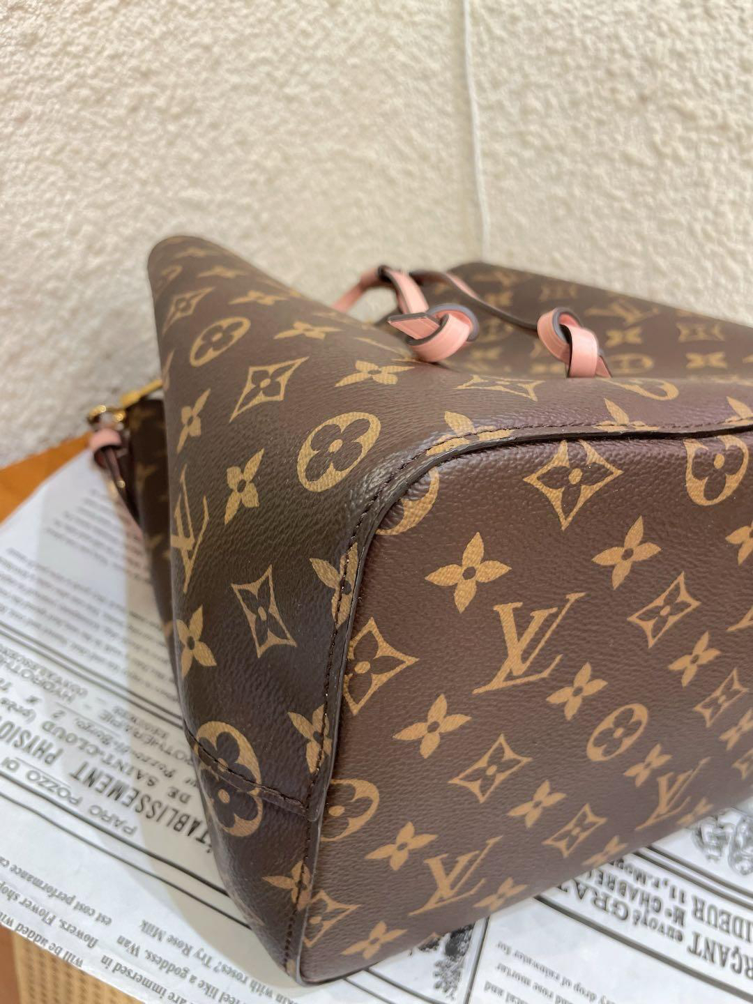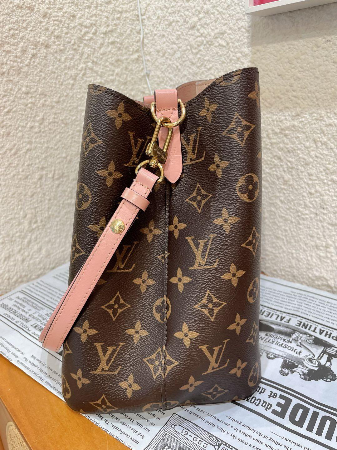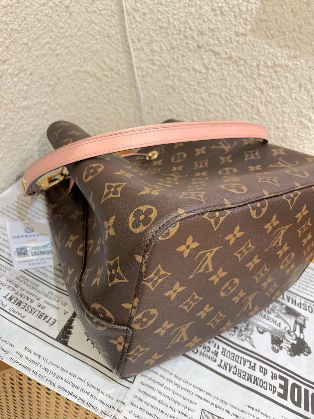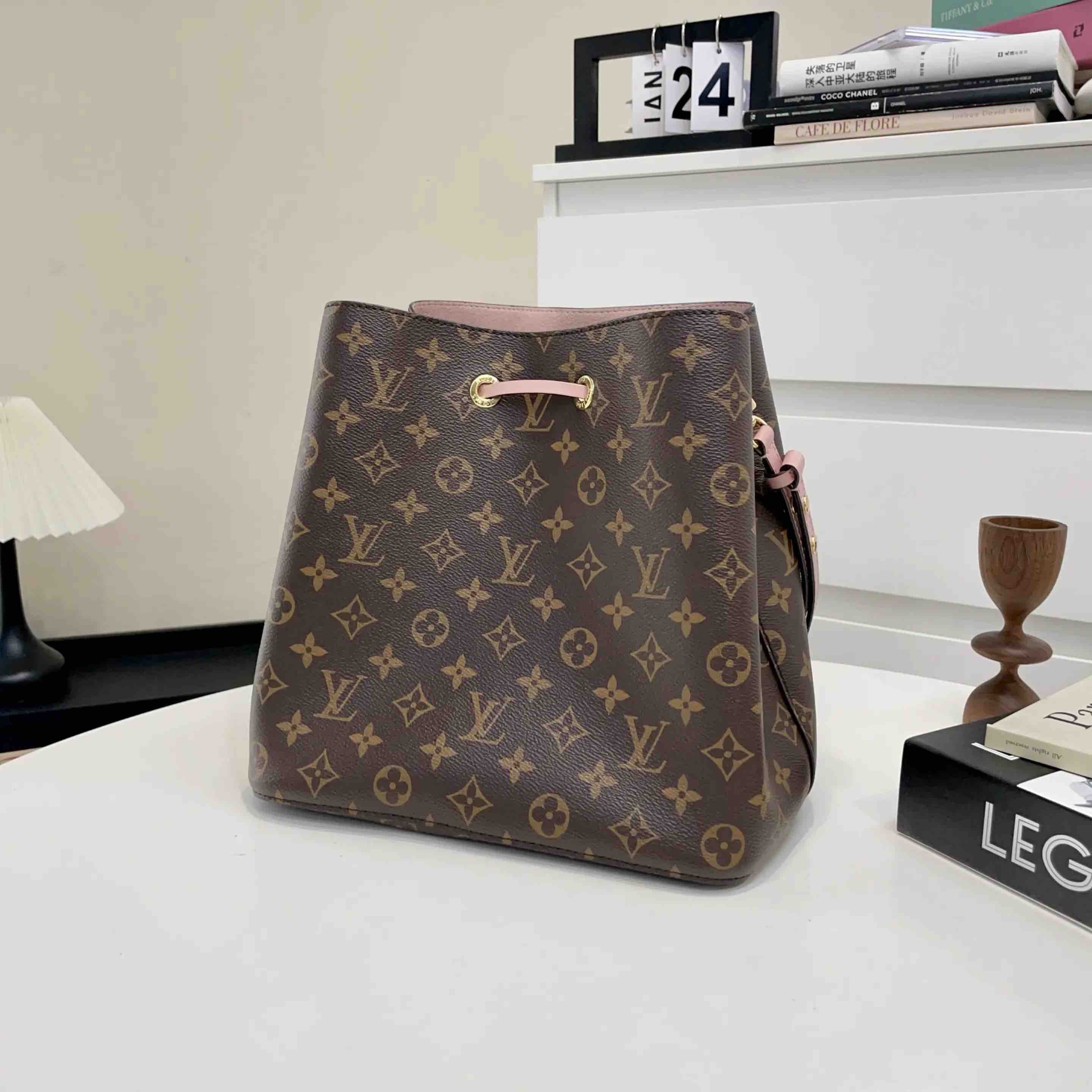 正品二手 Lv neo 粉色 老花 水桶包🎊97新 25×25 芯片款 配件:肩带。非常经典实用