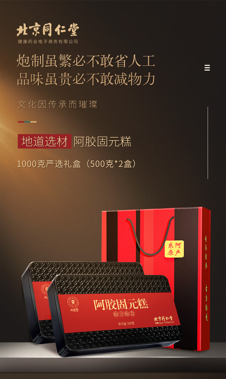 北京同仁堂健康 青源堂阿胶固元糕1kg礼盒装 阿胶膏固元膏即食阿胶糕阿胶片块女人滋补礼品