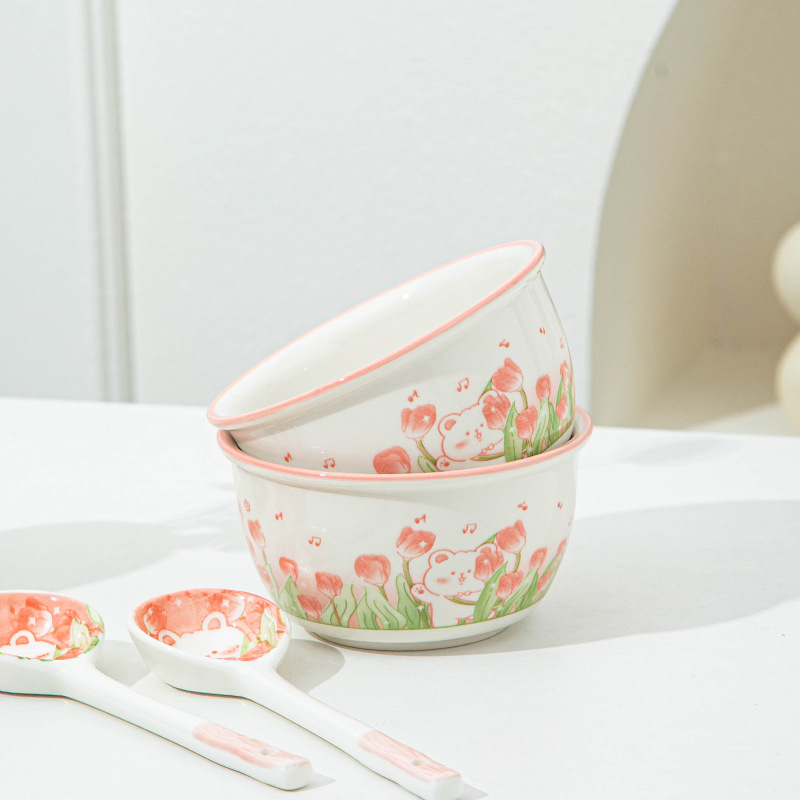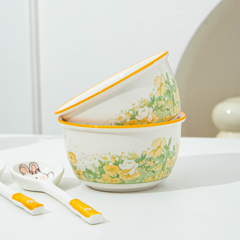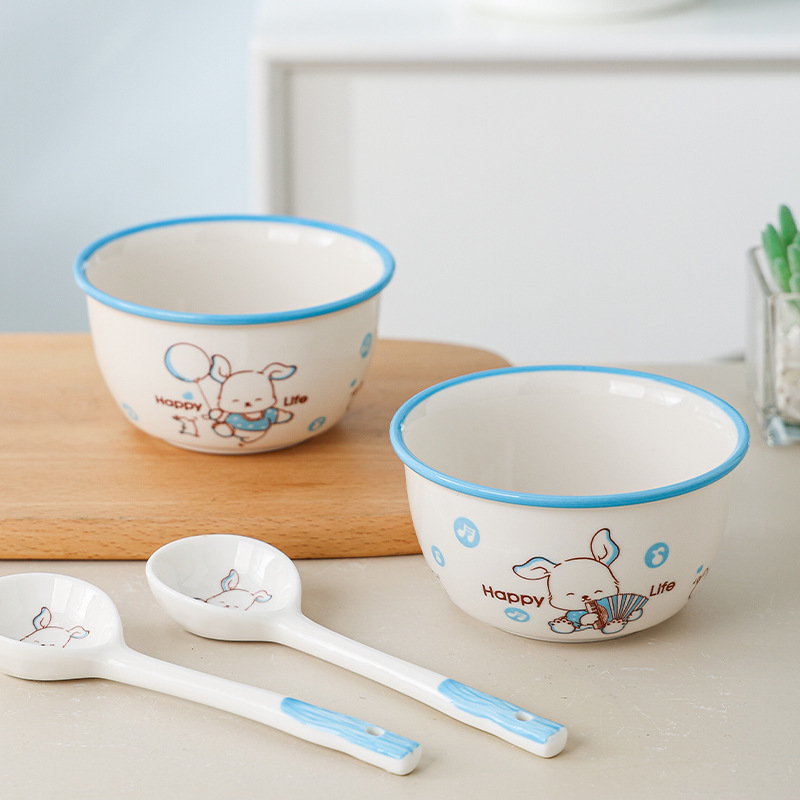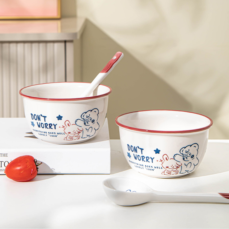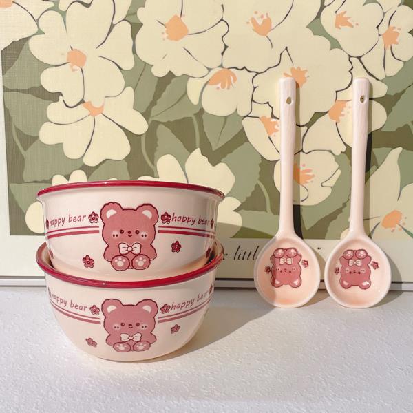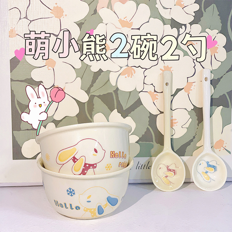 「两碗两勺!数款可选」可爱饭碗加厚网红高颜值陶瓷碗米饭碗套装组合餐饮用具