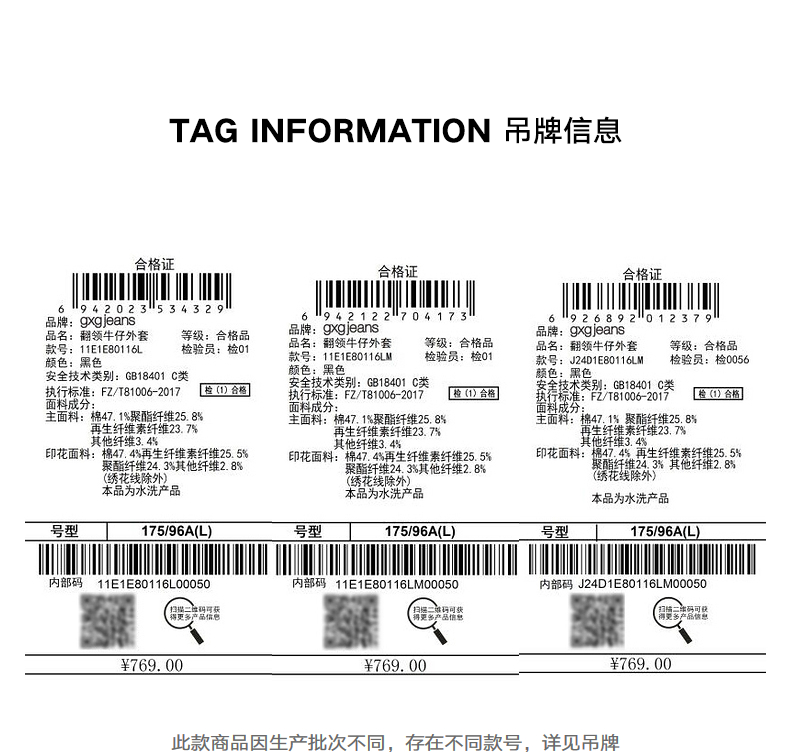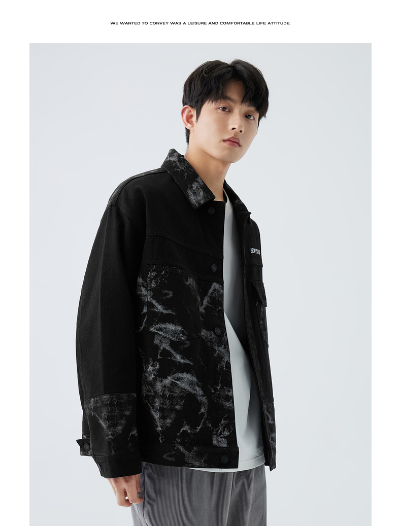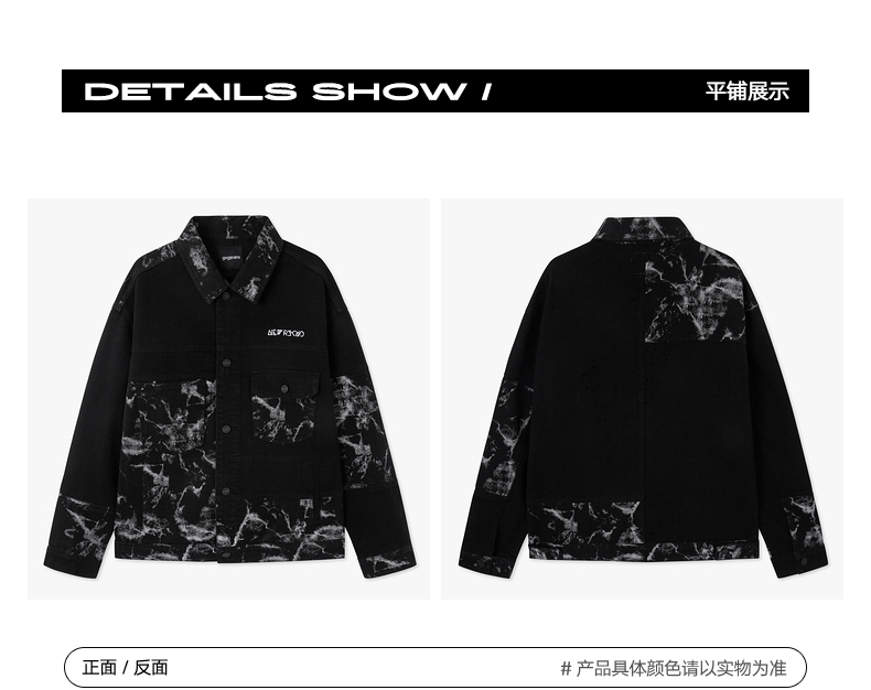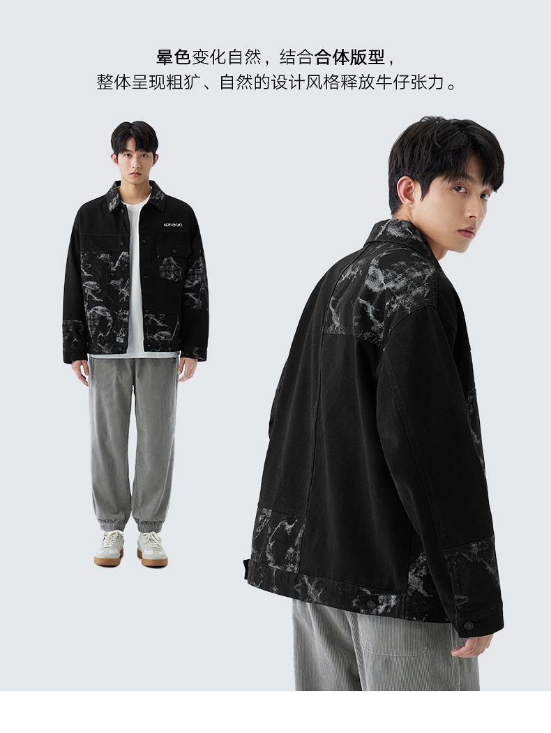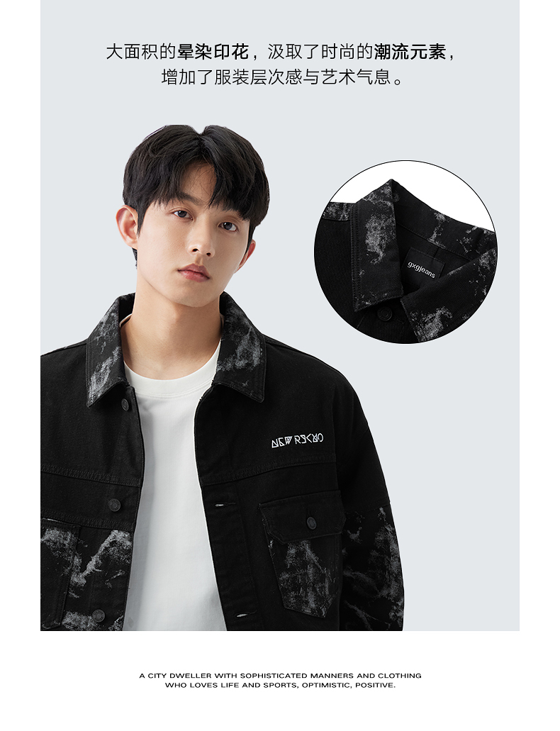 gxgjeans男装春季夹克 晕染印花水洗黑色牛仔夹克外套男